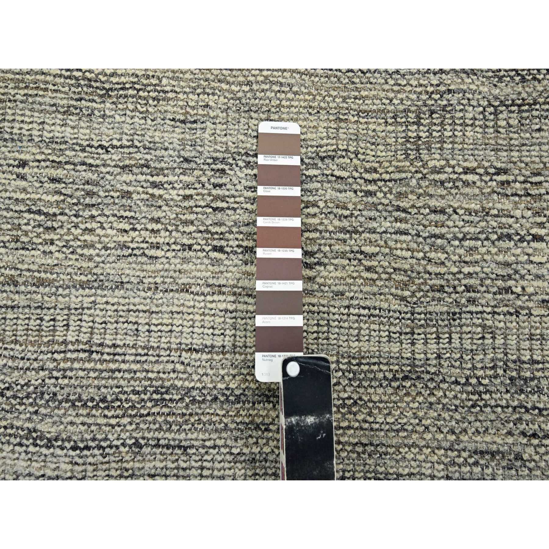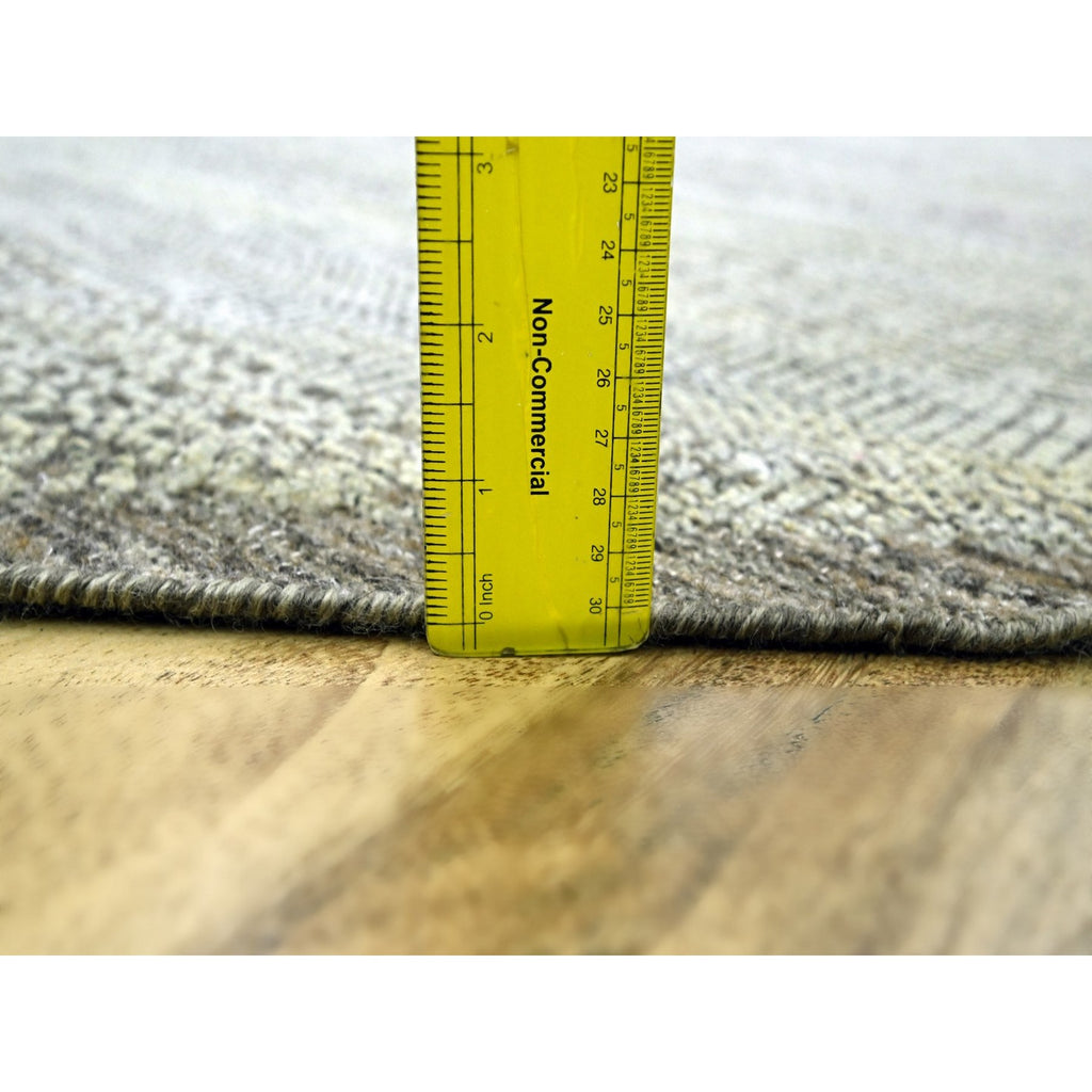 12'x12' Coffee Brown, Hand Knotted, Oxidized And Distressed Grass Design With Exposed Warps, Natural Wool, Round, Oriental Rug FWR460326