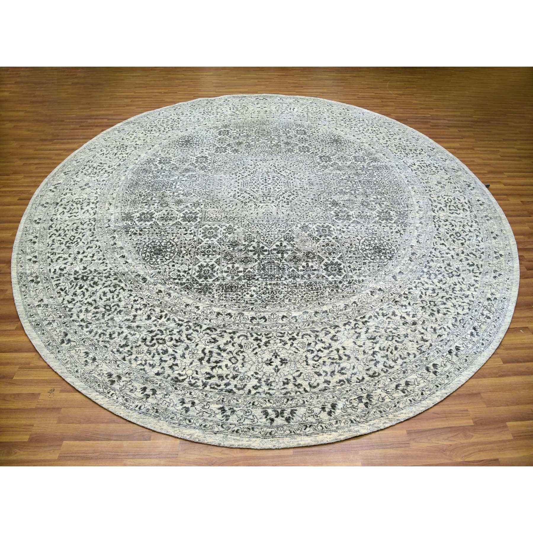 12'x12' Decorators White, Tone On Tone, Hand Knotted Undyed Extra Soft Wool, Round Mamluk Dynasty Design, Oriental Rug FWR479910