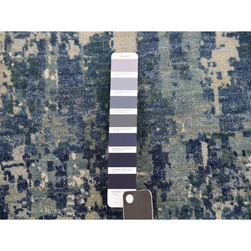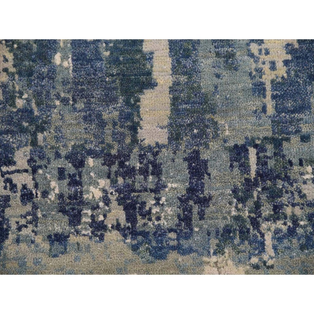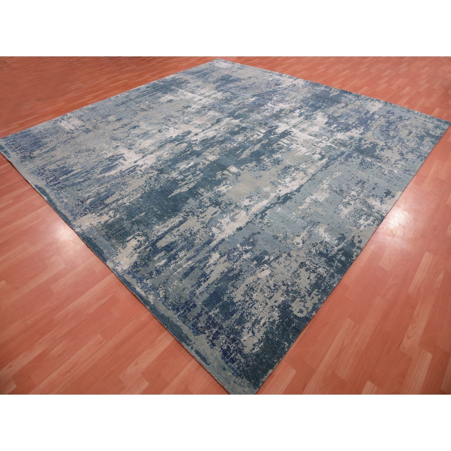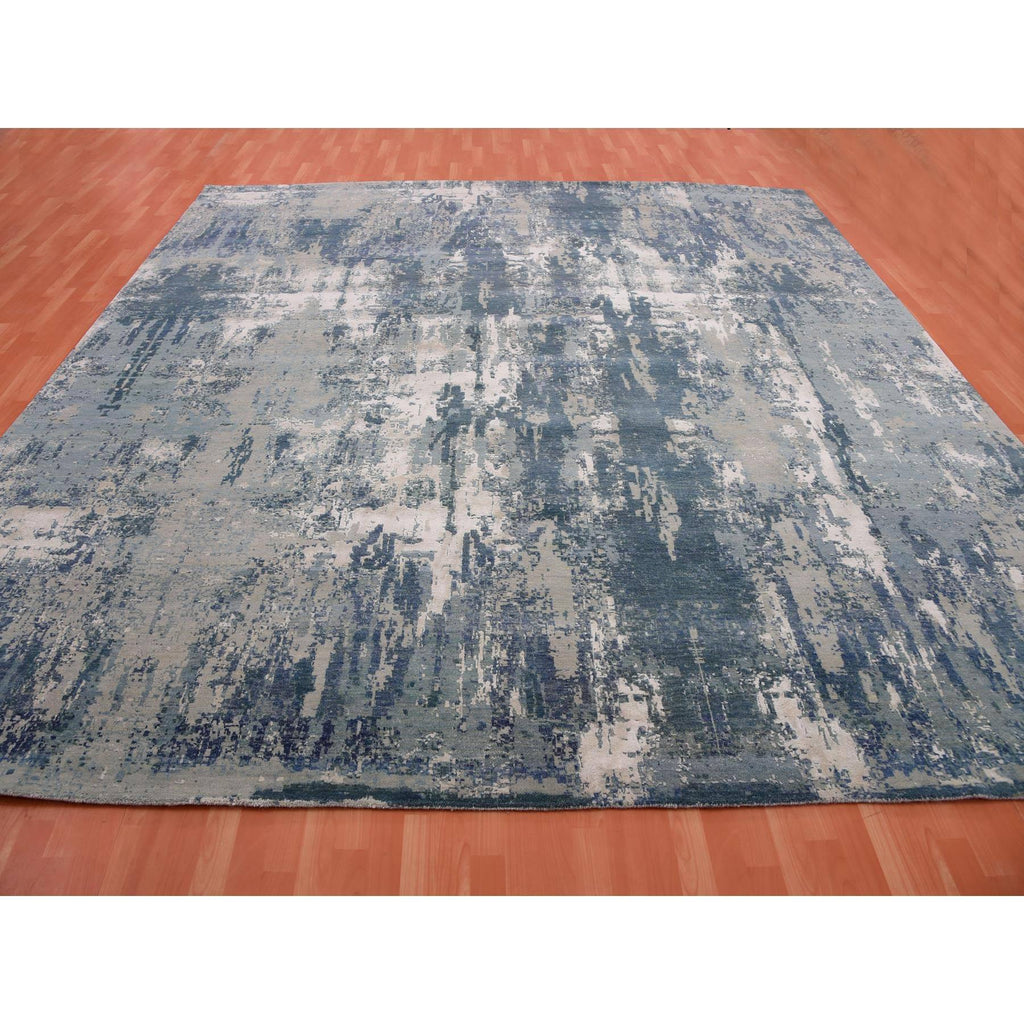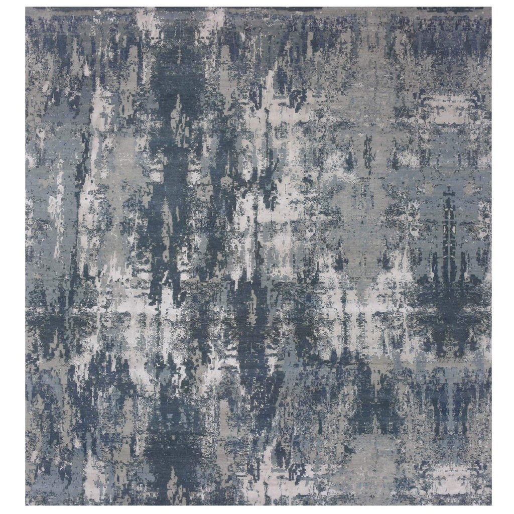 12'x12' Grotto Blue With Mix Of Delray Gray, Hi-lo Pile, Abstract Design, Wool And Silk, Modern Hand Knotted, Denser Weave Square Oriental Rug FWR451998