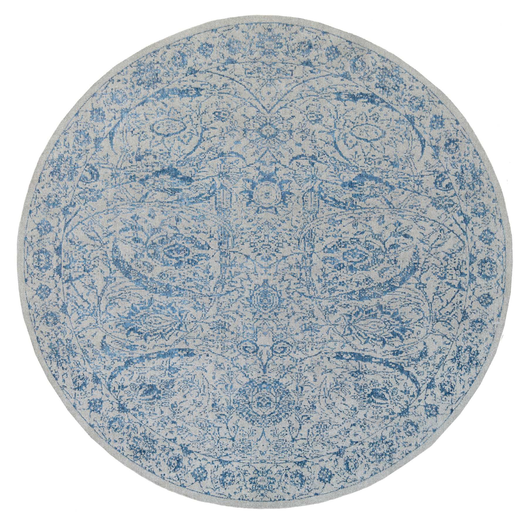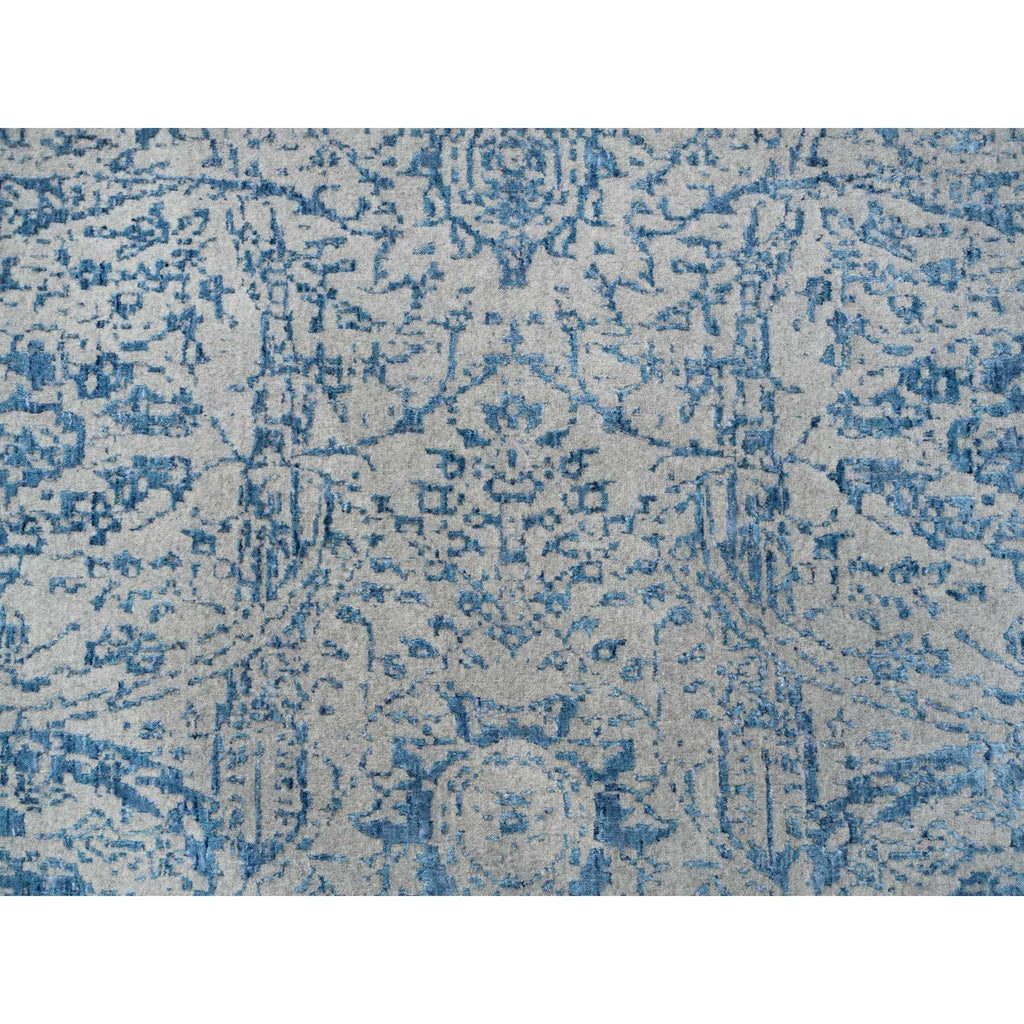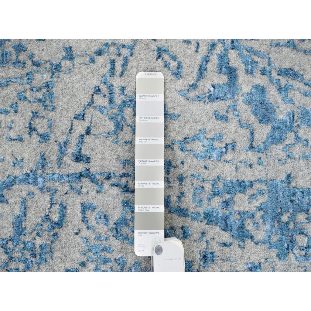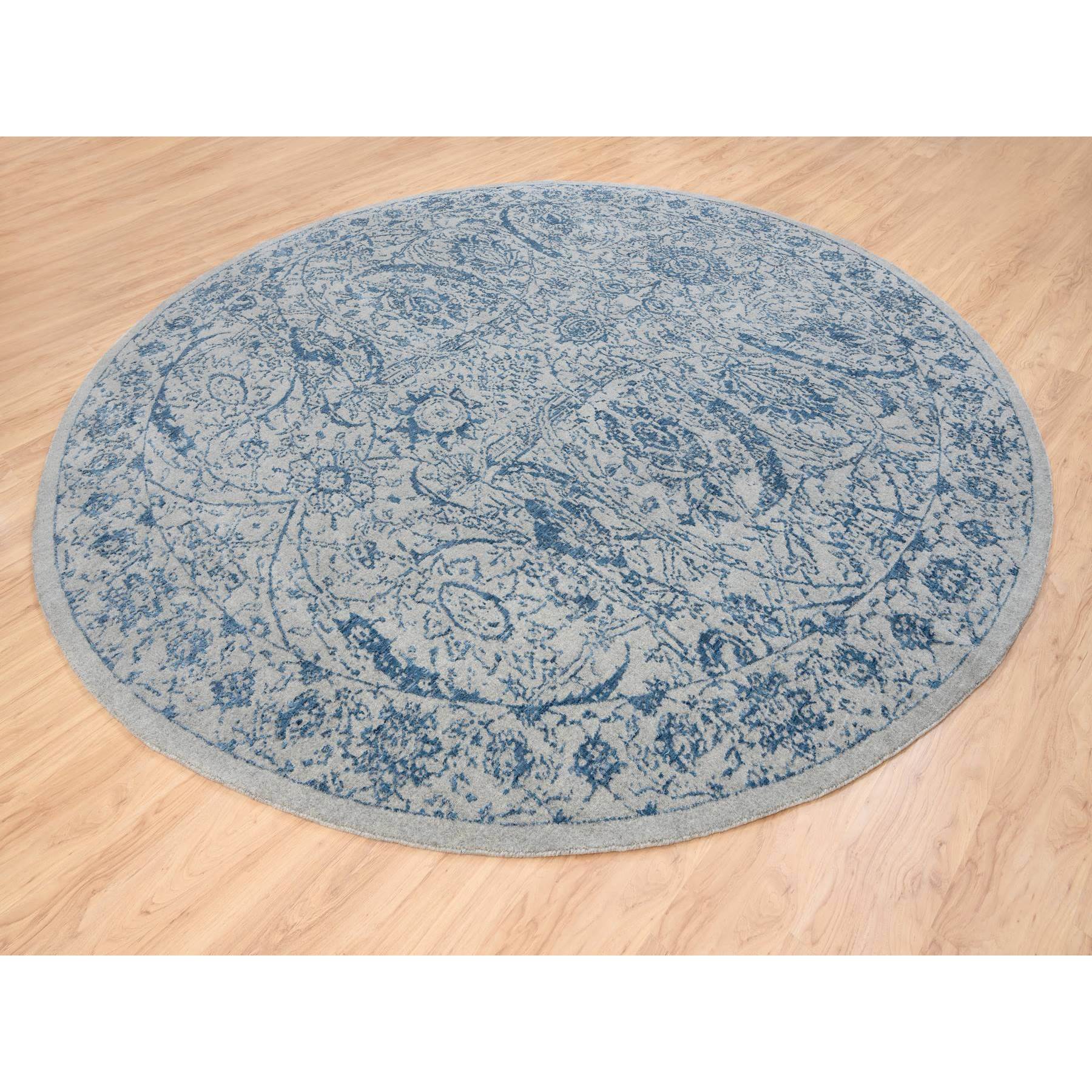 12'x12' Hand Loomed Gray Fine Jacquard With Sickle Leaf Design Wool And Plant Based Silk Oriental Round Rug FWR381036