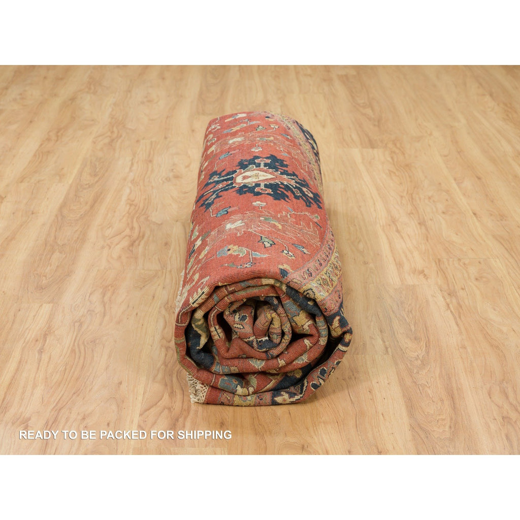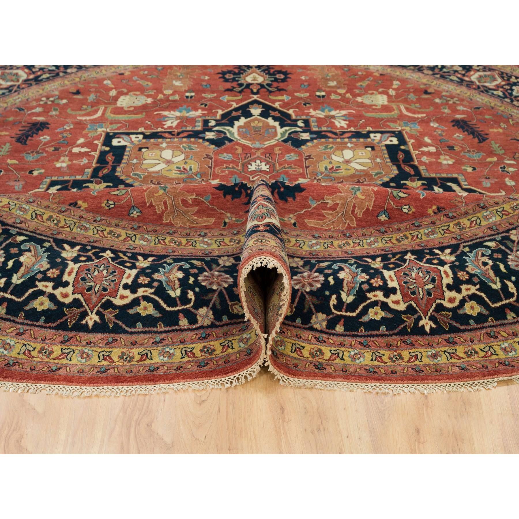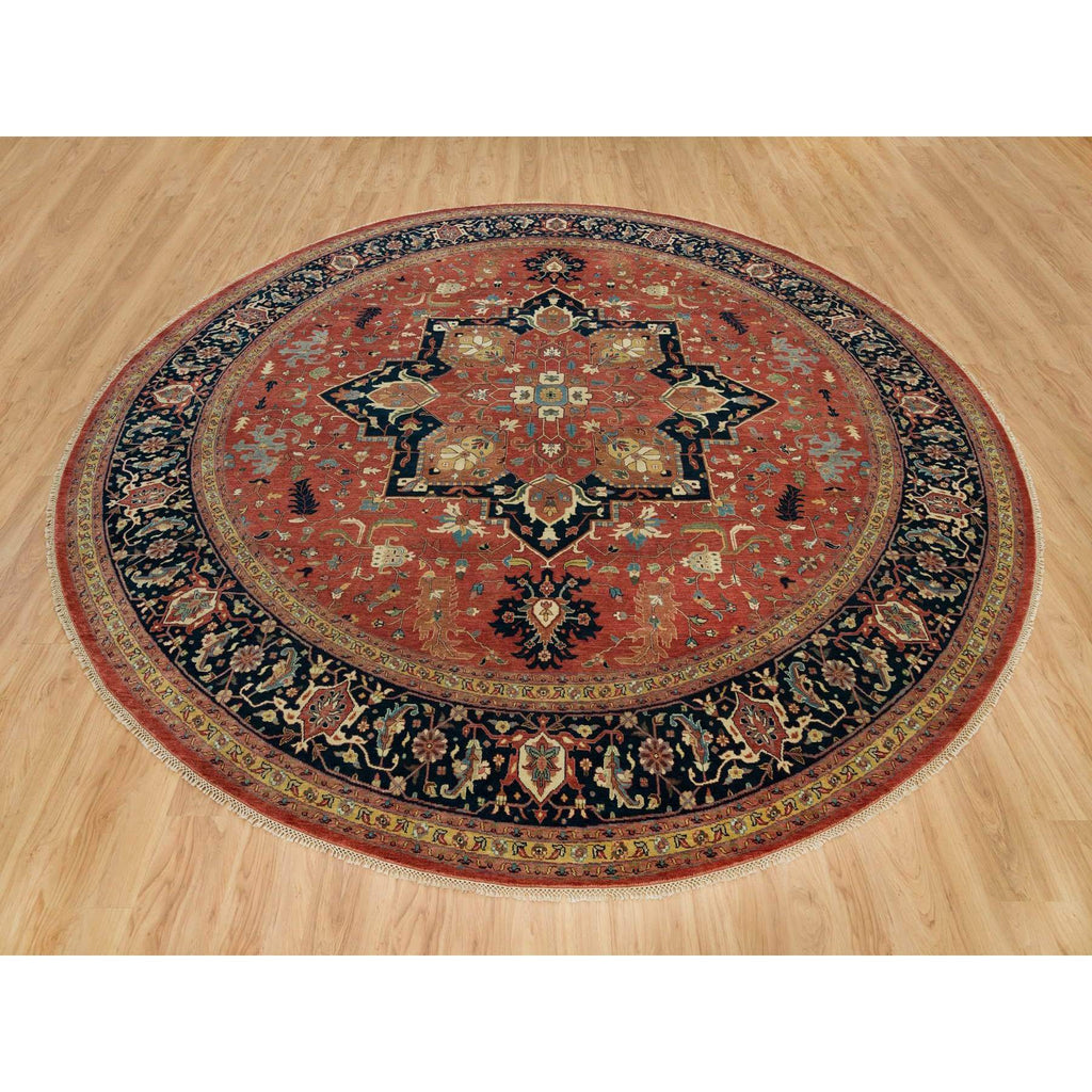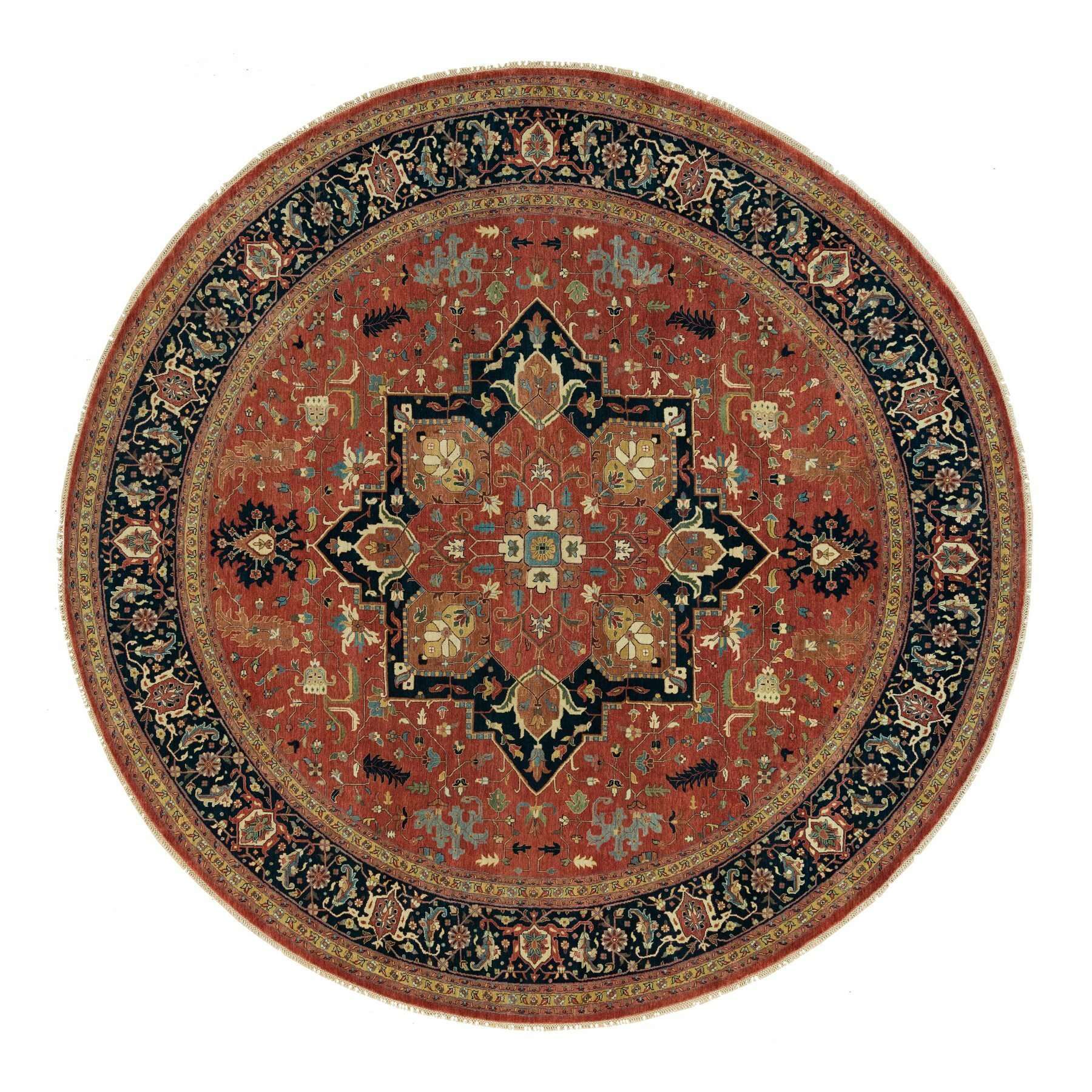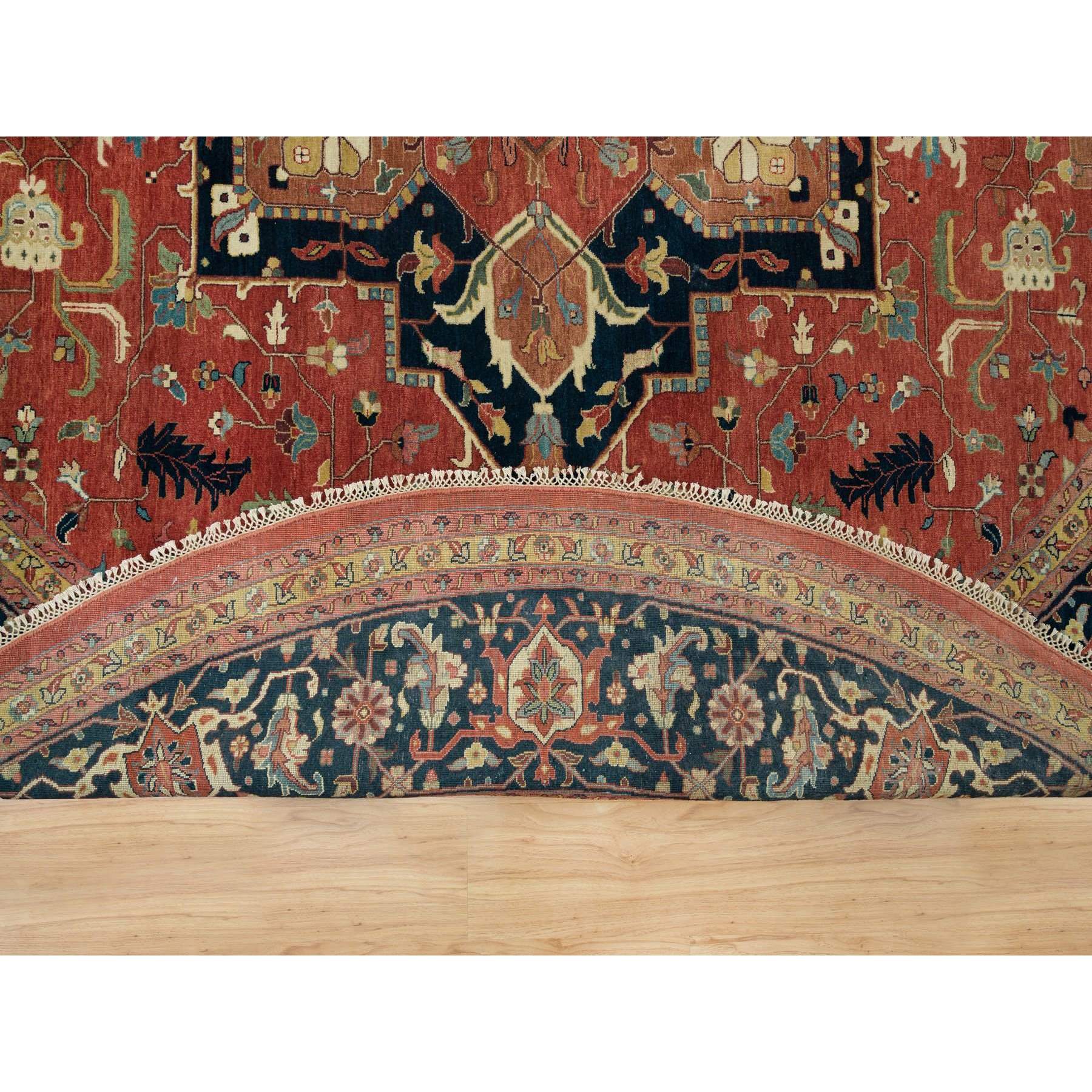 12'x12' Japanese Carmine Red, Soft And Lush, Dense Weave, Hand Knotted, Antiqued Fine Heriz Re-creation, Vegetable Dyes, 100% Wool, Round Oriental Rug FWR540612