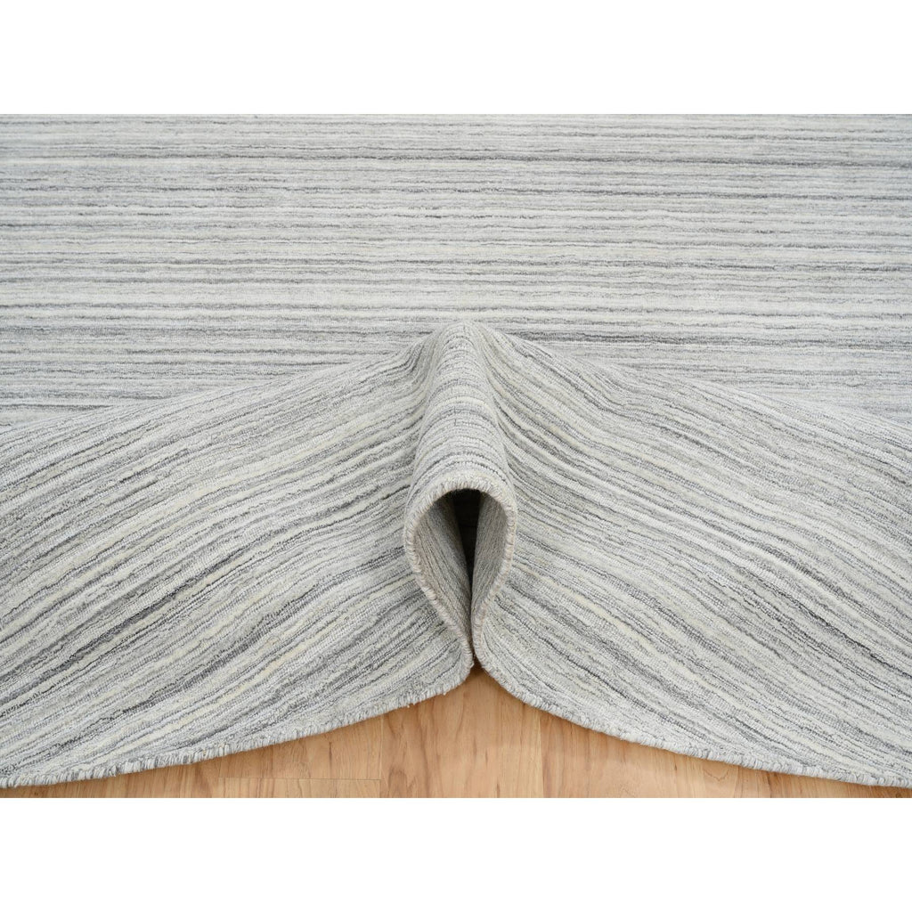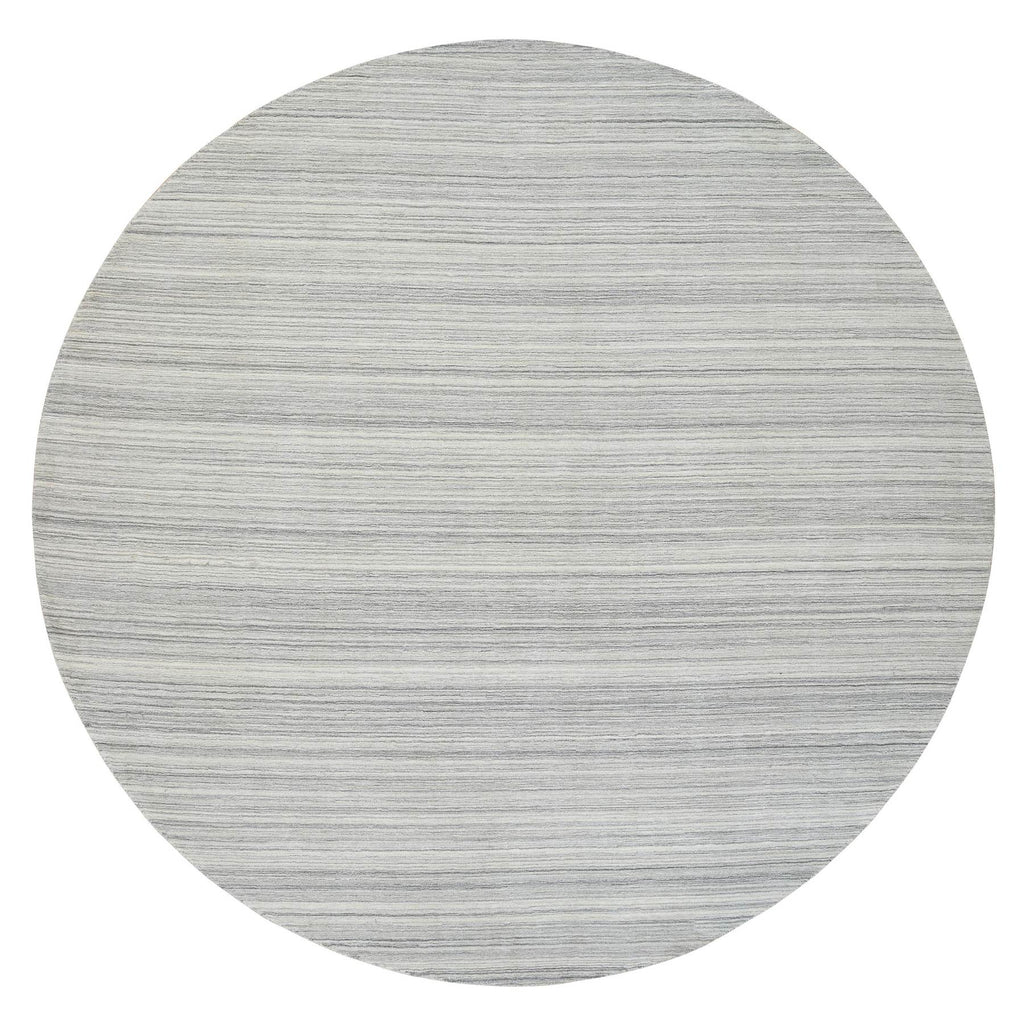 12'x12' Platinum Gray And Cream, Plain Hand Loomed Undyed Natural Wool, Modern Design Thick And Plush, Round Oriental Rug FWR389970