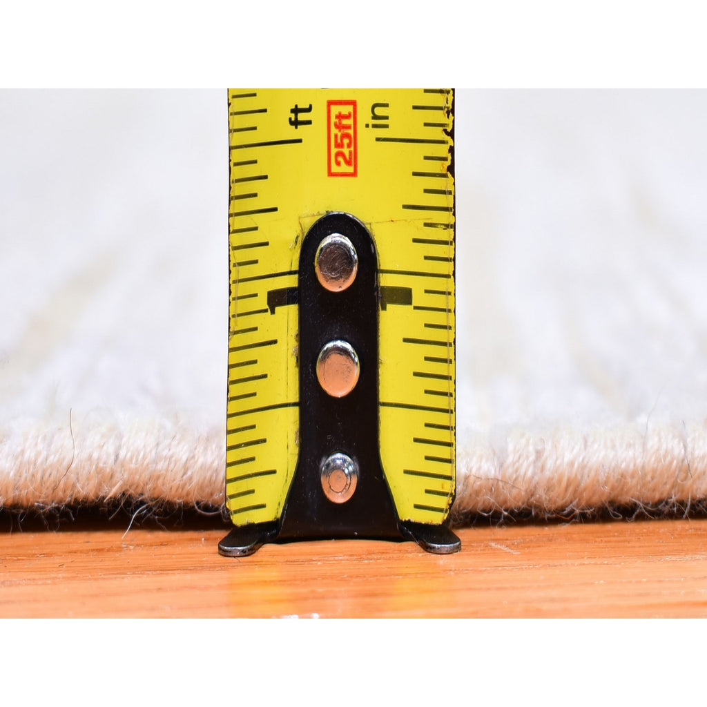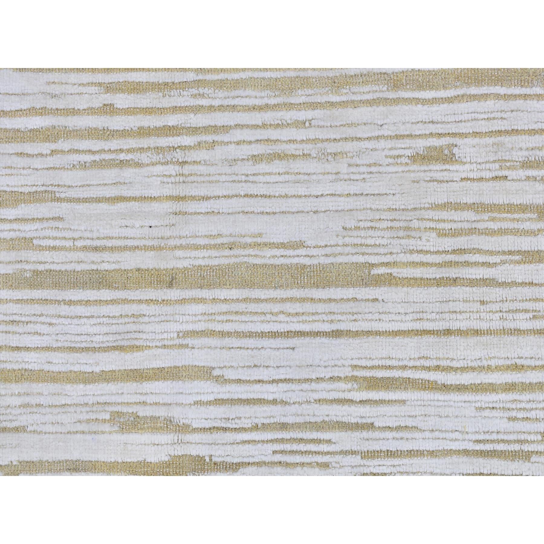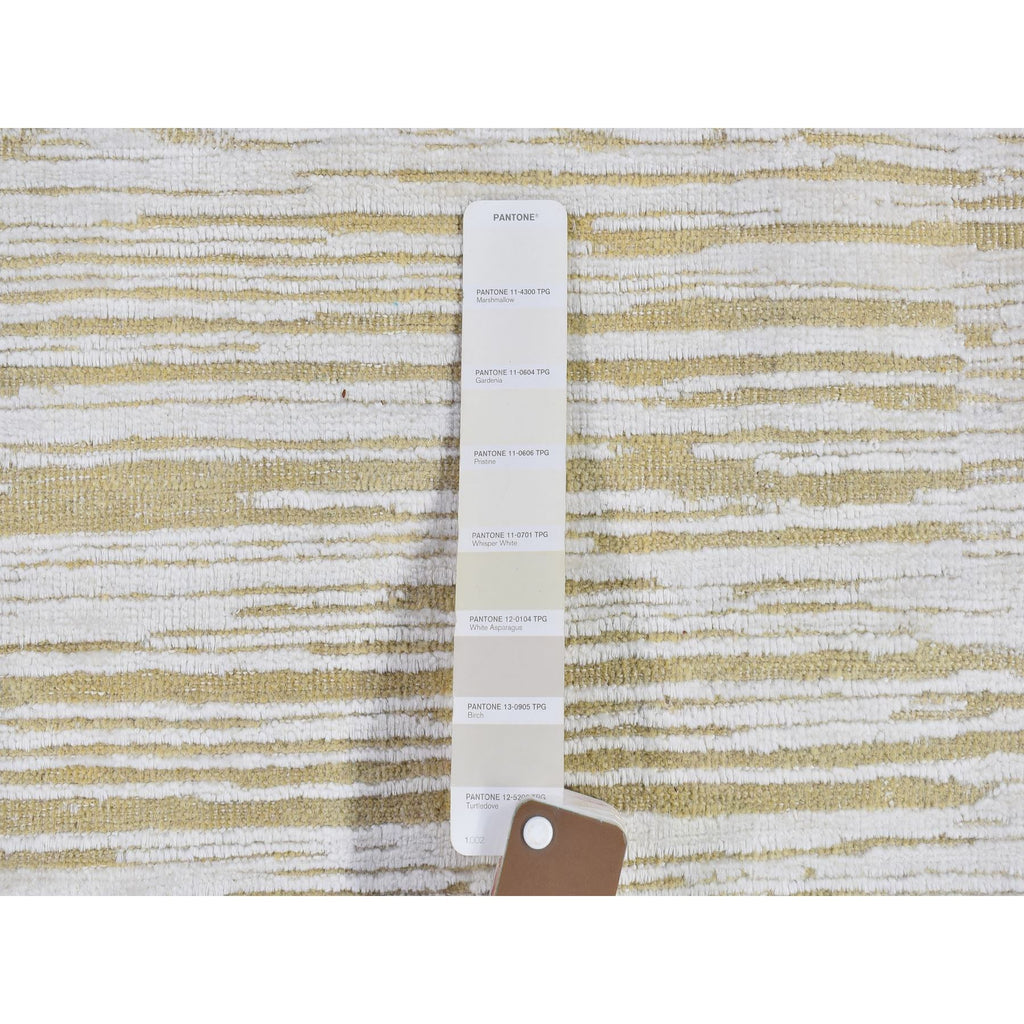 12'x12' Striae Design Hand Knotted Ivory Silk With Textured Wool Tone On Tone Hi-low Pile Round Oriental Rug FWR400788