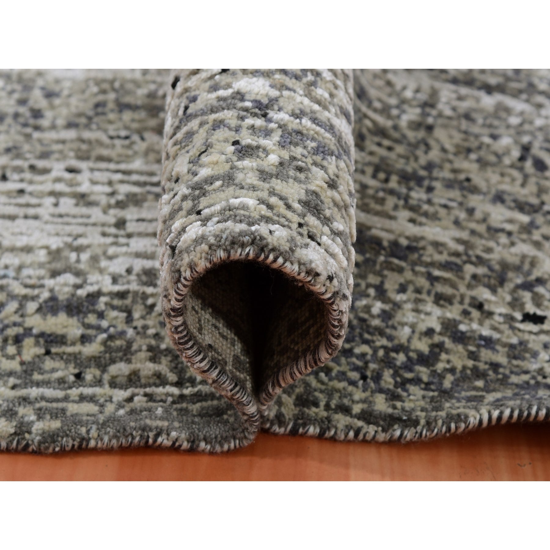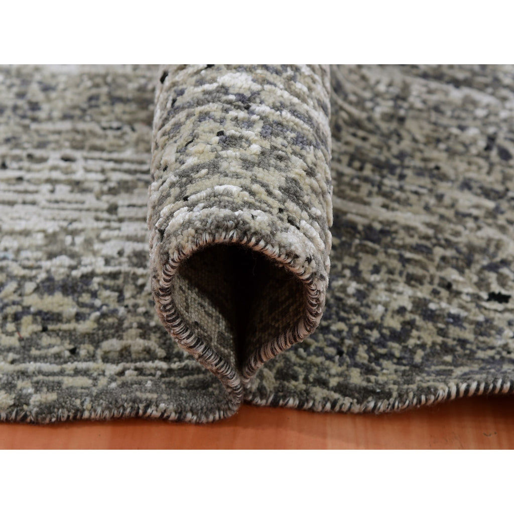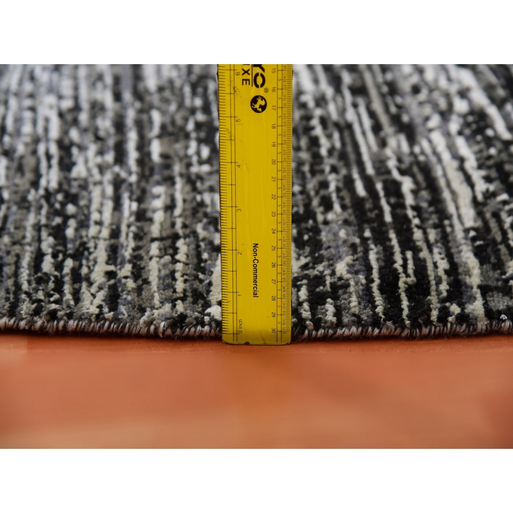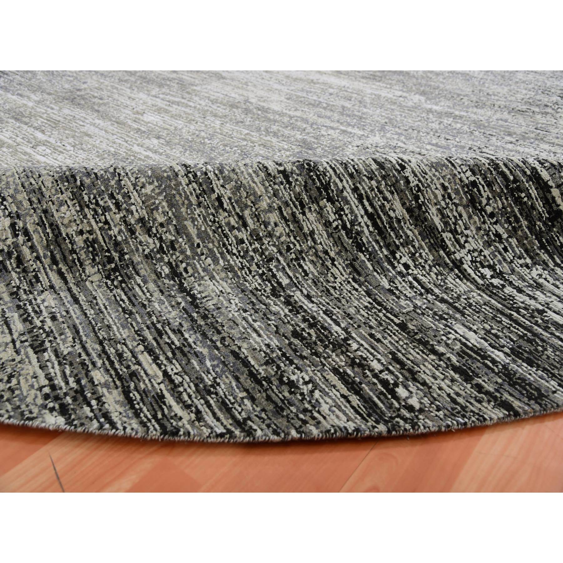 12'x12' Tricorn Black With Shade Of Gray, Modern Striae Design, Soft Pile Wool And Silk Hand Knotted, Round Oriental Rug FWR452022