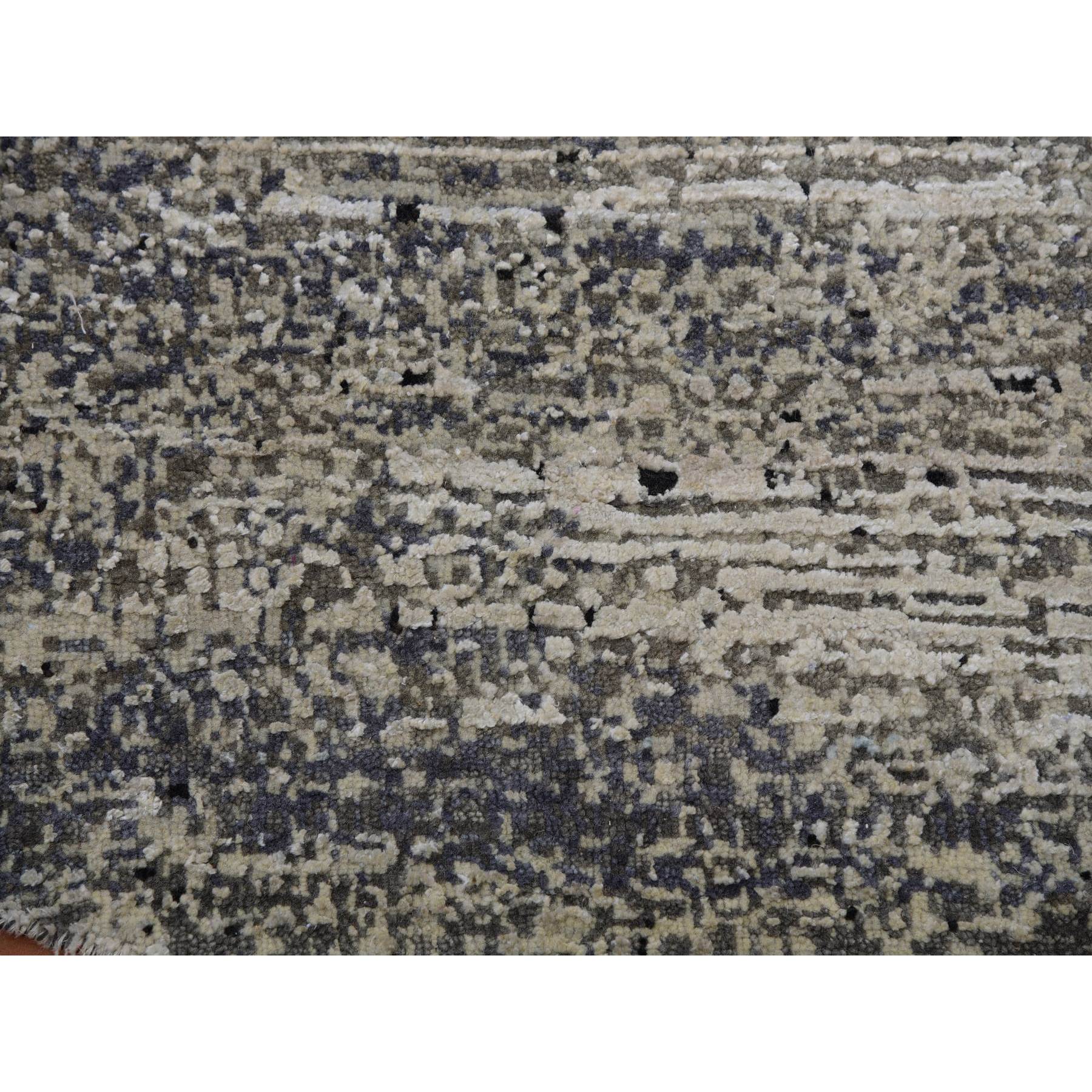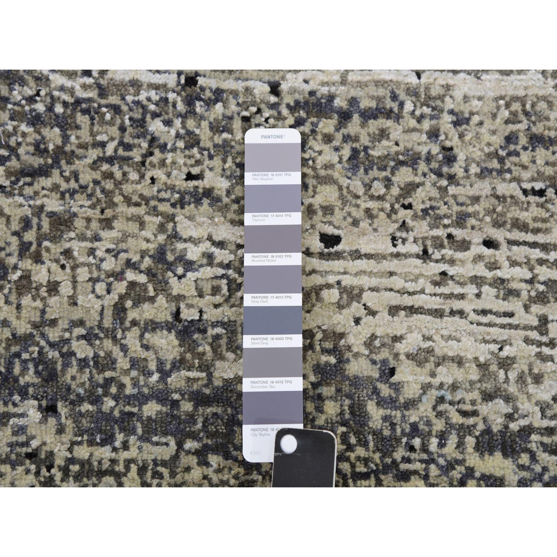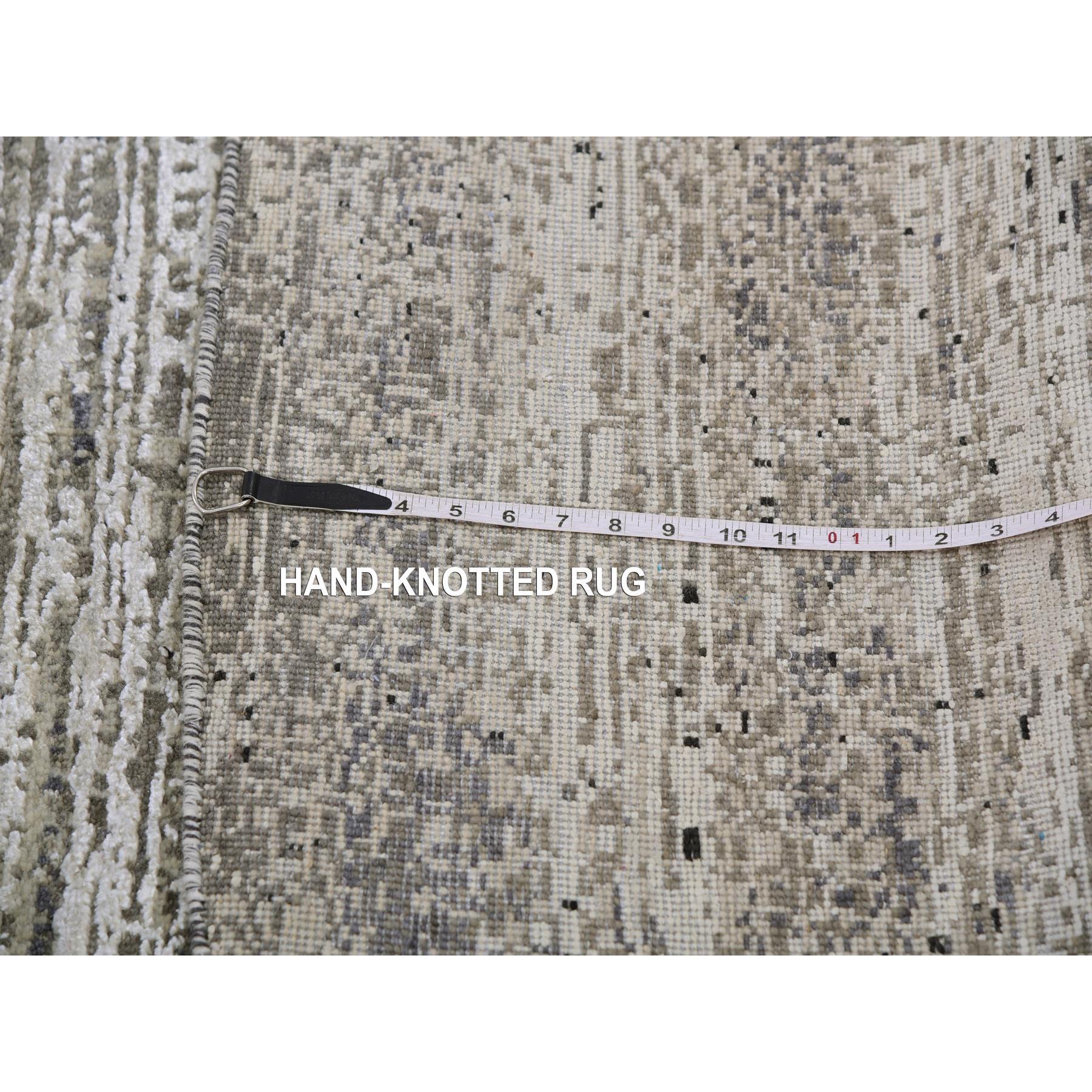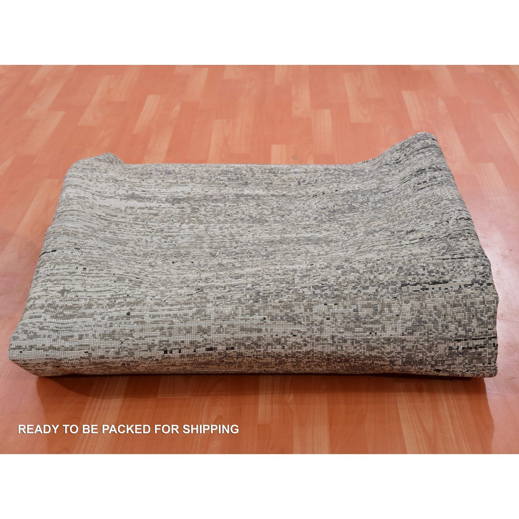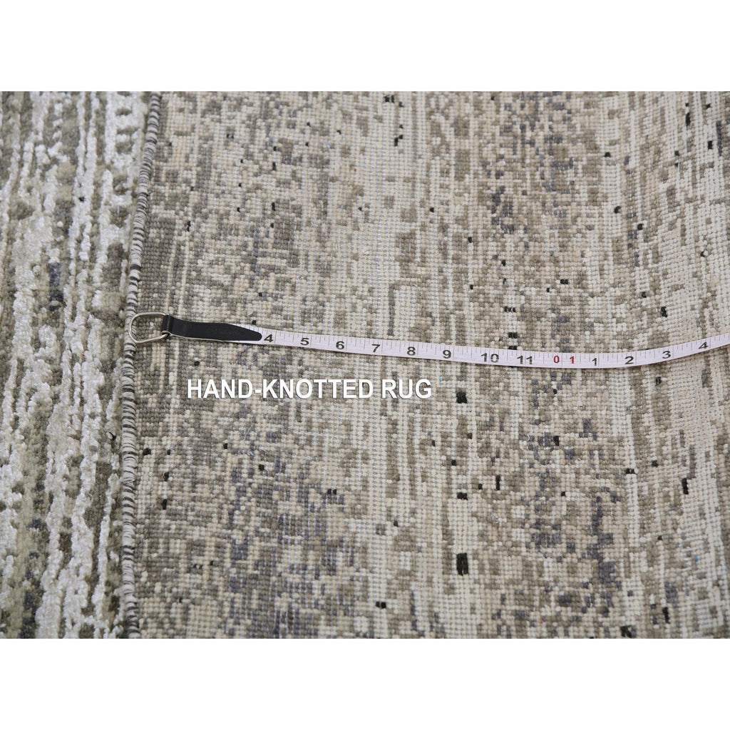 12'x12' Tricorn Black With Shade Of Gray, Modern Striae Design, Soft Pile Wool And Silk Hand Knotted, Round Oriental Rug FWR452022