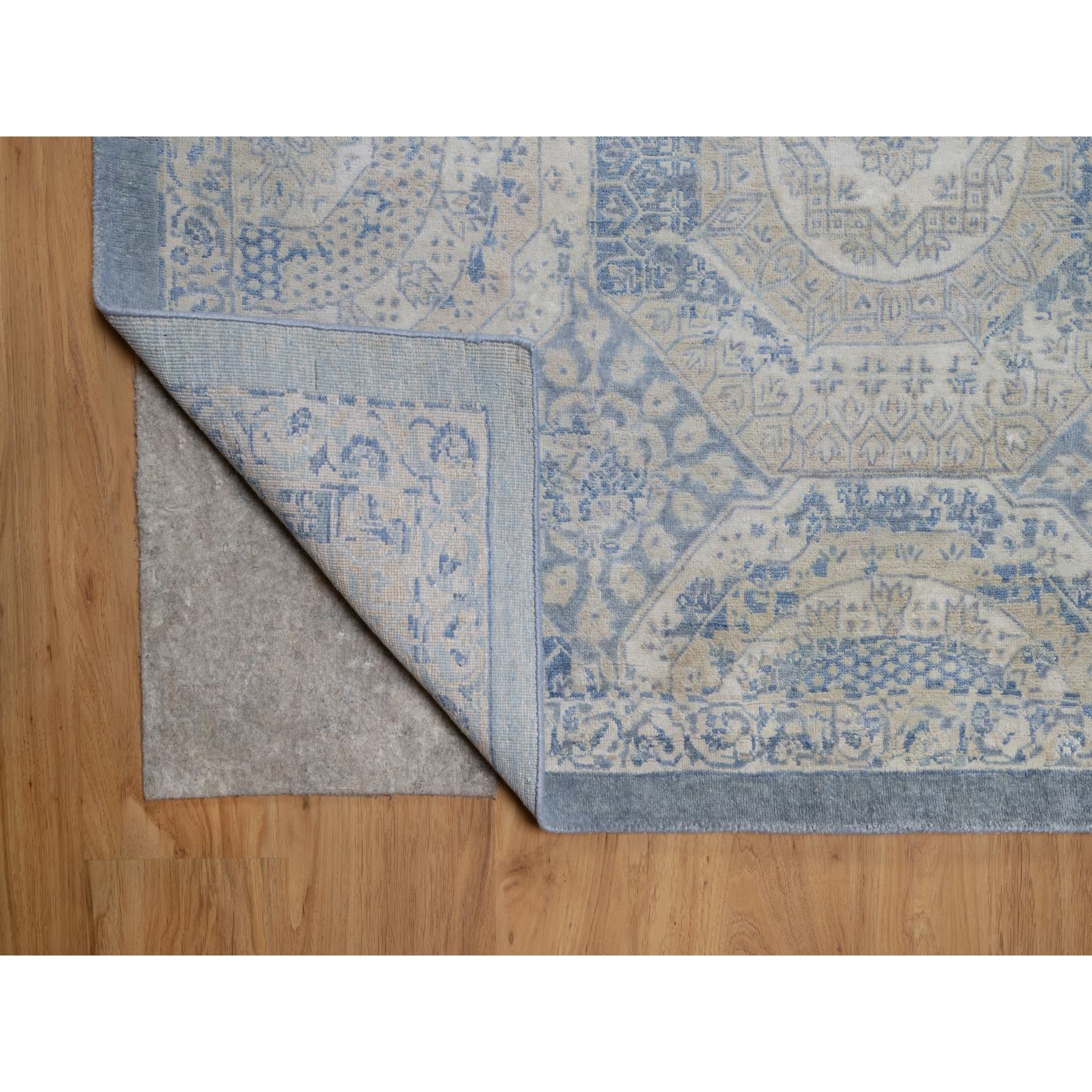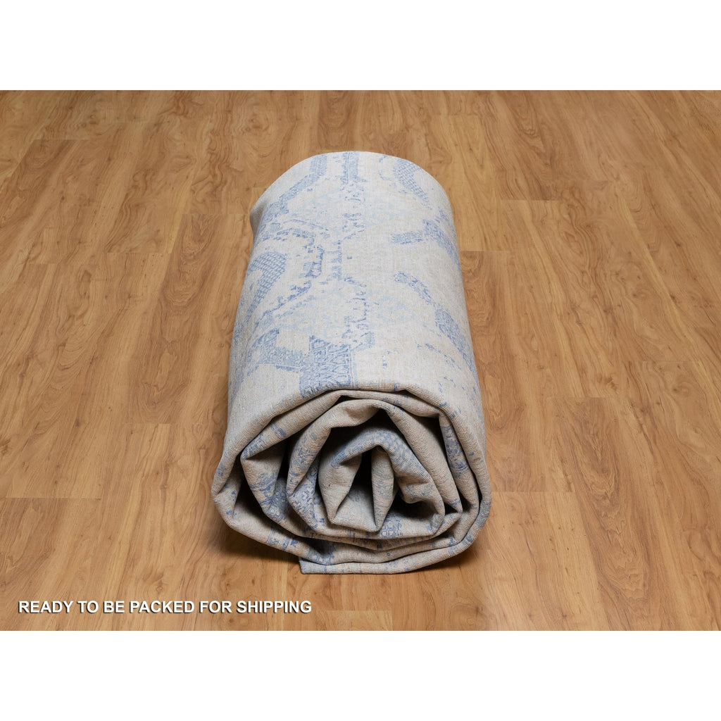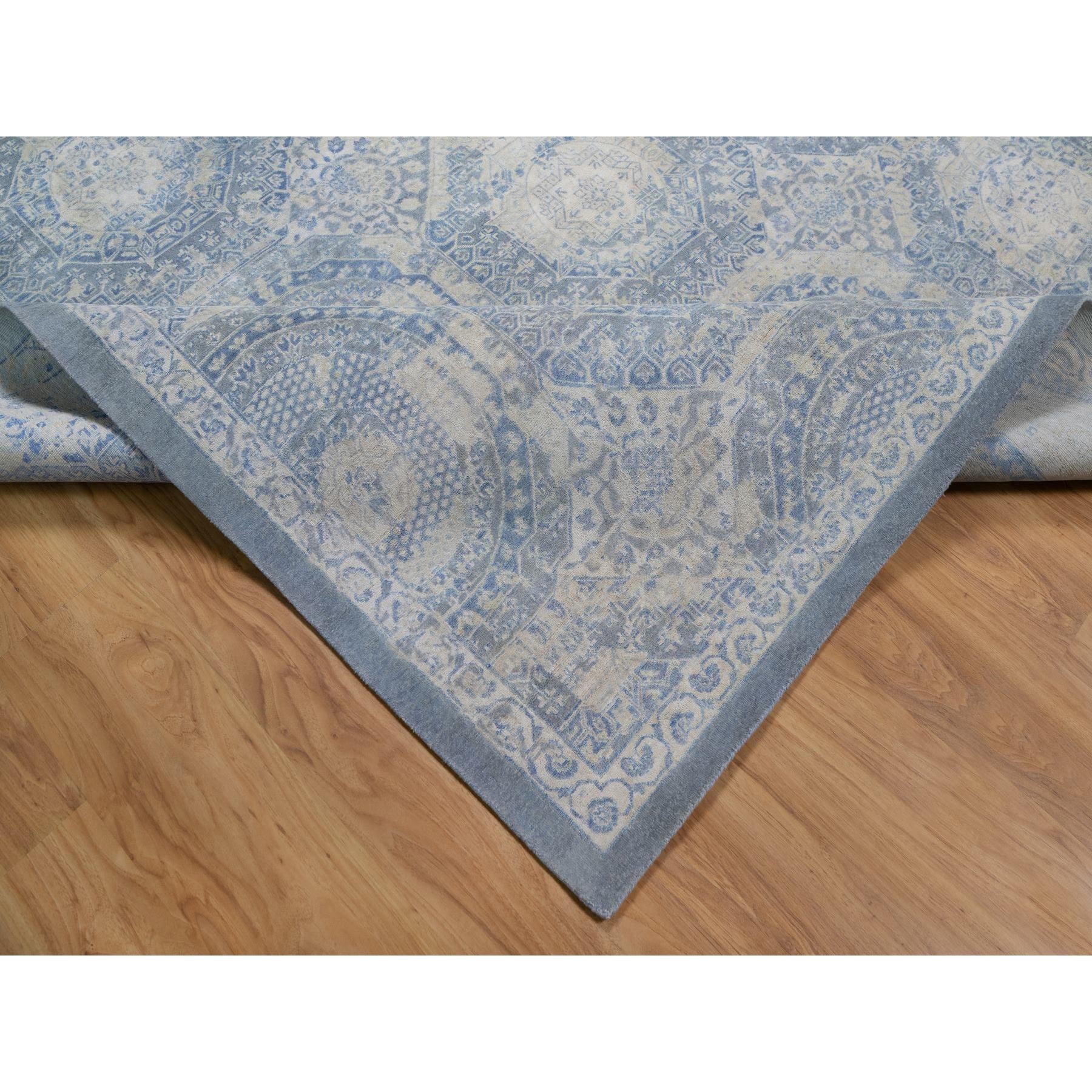 12'x14'10" Silver Blue, 100% Linen, Super Soft To The Touch, Mamluk Description, Hand Knotted, Broken And Erased Design, Xl, Oversized, Oriental Rug FWR551124