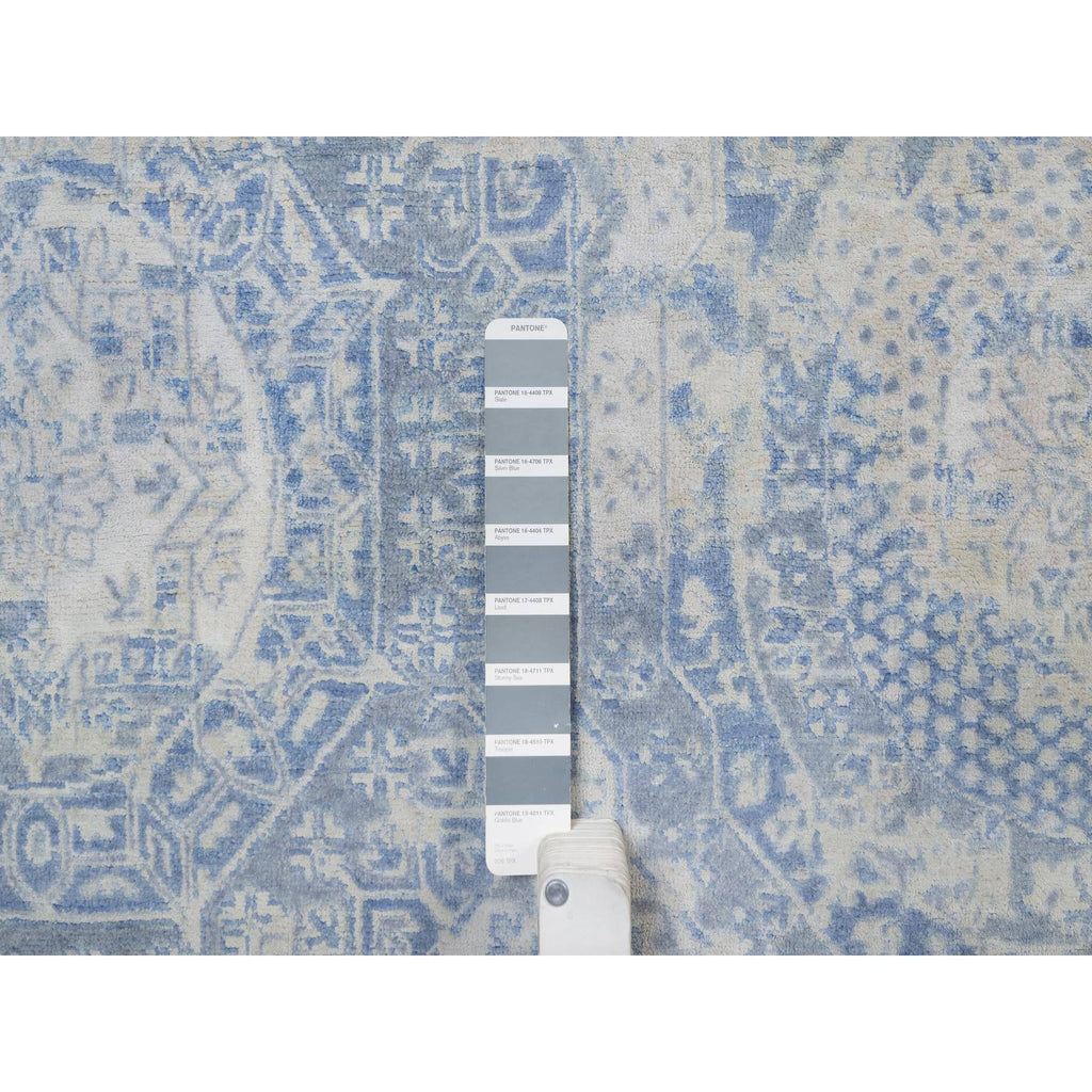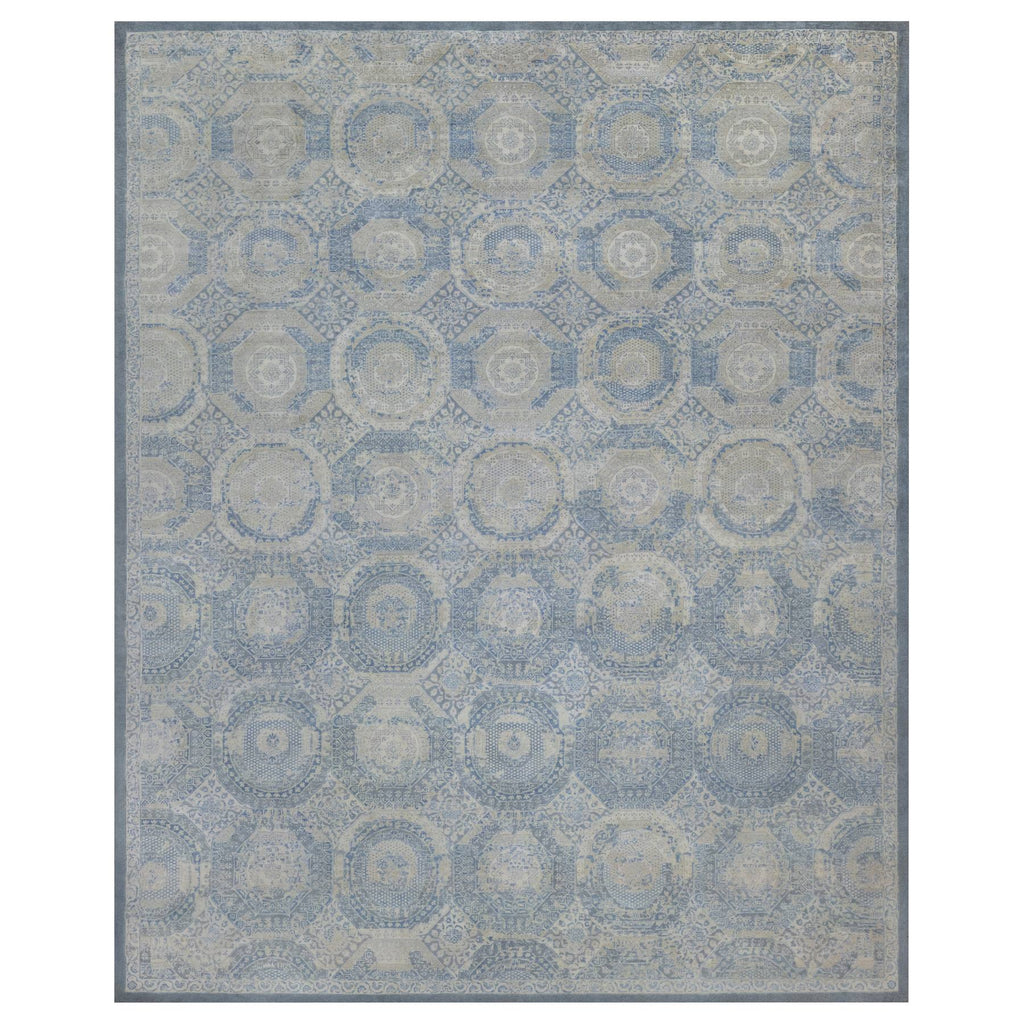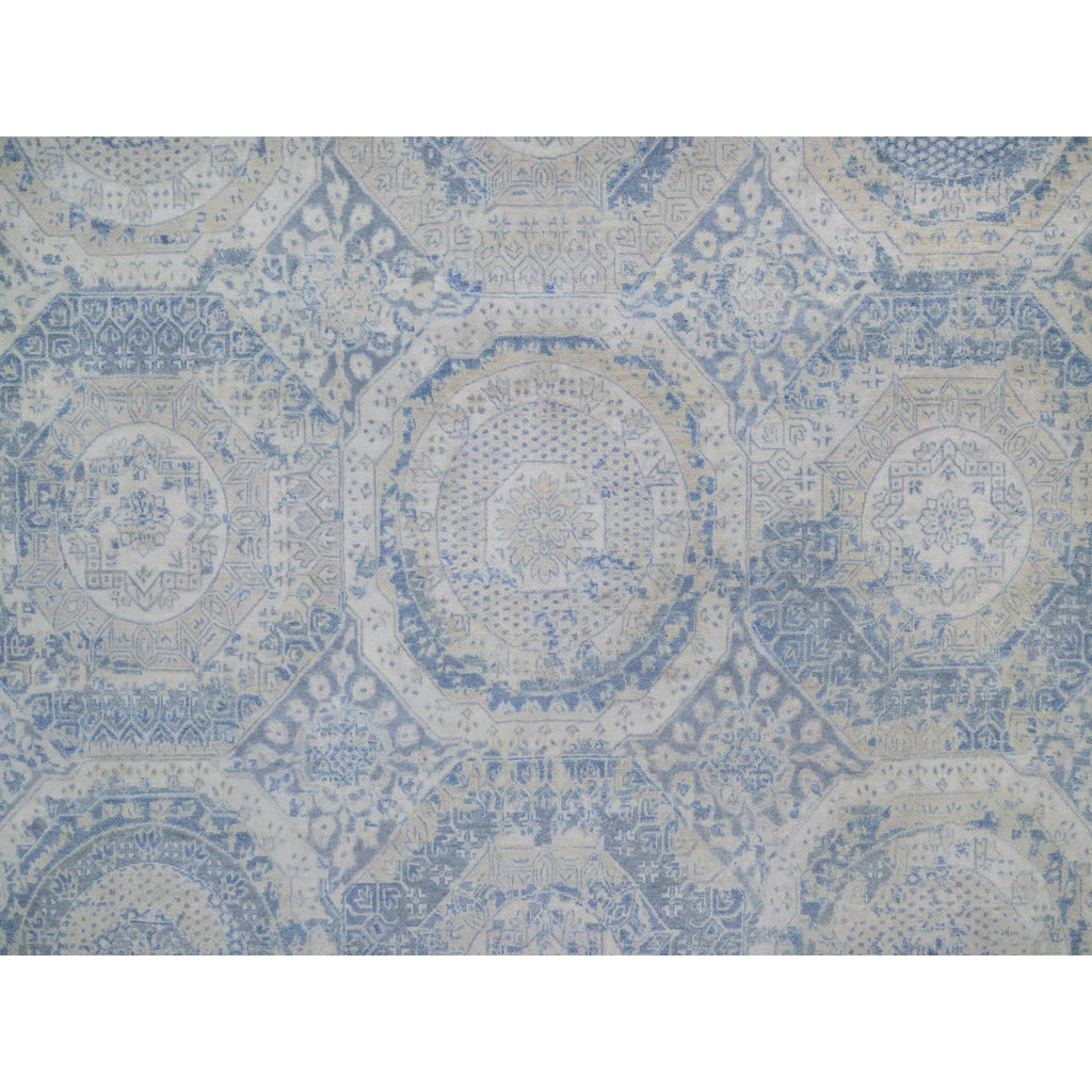 12'x14'10" Silver Blue, 100% Linen, Super Soft To The Touch, Mamluk Description, Hand Knotted, Broken And Erased Design, Xl, Oversized, Oriental Rug FWR551124