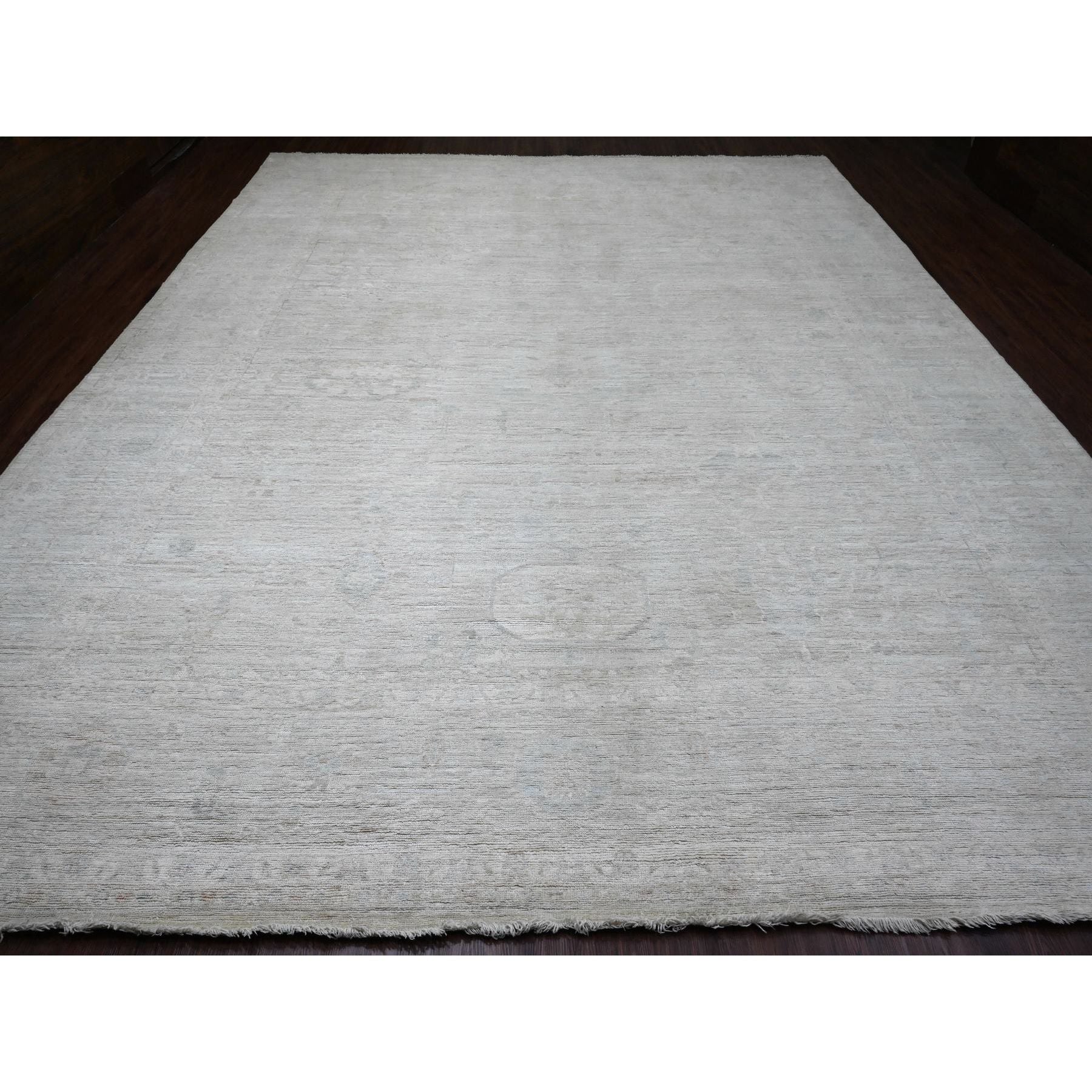 12'x14'8" Cascading White, Hand Knotted, Afghan Angora Oushak With All Over Leaf Pattern, Natural Dyes, 100% Wool, Oversized, Oriental Rug FWR122766