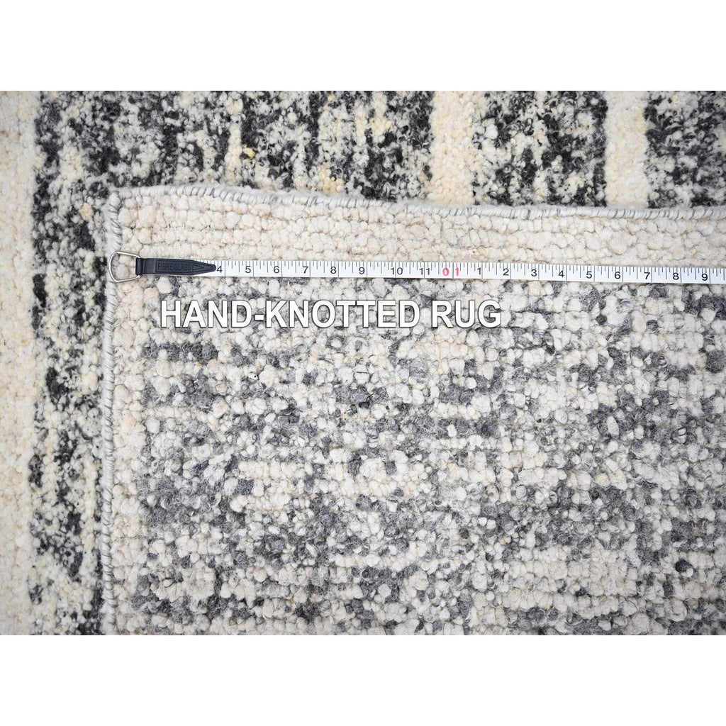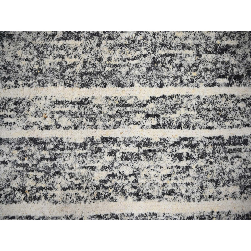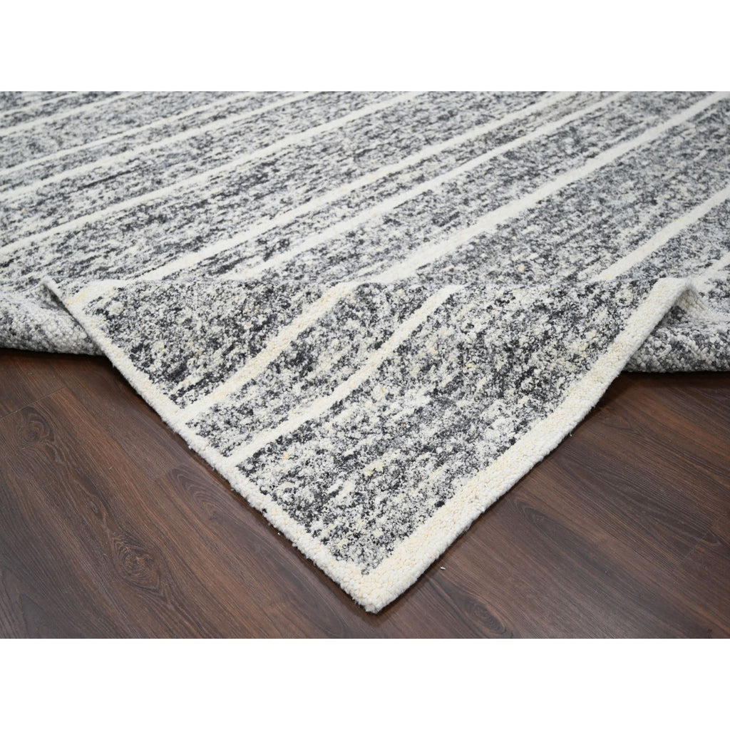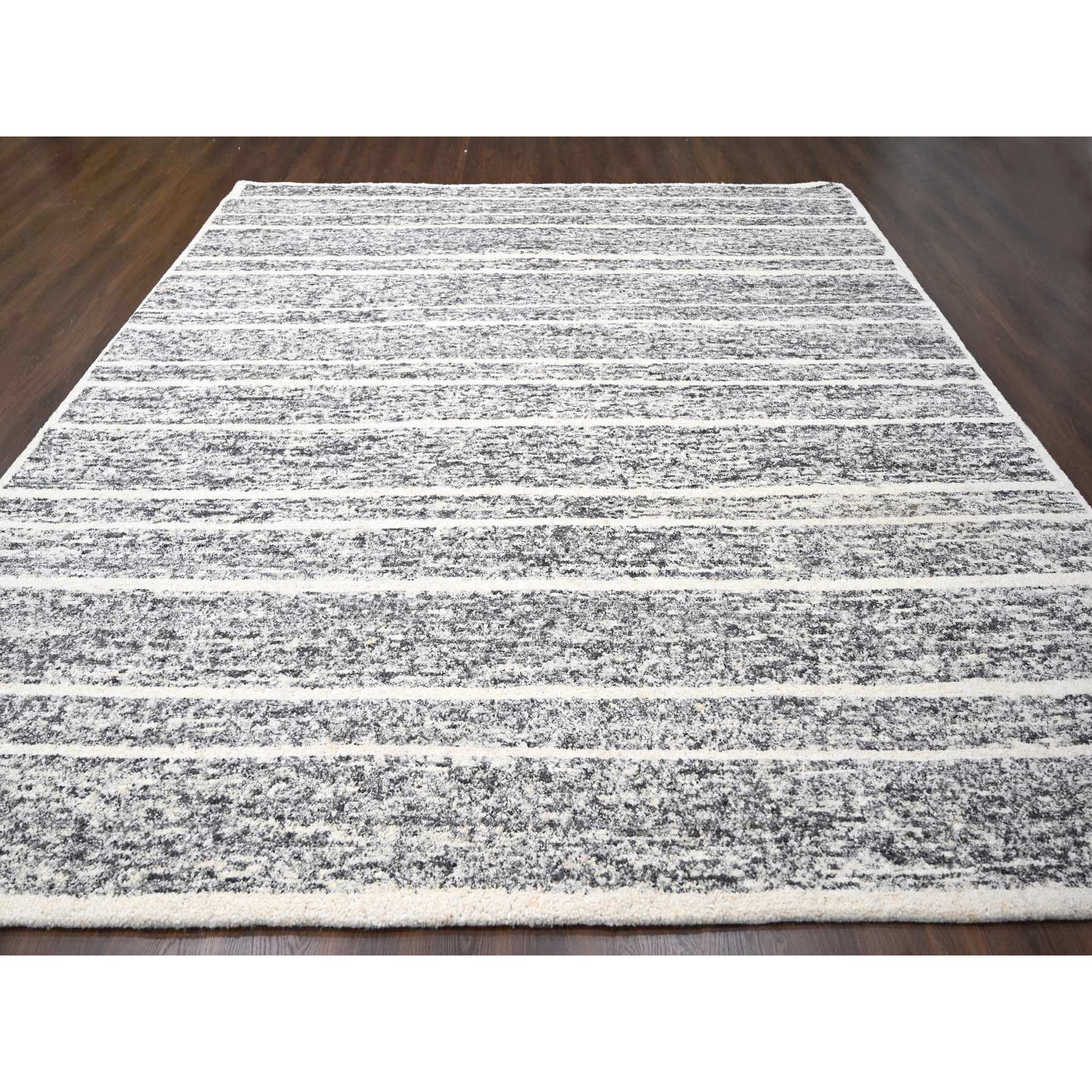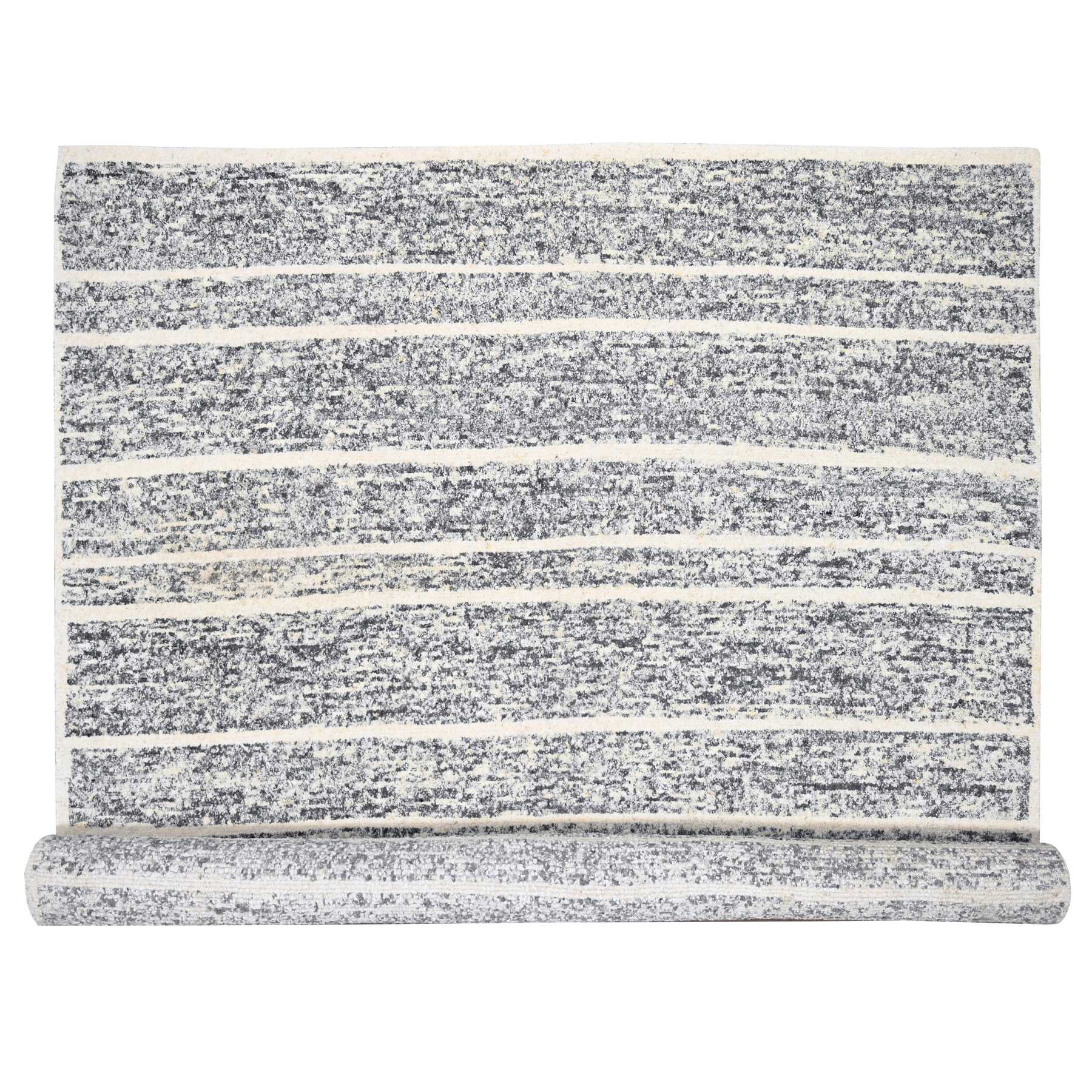 12'x14'9" Black And Ivory, Modern Striae Design, Hand Knotted, Plush Pile, Densely Woven, Organic Undyed Wool, Oversized Oriental Rug FWR505104