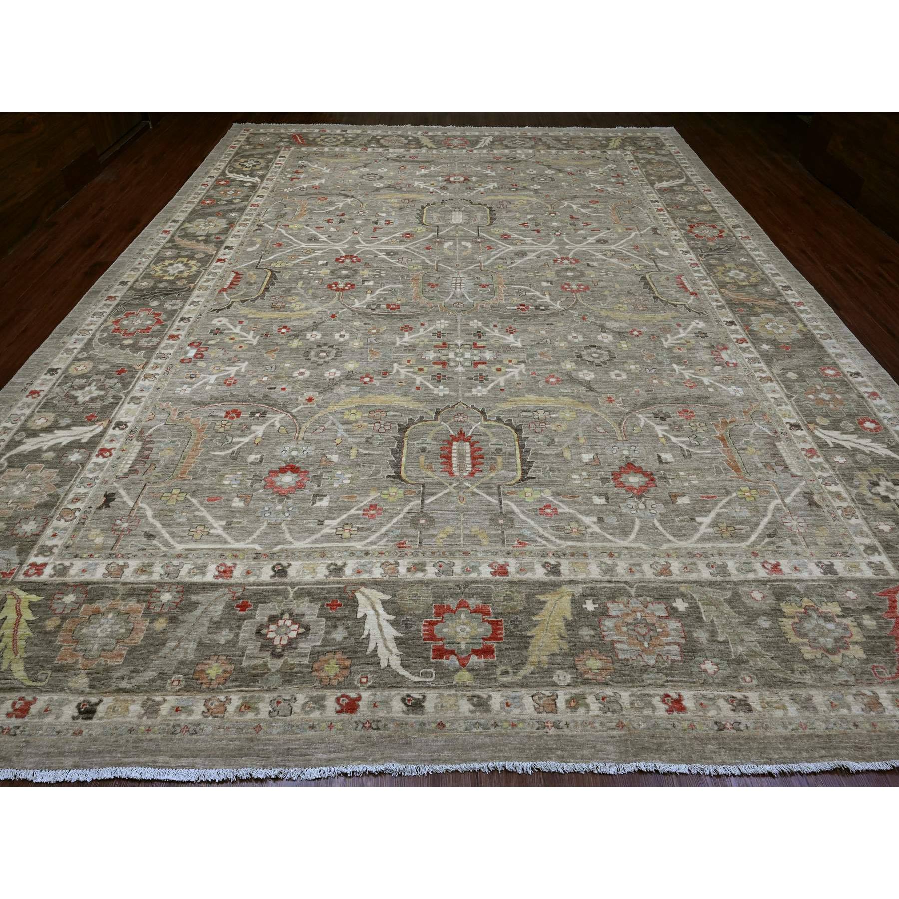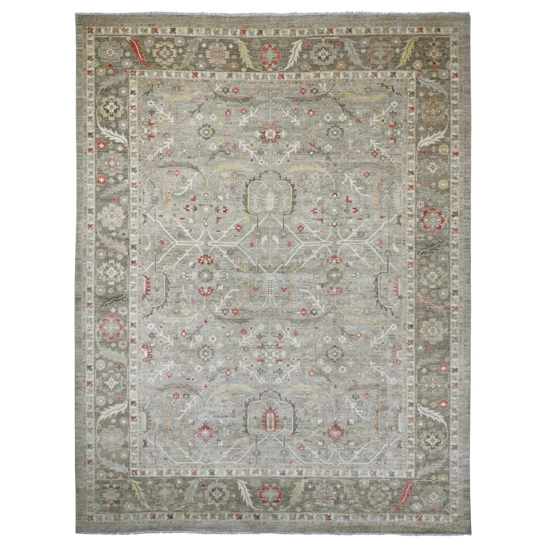 12'x15'1" Fossil Gray, Peshawar With Heriz All Over Design, Hand Knotted, 100% Wool, Natural Dyes, Densely Woven, Oversized, Oriental Rug FWR120042