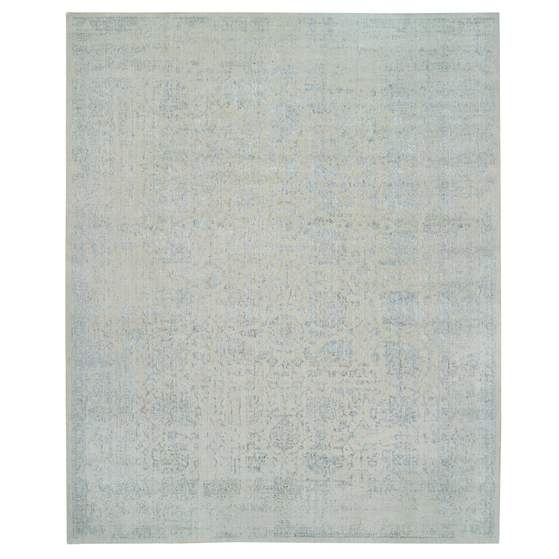 12'x15'1" Gray With Touches Of Blue, Wool And Plant Based Silk Jacquard Hand Loomed, Tabriz Design, Oversized Oriental Rug FWR387624