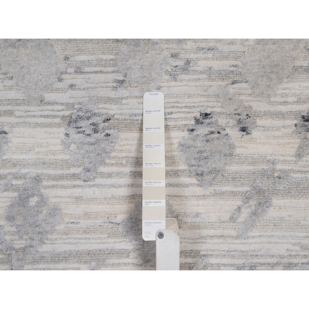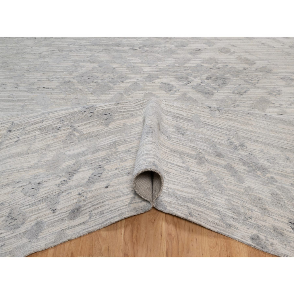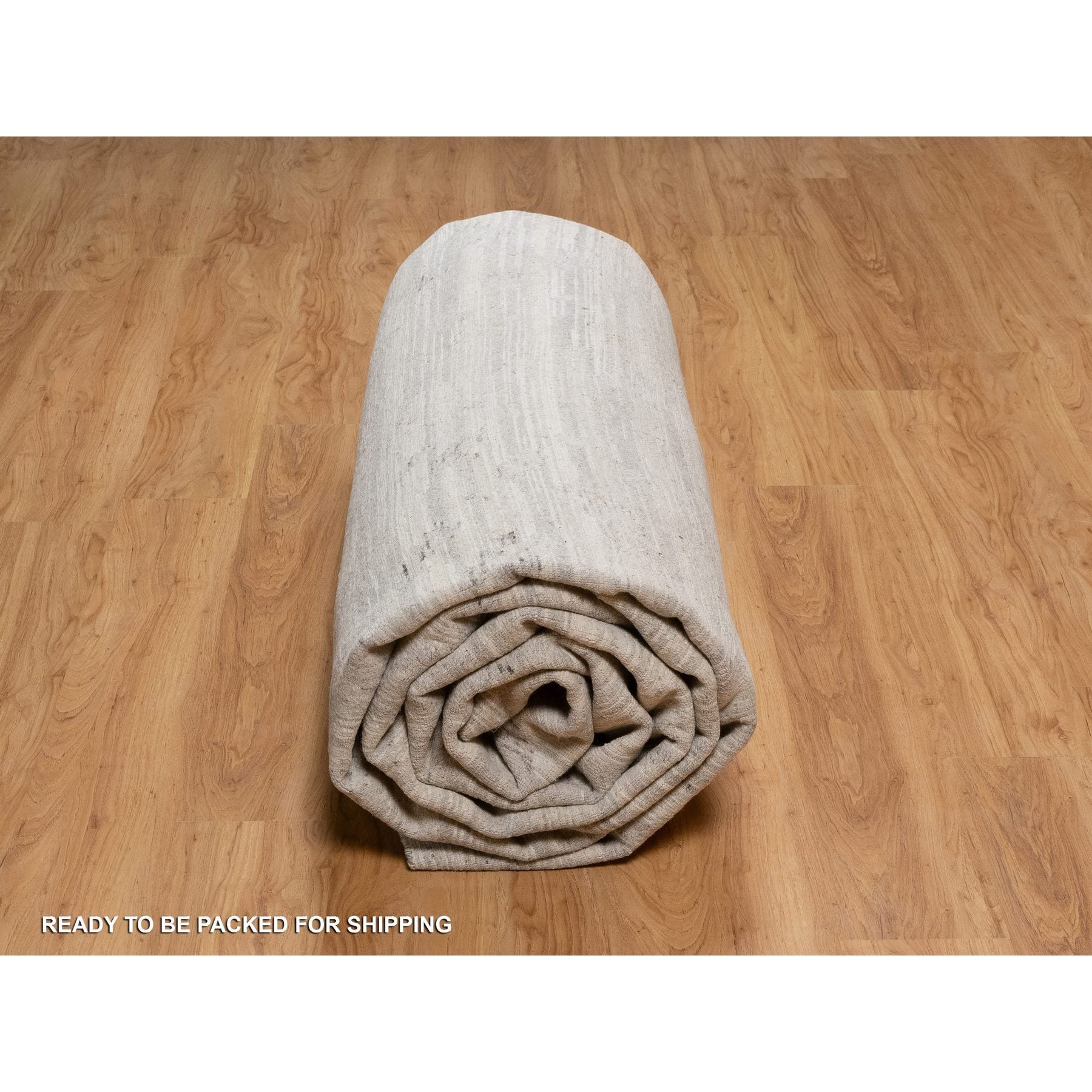 12'x15'3" Winter White, Modern Design, Hand Knotted, Hand Spun Undyed Natural Wool, Xl, Oversized, Oriental Rug FWR551136