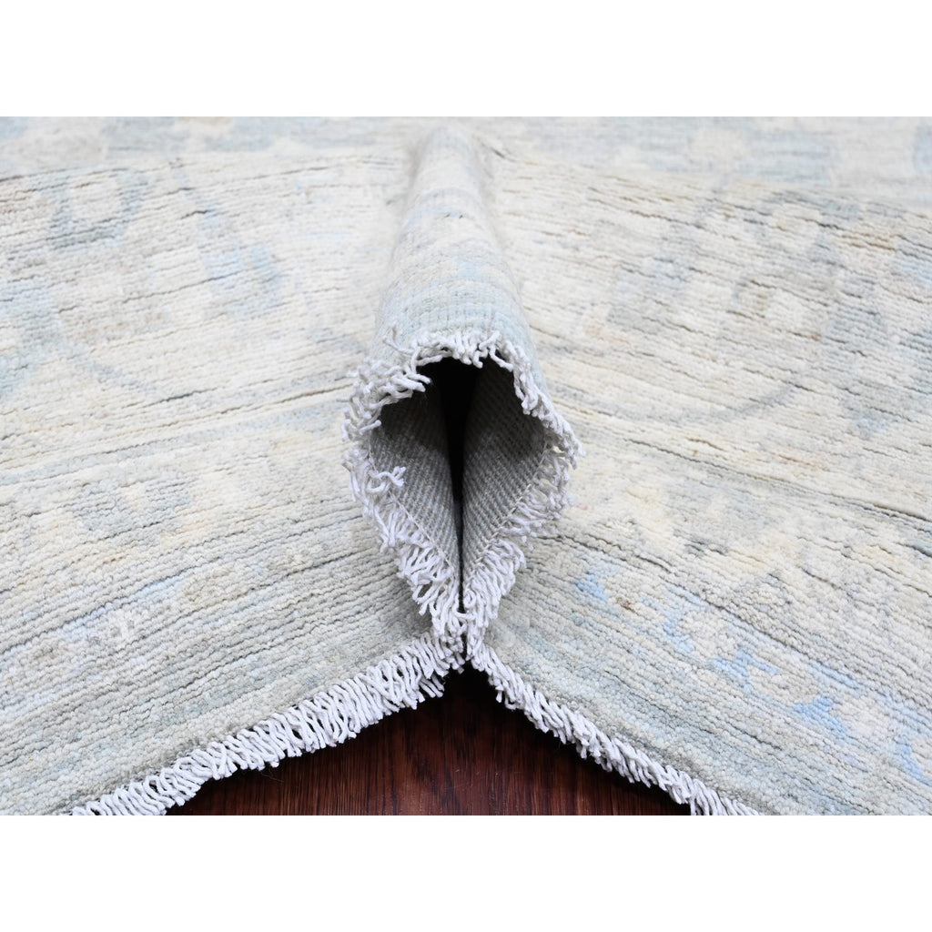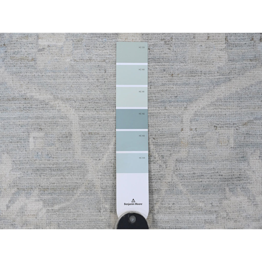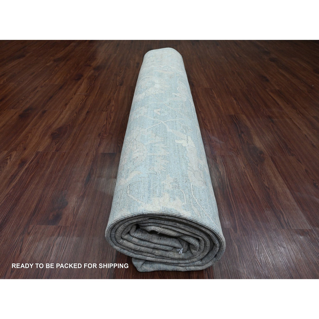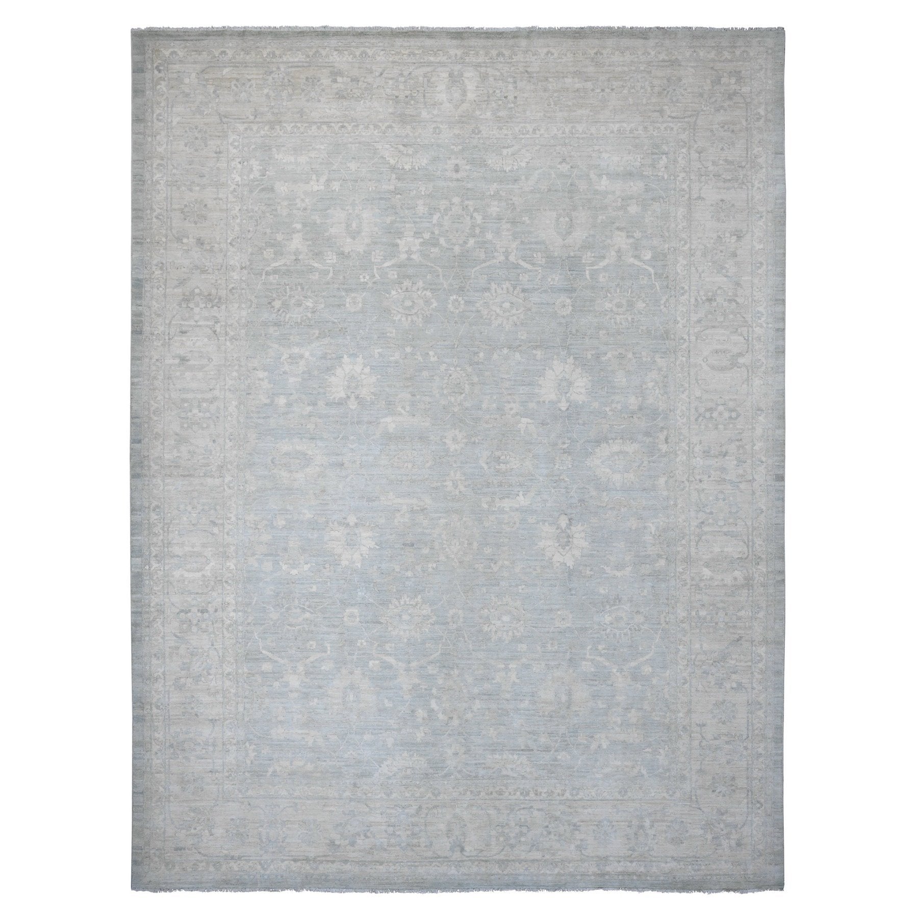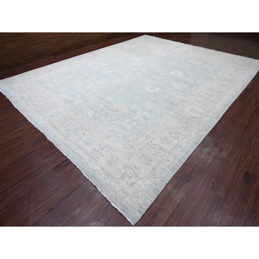12'x15'4" Misty Gray, Washed Out Peshawar With All Over Leaf Pattern, Hand Knotted, Natural Dyes, 100% Wool, Oversized, Oriental Rug FWR122430