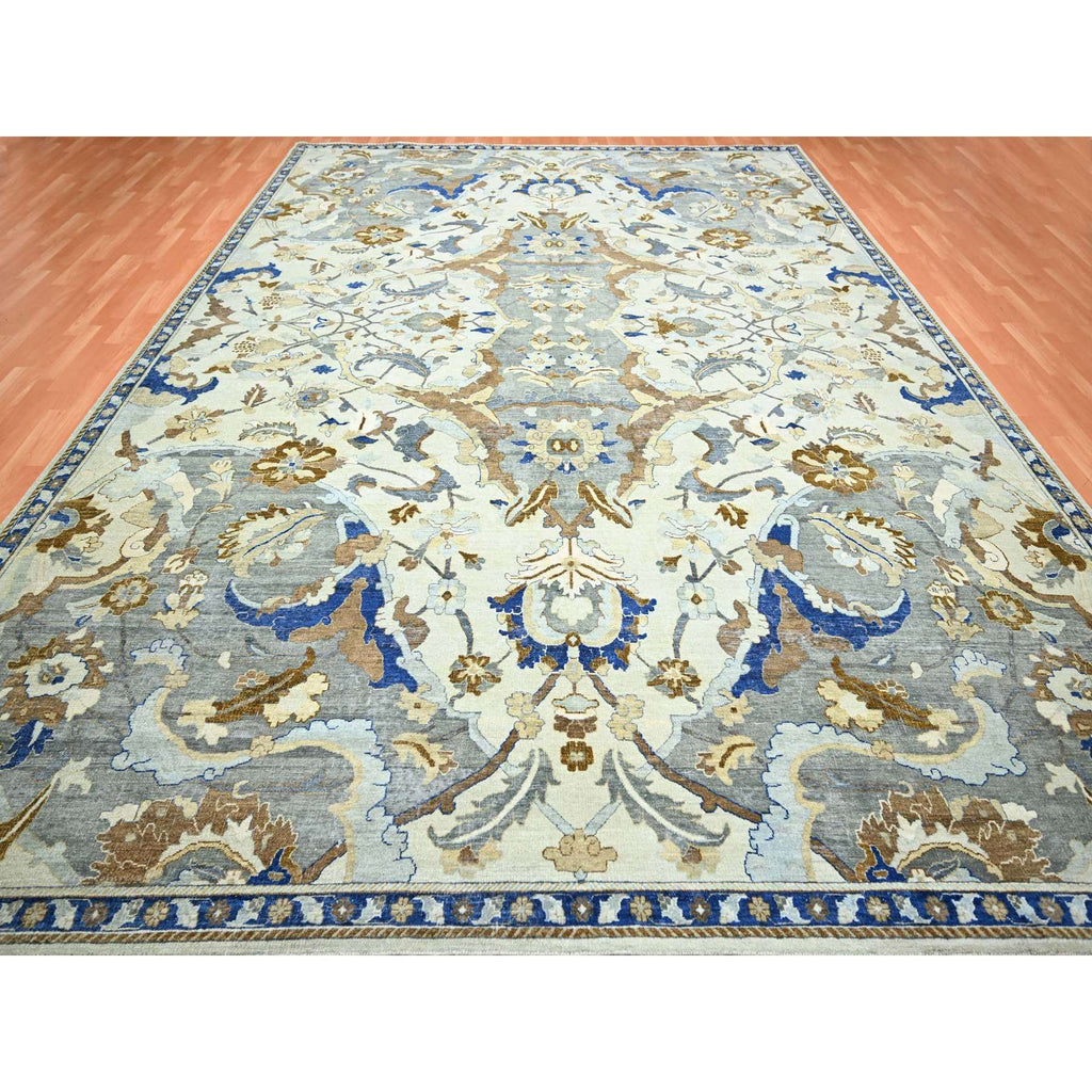 12'x15'5" Powder White, Polonaise Czartoryski With Persian Isphahan Inspired design, 100% Wool, Distinct Abrash, Hand Knotted, Zero Pile, Oversized, Oriental Rug FWR452844