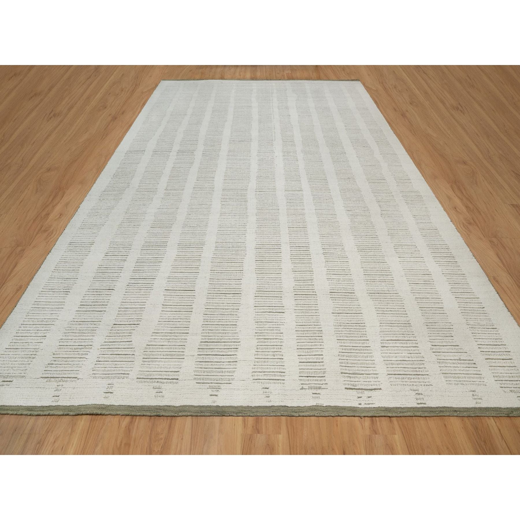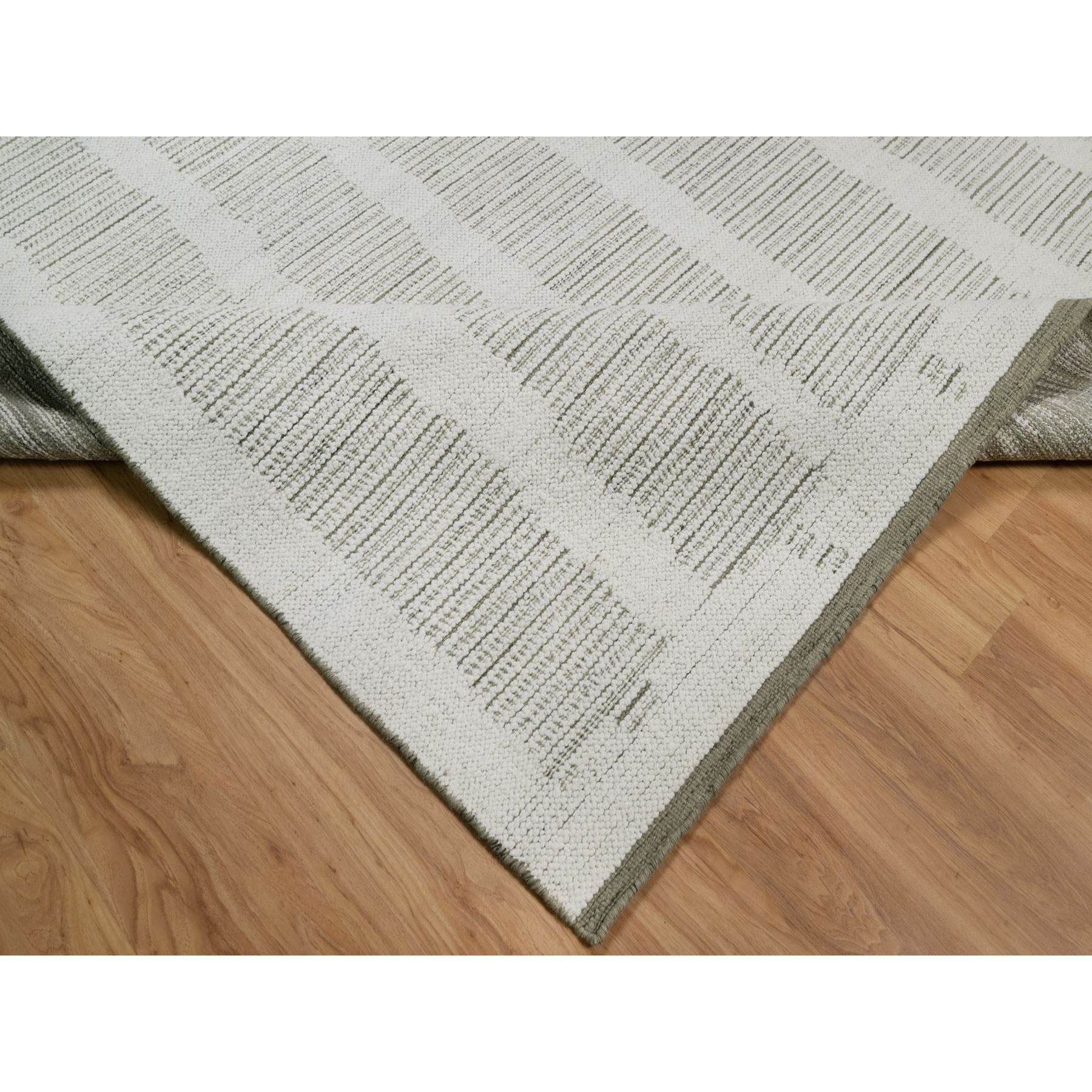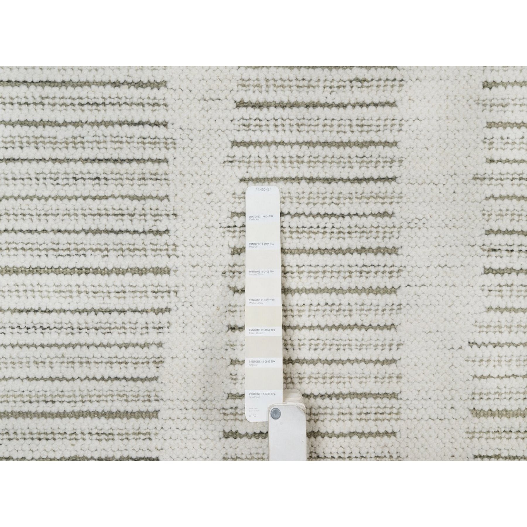 12'x15' Alabaster White, Hand Woven, Flat Weave With Textured Pile, Undyed Natural Wool, Xl, Oversized, Oriental Rug FWR550452