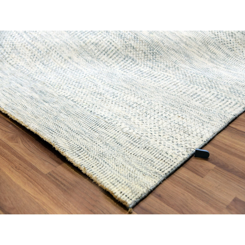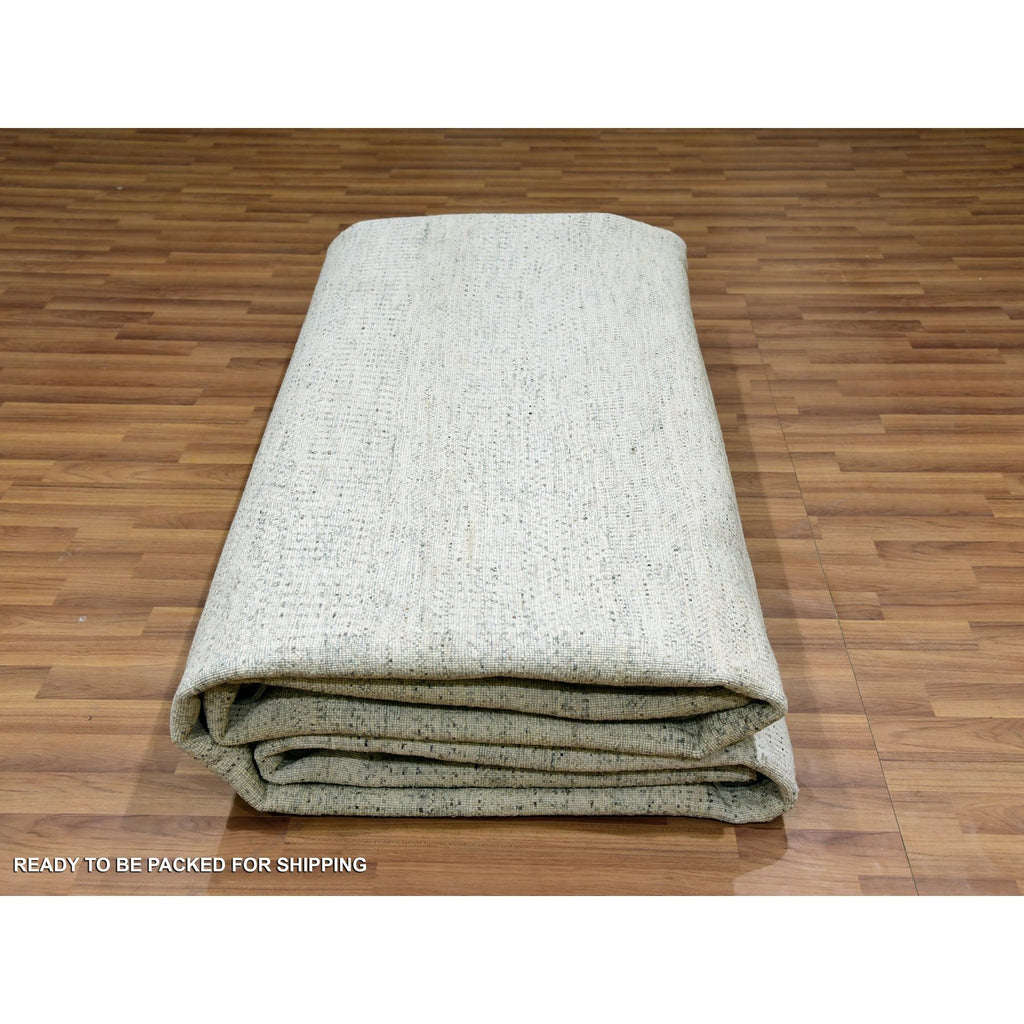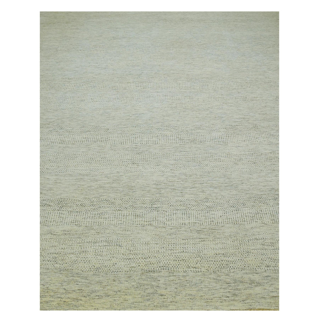 12'x15' Dove White, Hand Knotted 100% Wool, Tone On Tone, Modern Grass Design, Organic Sustainable Textile, Oversized Oriental Rug FWR479838
