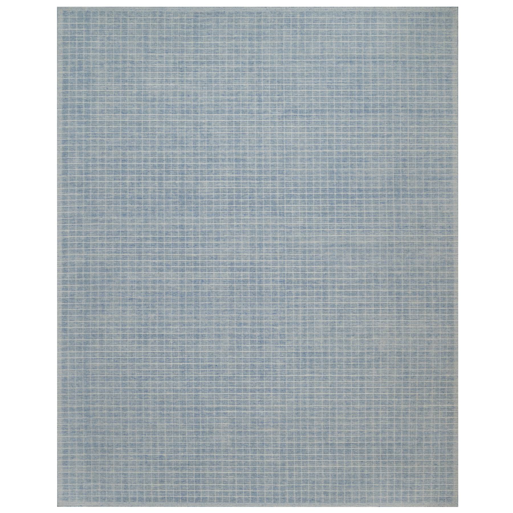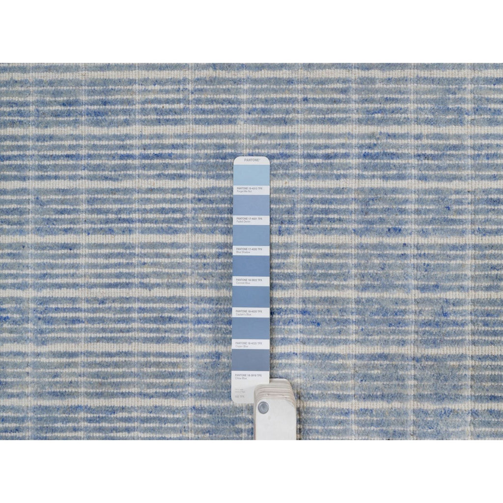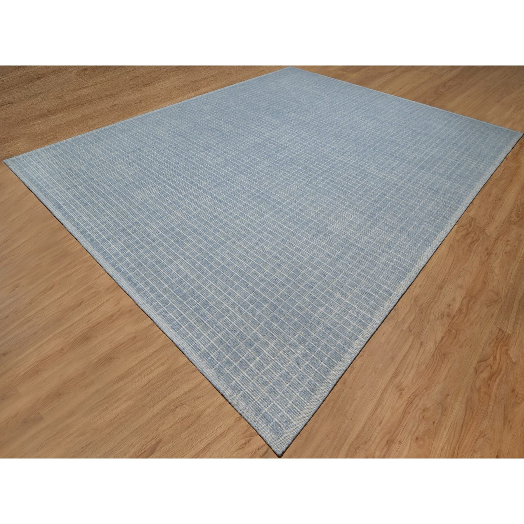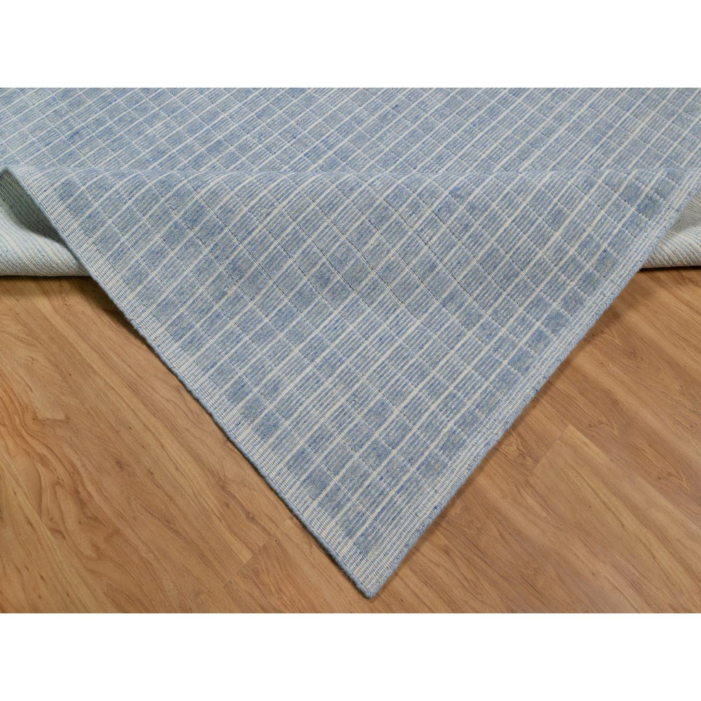 12'x15' Faded Denim Blue, Modern Plain Decor Box Design, Soft To Touch, Loomed Knotted, Pure Wool, Xl, Oversized, Oriental Rug FWR550668