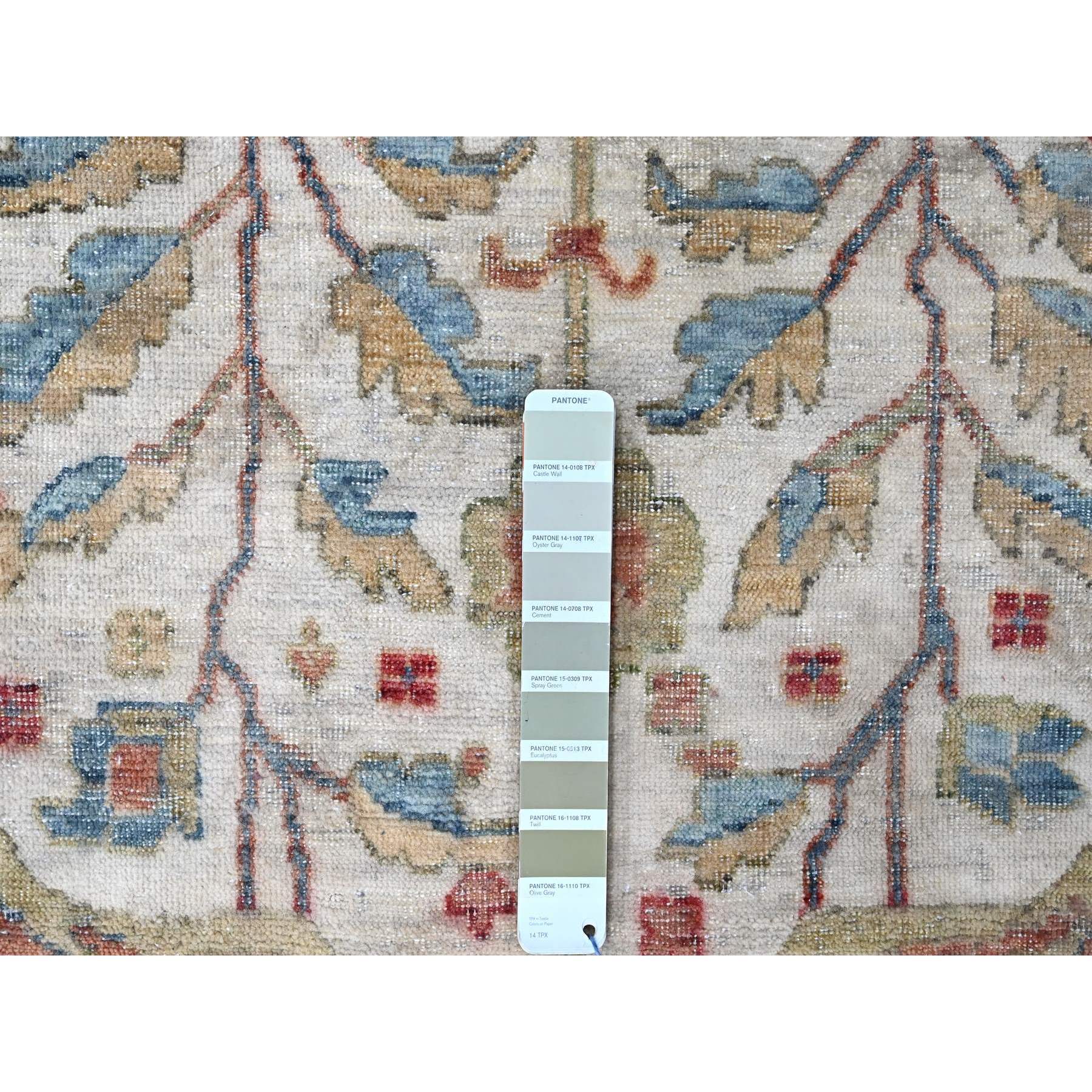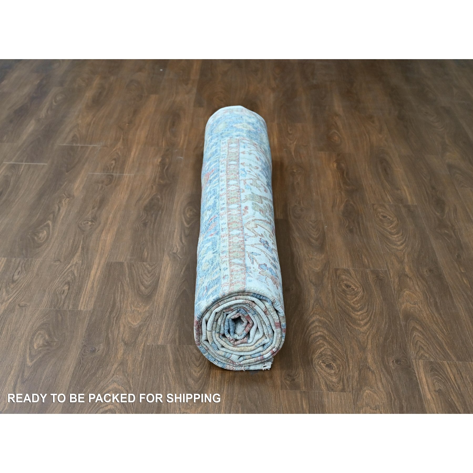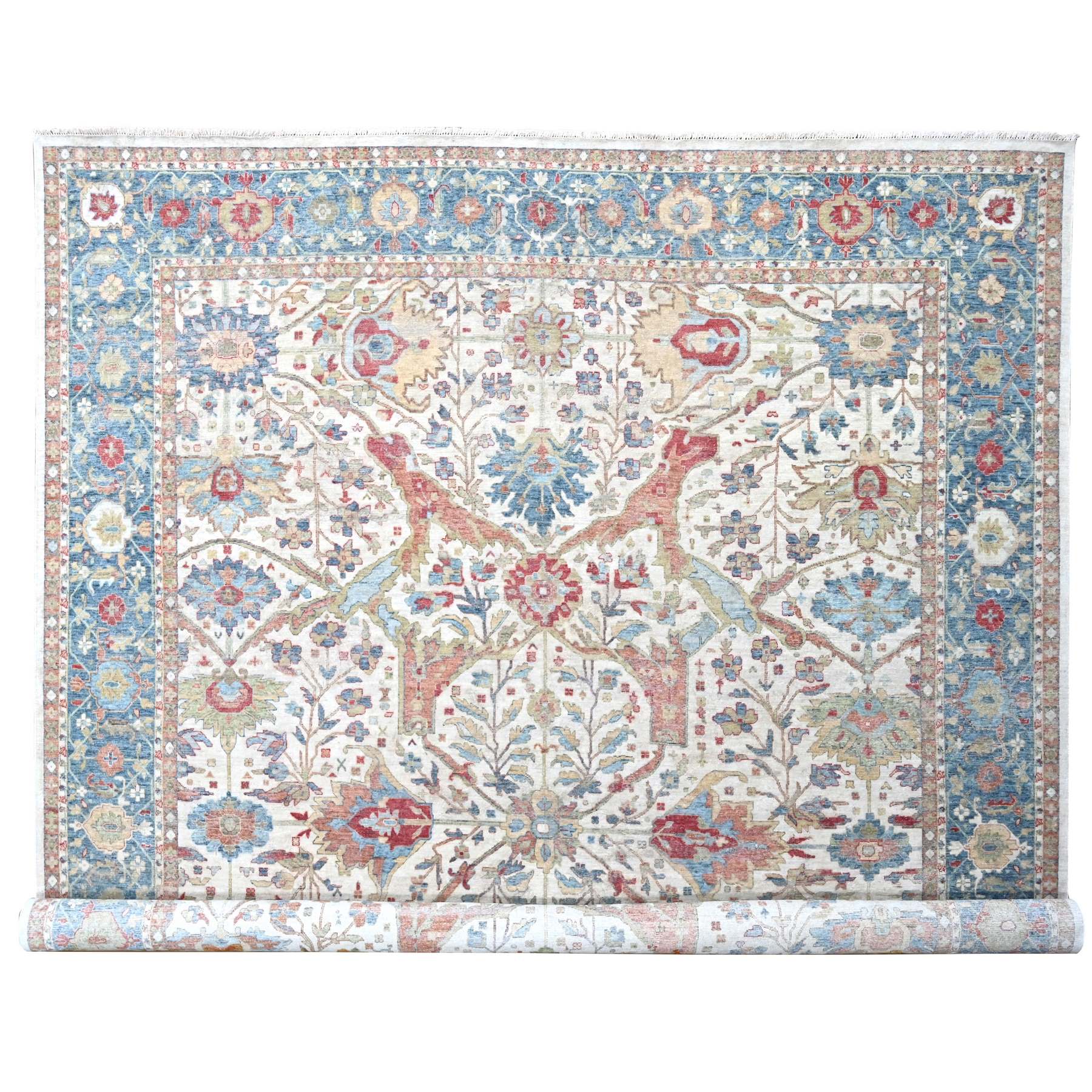 12'x15' Pearl White, 100% Wool, Hand Knotted, Antiqued Persian With Ziegler Mahal Design, Distressed, Oxidized, Zero Pile, Shaved Low, Oversized, Oriental Rug FWR61332