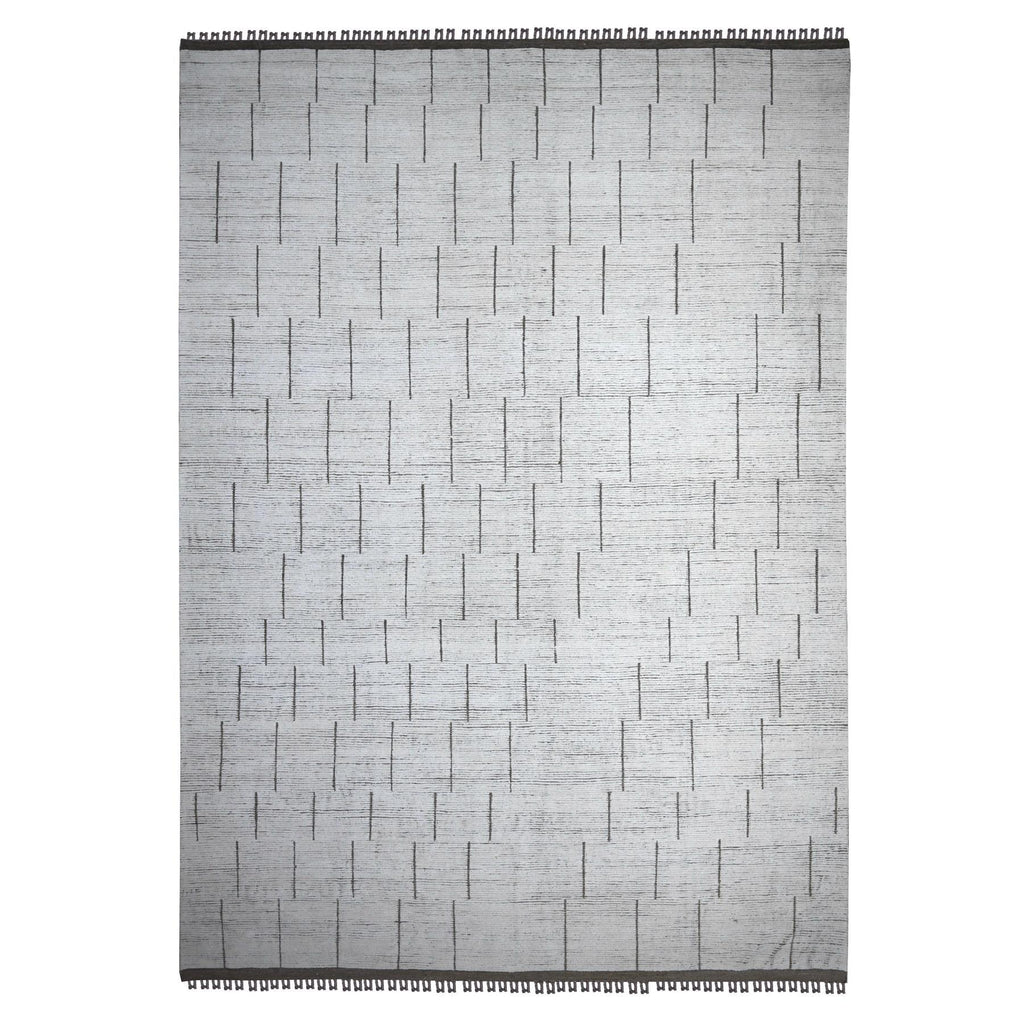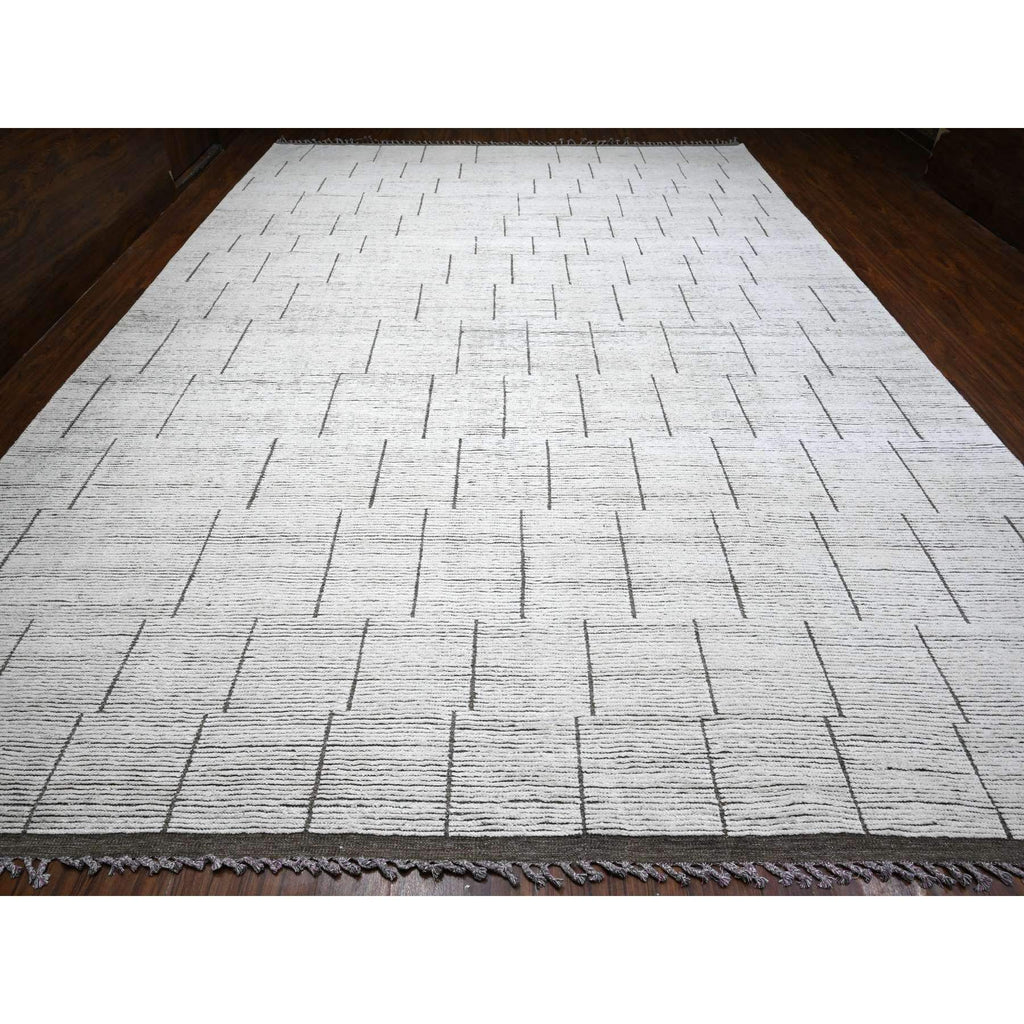 12'x16'2" Silky White, Moroccan Weave Chiadma Influenced Geometric Design, Hand Knotted, All Wool, Oversized Oriental Rug FWR535158