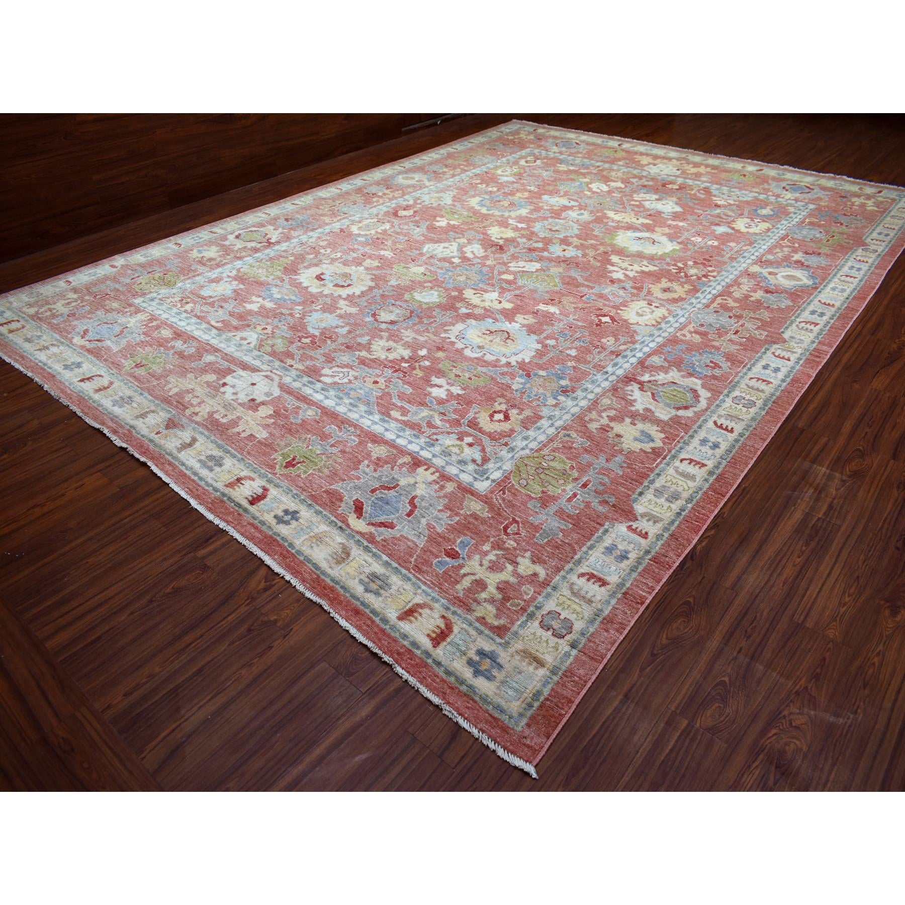 12'x16' Coral Red, Afghan Angora Ushak With All Over Motifs, Hand Knotted, Pure Wool Oversized Oriental Rug FWR424506