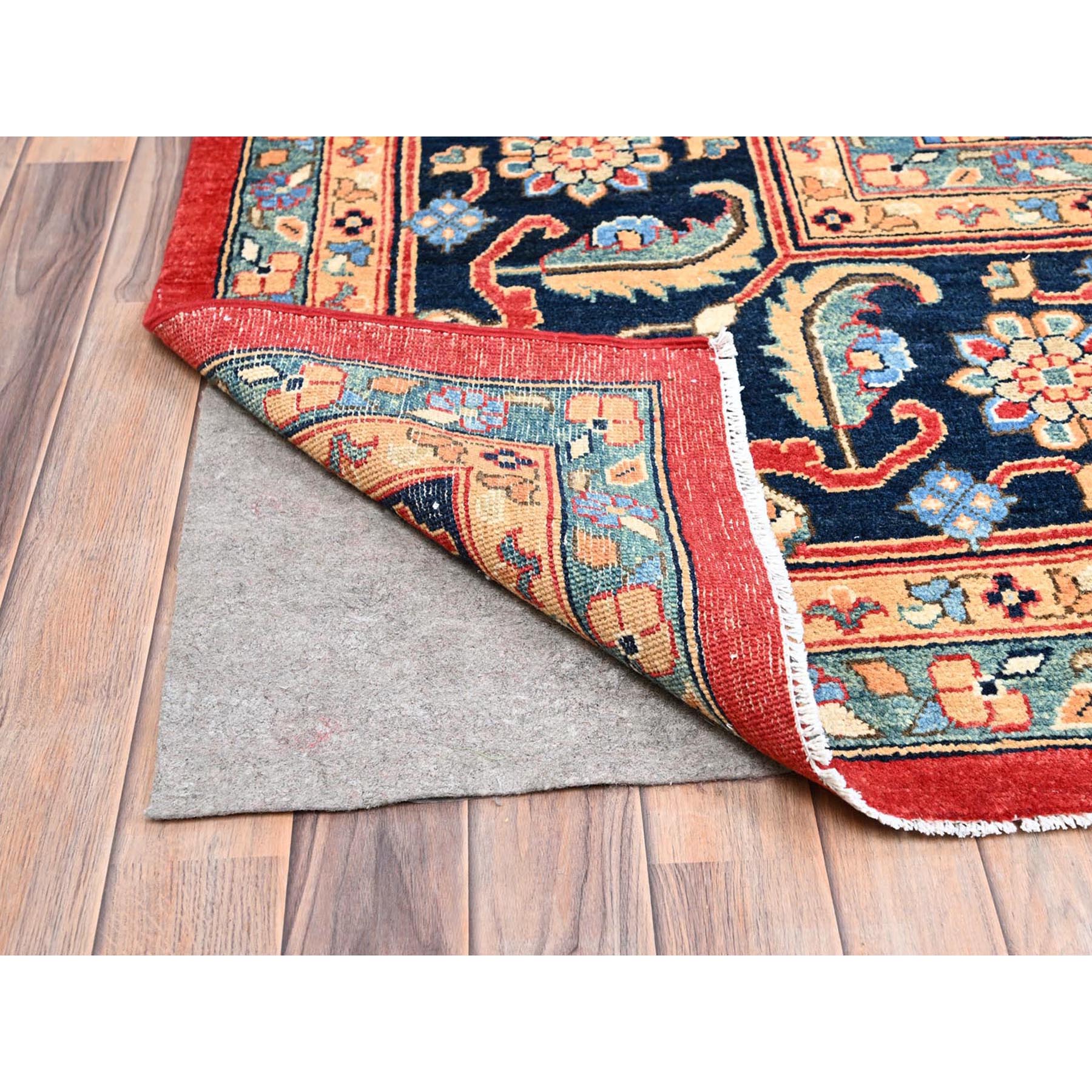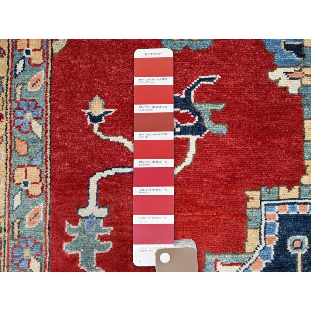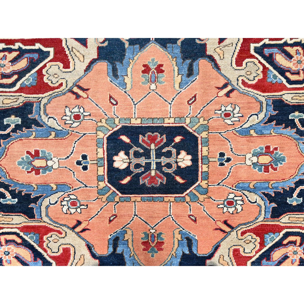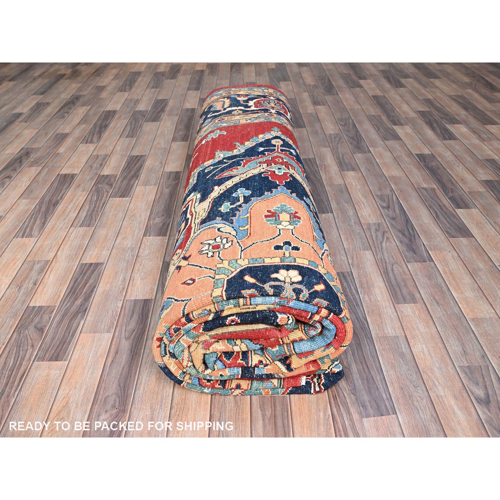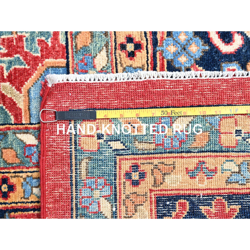 12'x17'2" Venetian Red, Delft Blue Border, Afghan Peshawar Serapi And Heriz Tribal Design, Hand Knotted, Soft Wool, Vegetable Dyes, Densely Woven Oriental Oversized Rug FWR521754