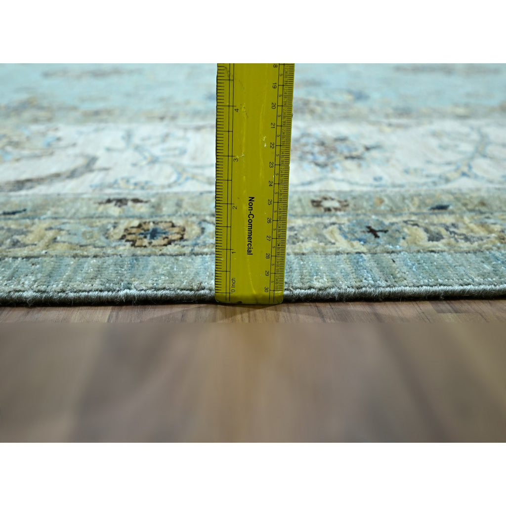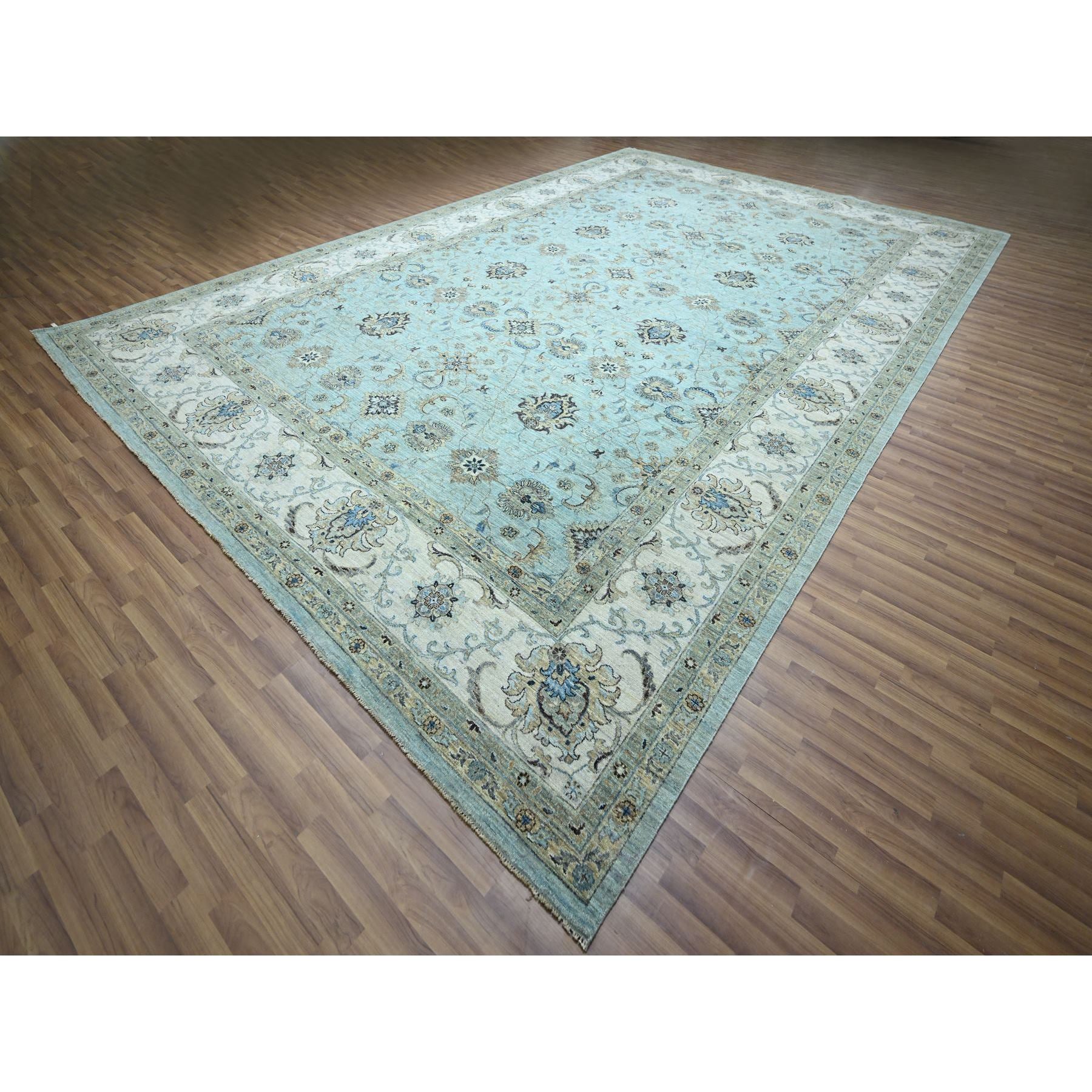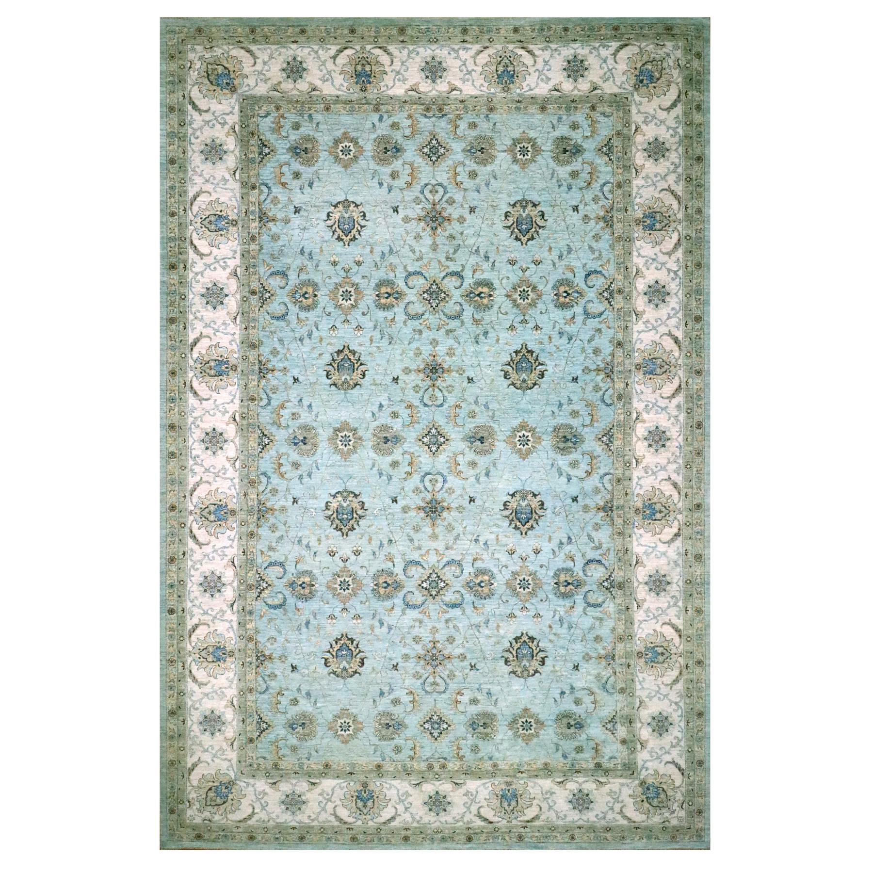 12'x18'1" Crystal Blue, Agra, Shah Abbas Flower Vines Design, Natural Dyes, Hand Knotted, Luxurious Wool, Denser Weave, Oversized, Oriental Rug FWR456636