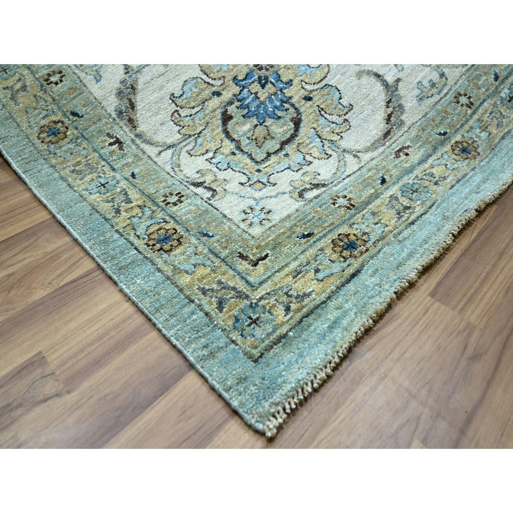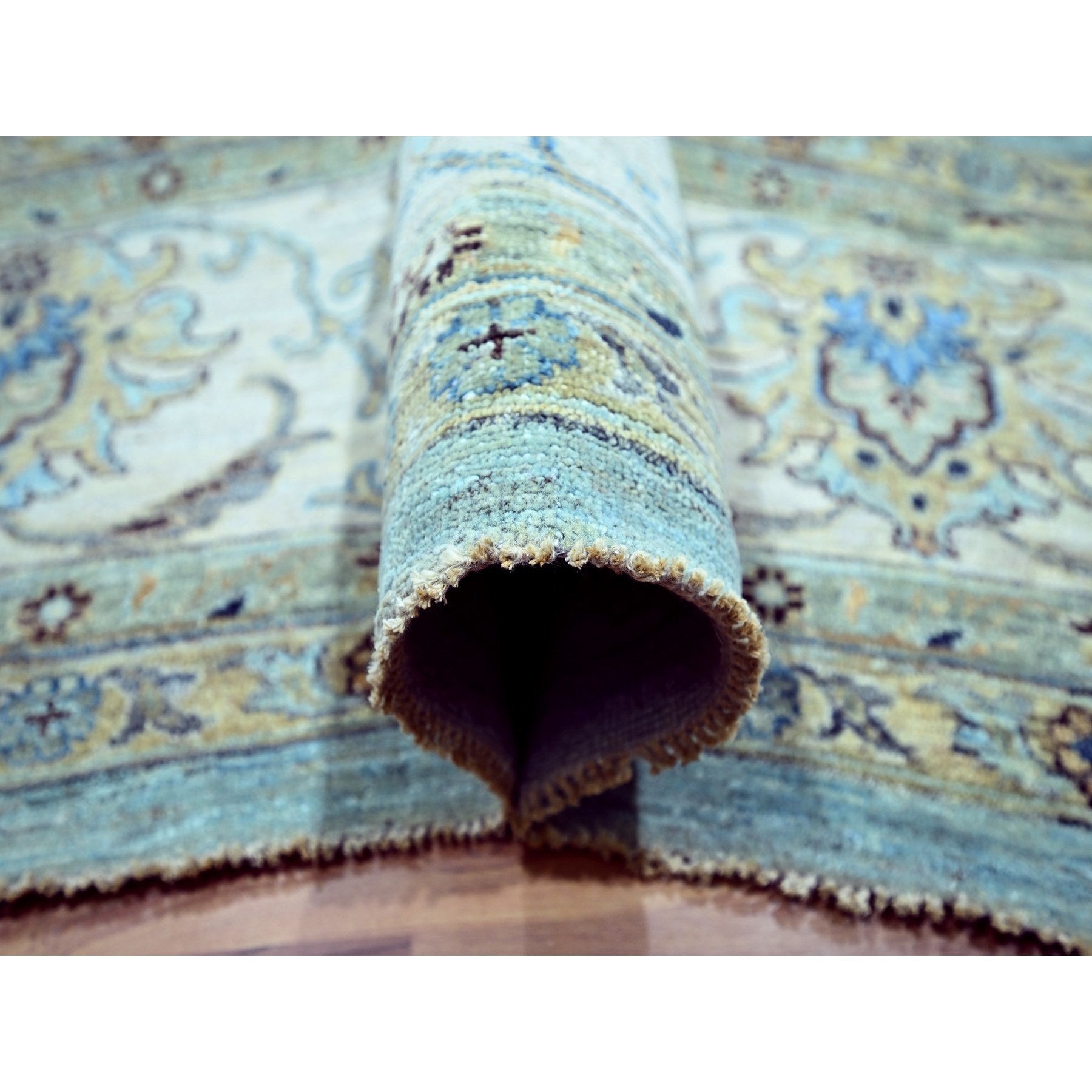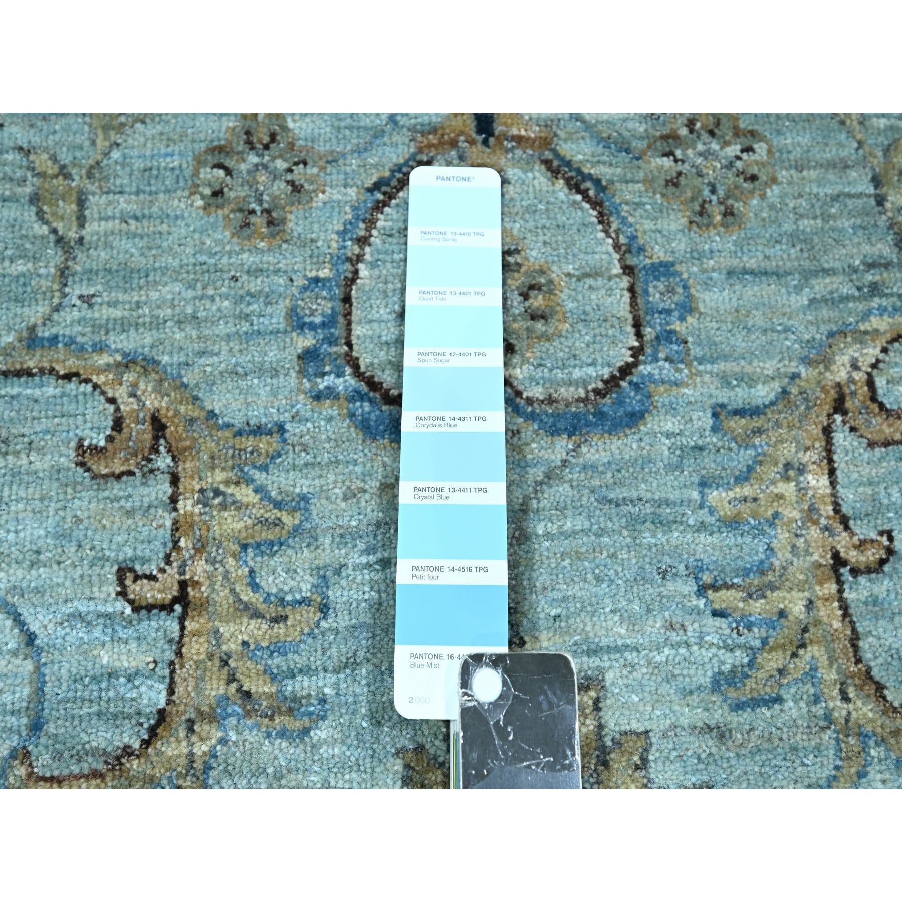 12'x18'1" Crystal Blue, Agra, Shah Abbas Flower Vines Design, Natural Dyes, Hand Knotted, Luxurious Wool, Denser Weave, Oversized, Oriental Rug FWR456636