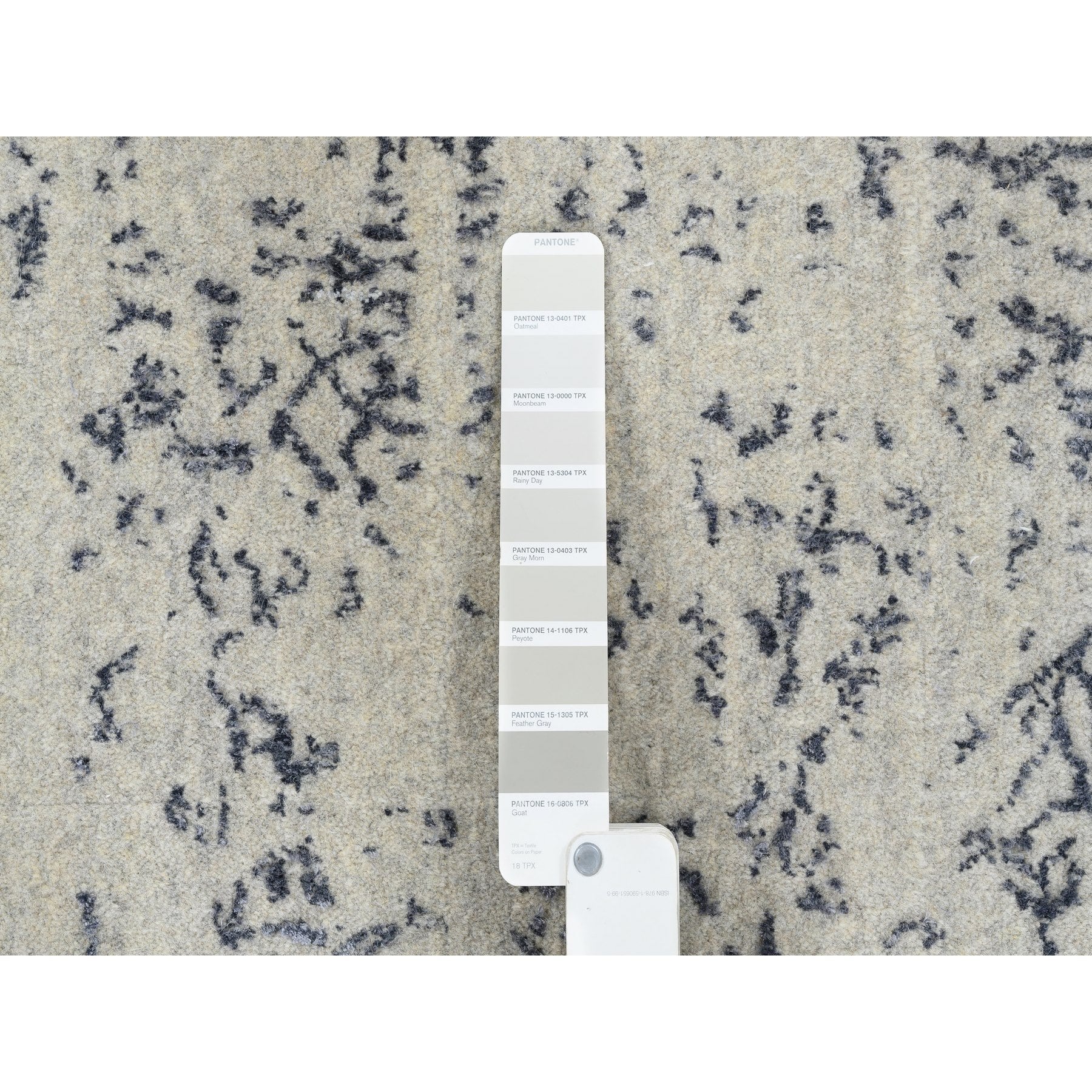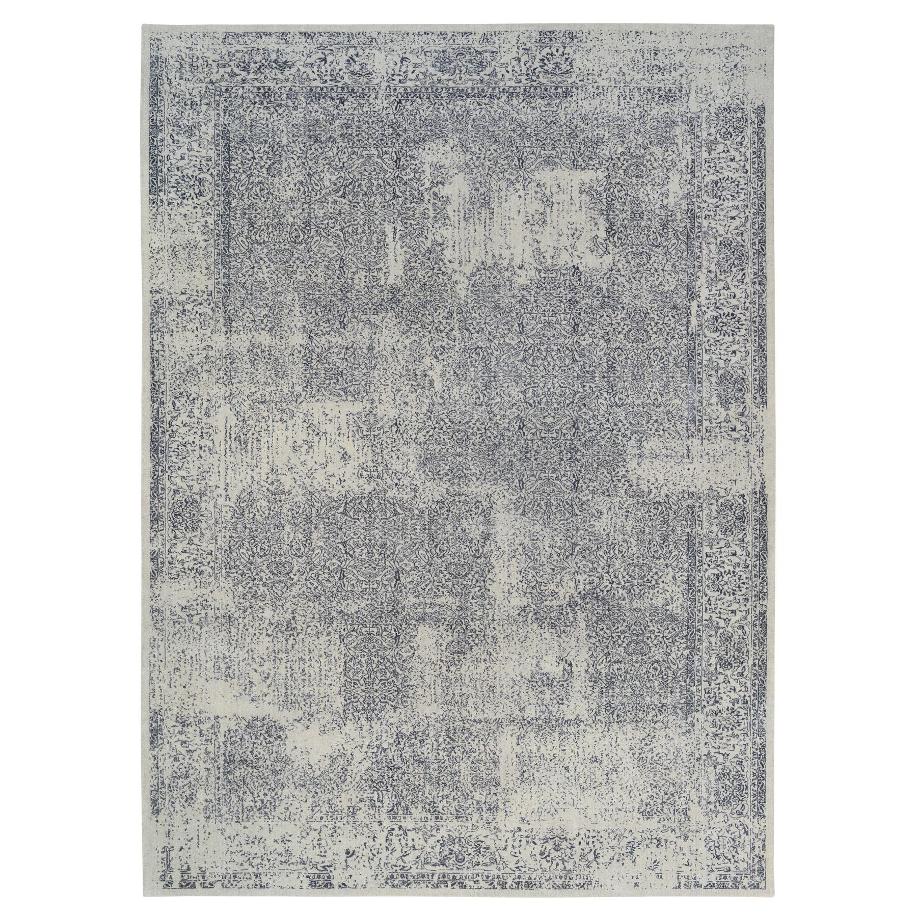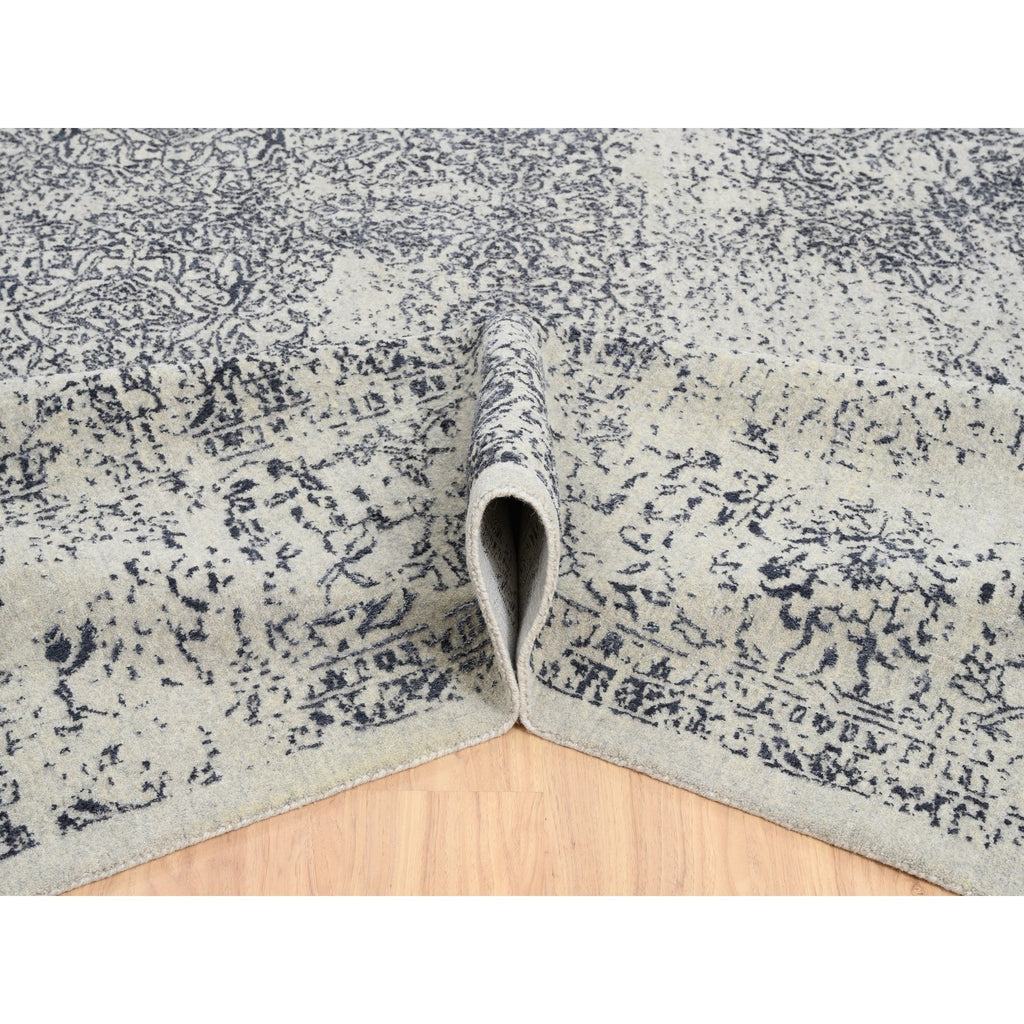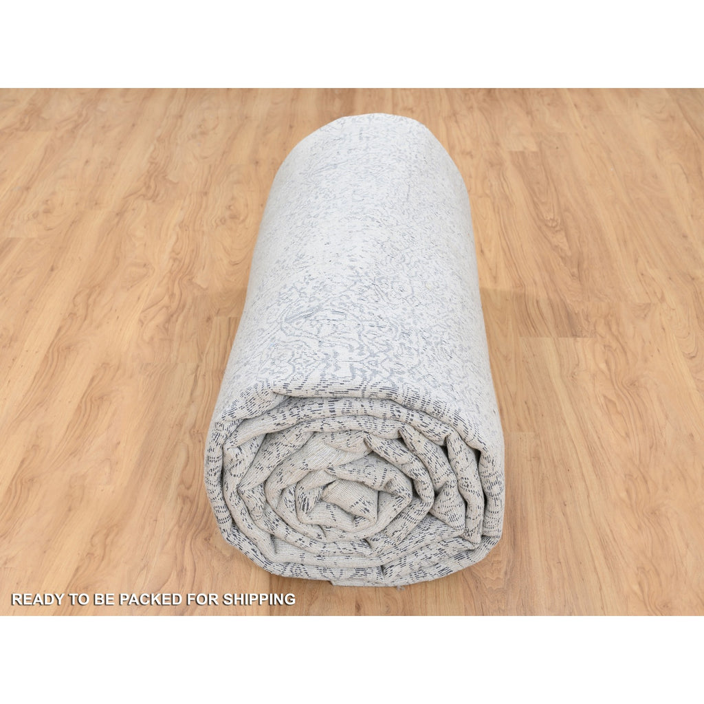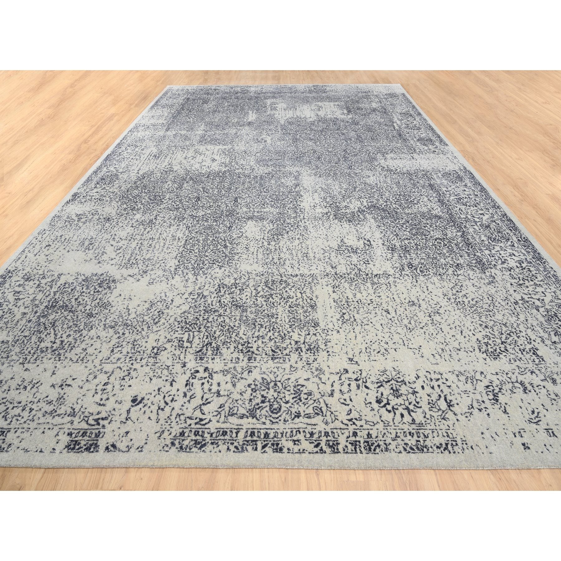 12'x18'2" Wool And Plant Based Silk Hand Loomed Light Gray Fine Jacquard With Erased Design Oriental Oversized Rug FWR379830