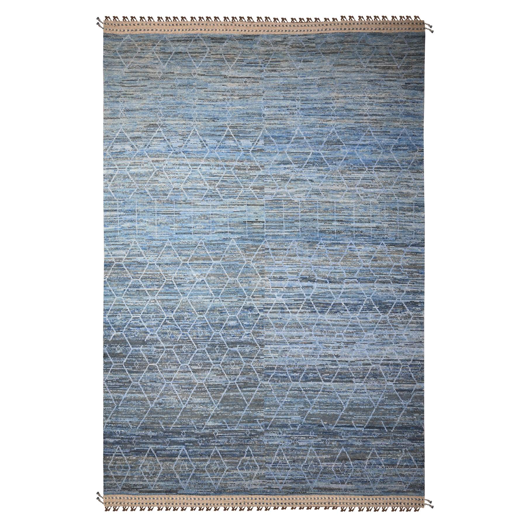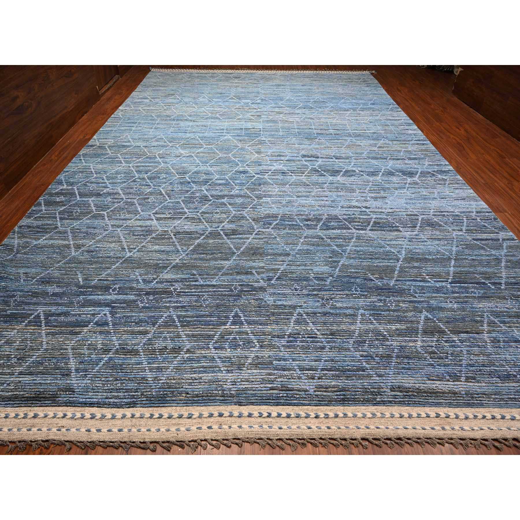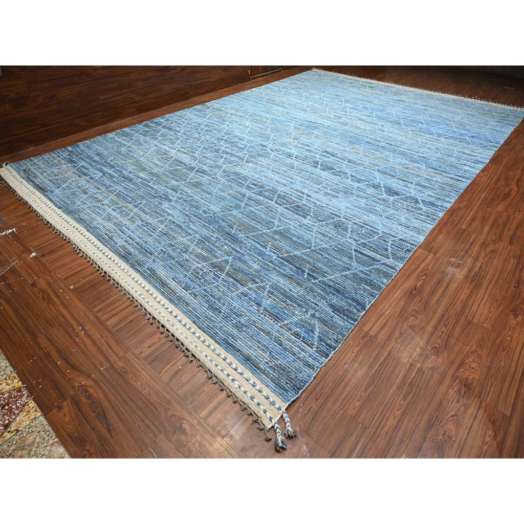 12'x18'5" Queen Blue, Zemmour Moroccan Weave Inspired Design, Soft And Shiny Wool Hand Knotted, Vegetable Dyes, Wool On Wool, Oversized Oriental Rug FWR535020
