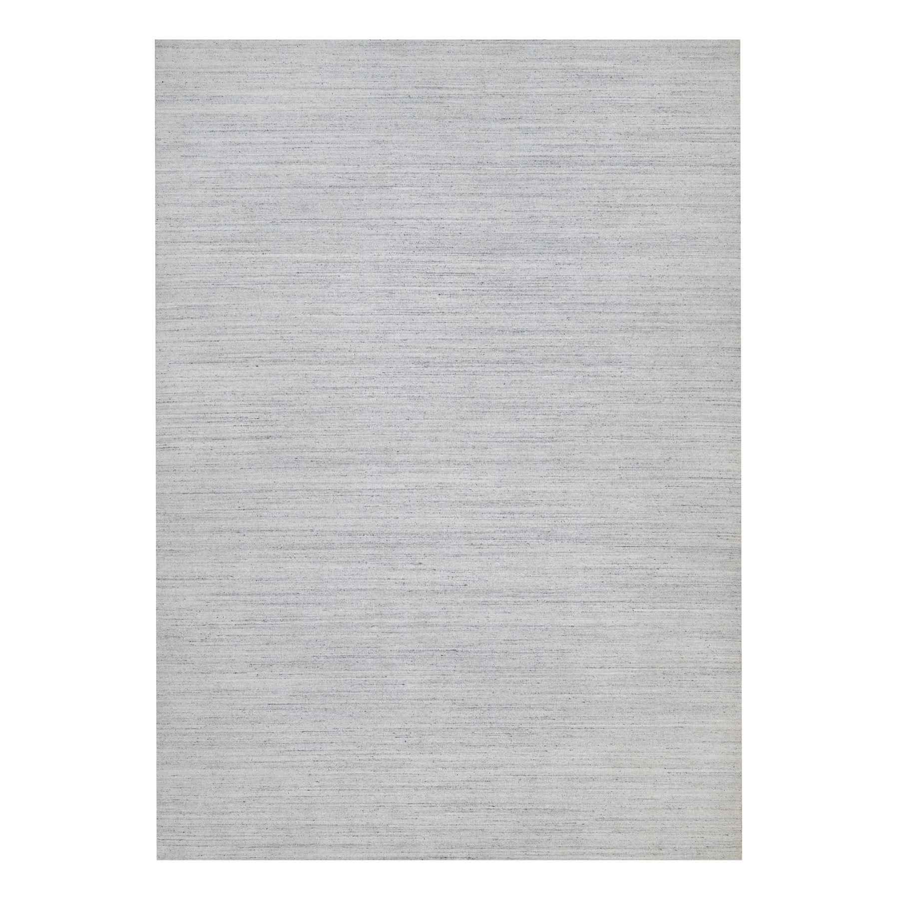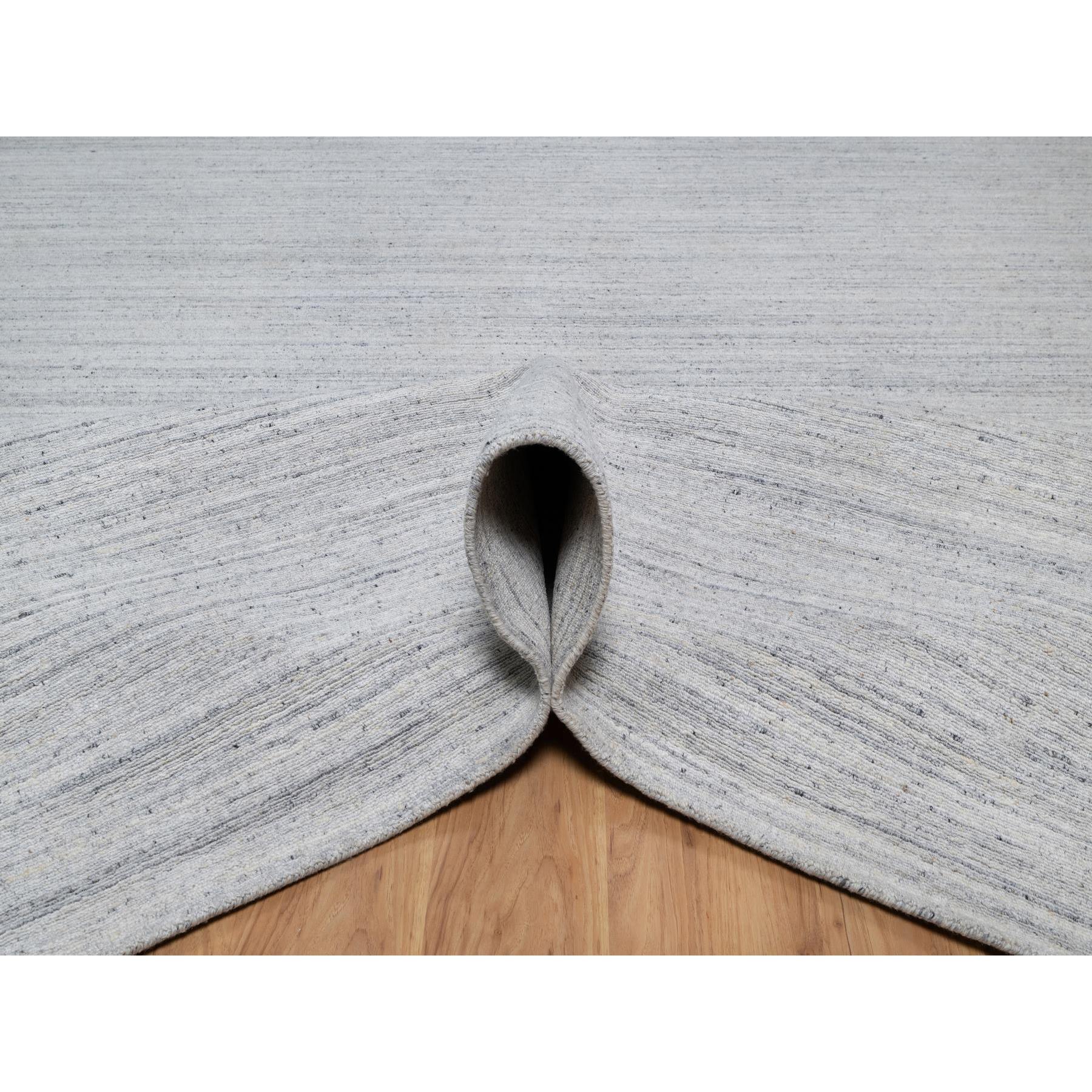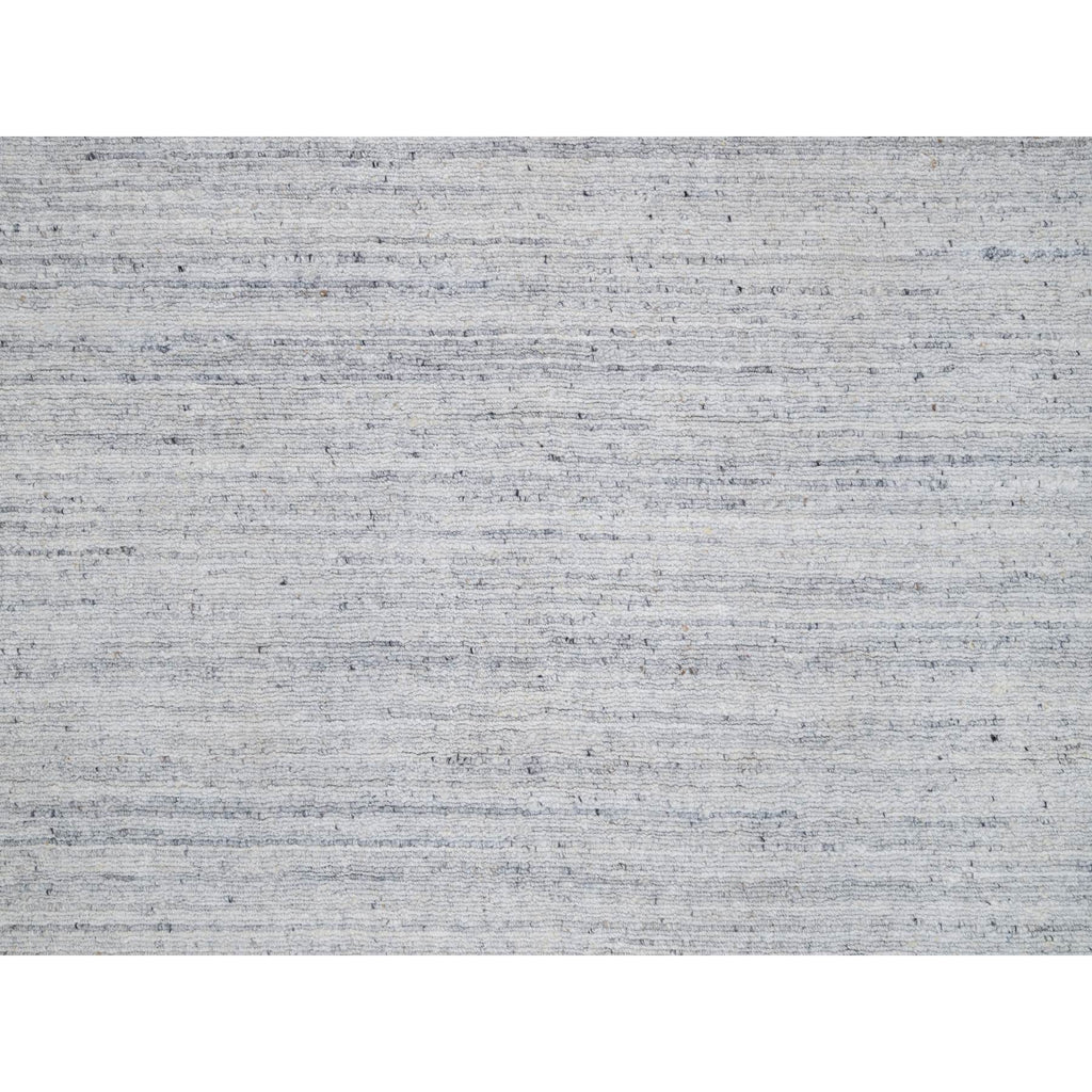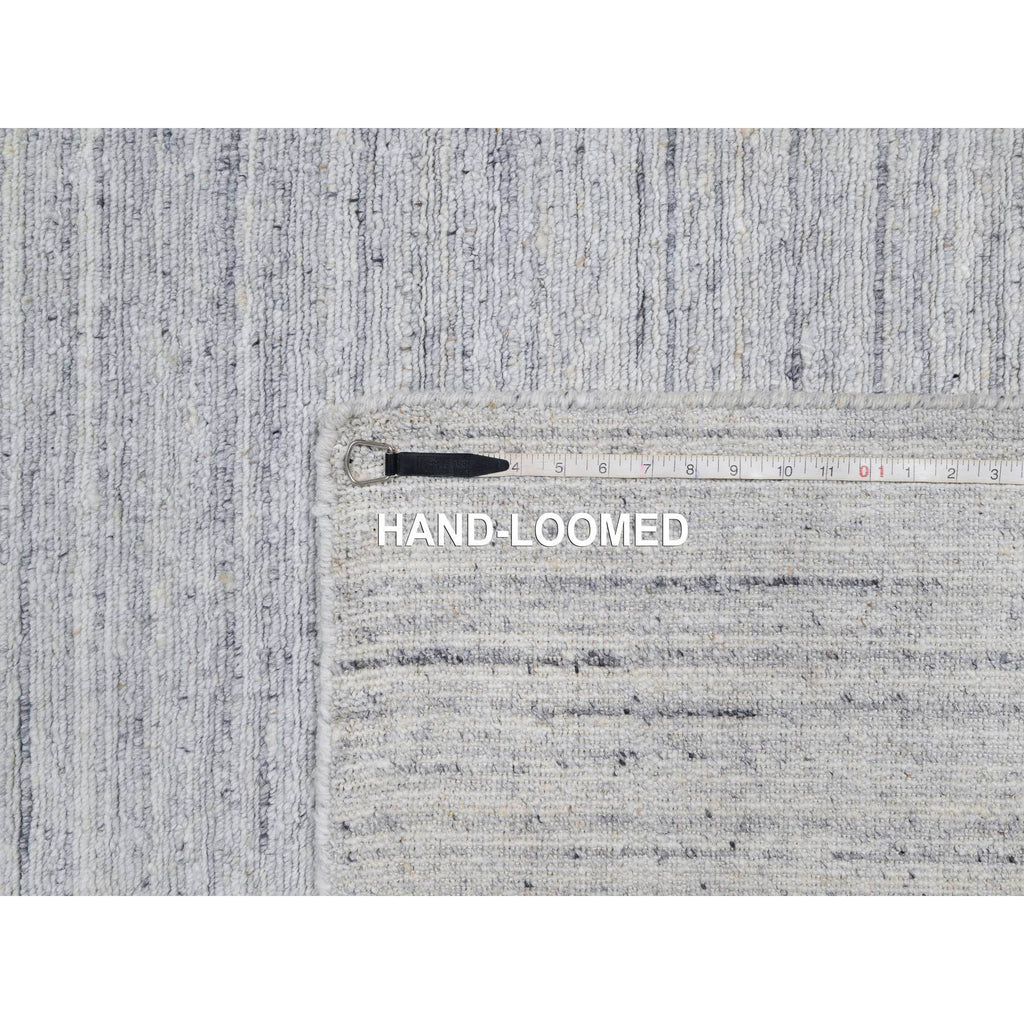 12'x18' Lily White, Plain Modern Striae Design, Hand Loomed, Soft To The Touch, Natural Wool, Oversized, Oriental Rug FWR547158