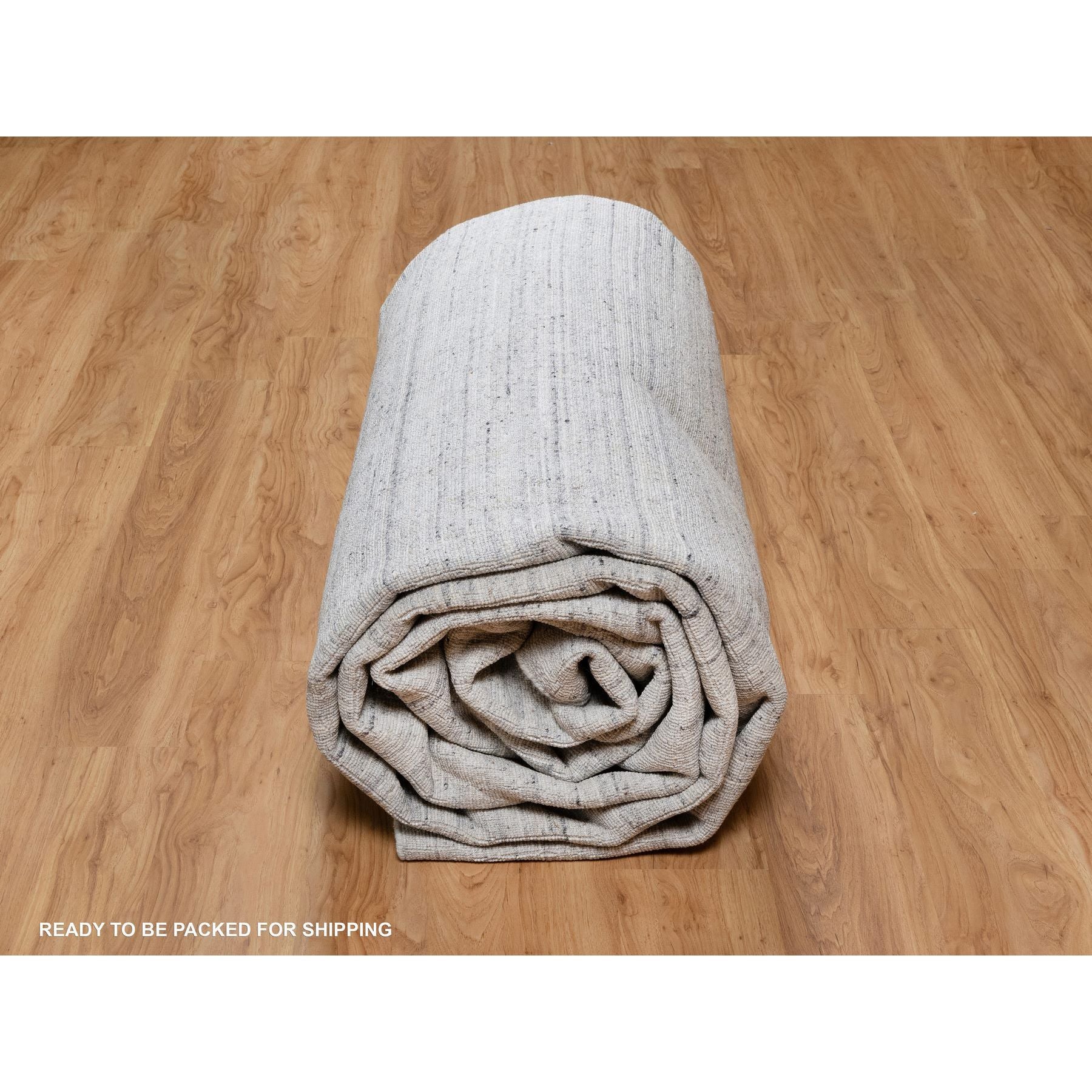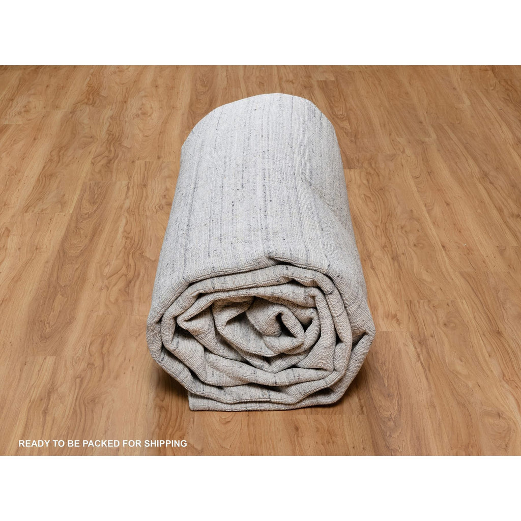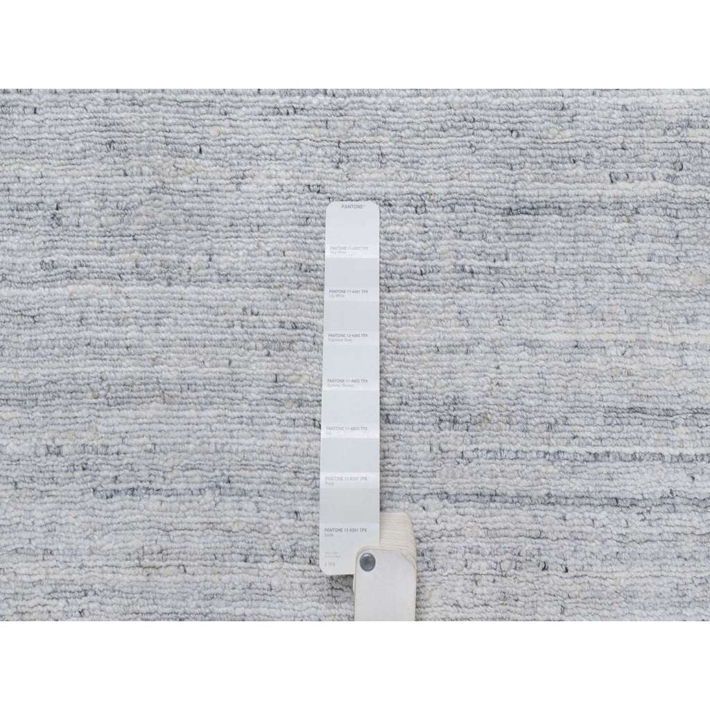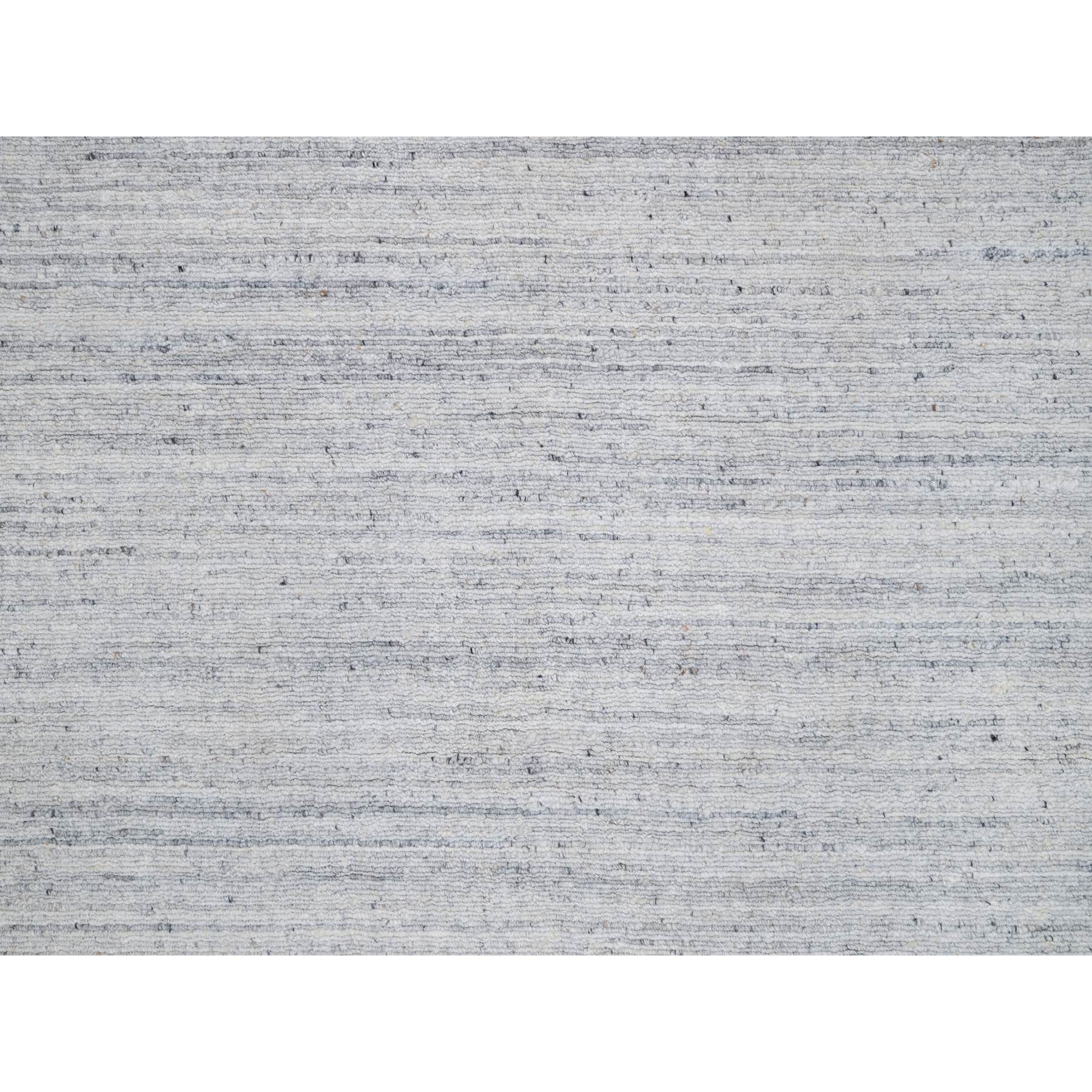 12'x18' Lily White, Plain Modern Striae Design, Hand Loomed, Soft To The Touch, Natural Wool, Oversized, Oriental Rug FWR547158