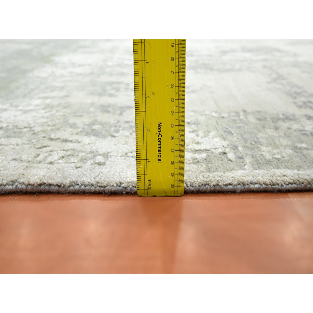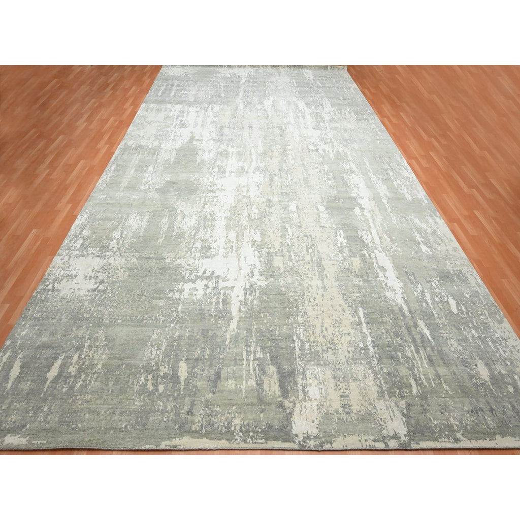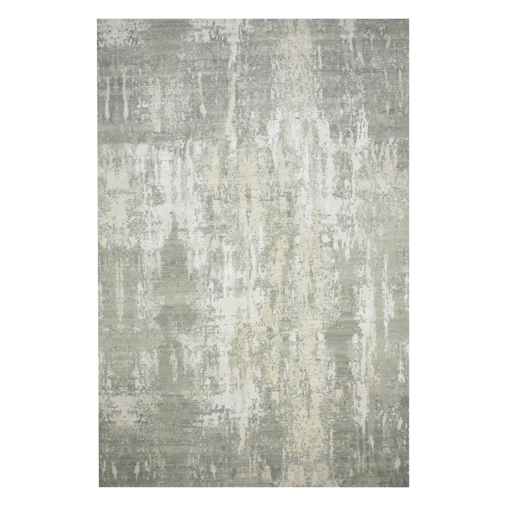 12'x18' Pastel Gray, Modern Abstract Design With Soft Colors, Wool And Pure Silk, Hand Knotted, Xl, Oversized, Oriental Rug FWR454038