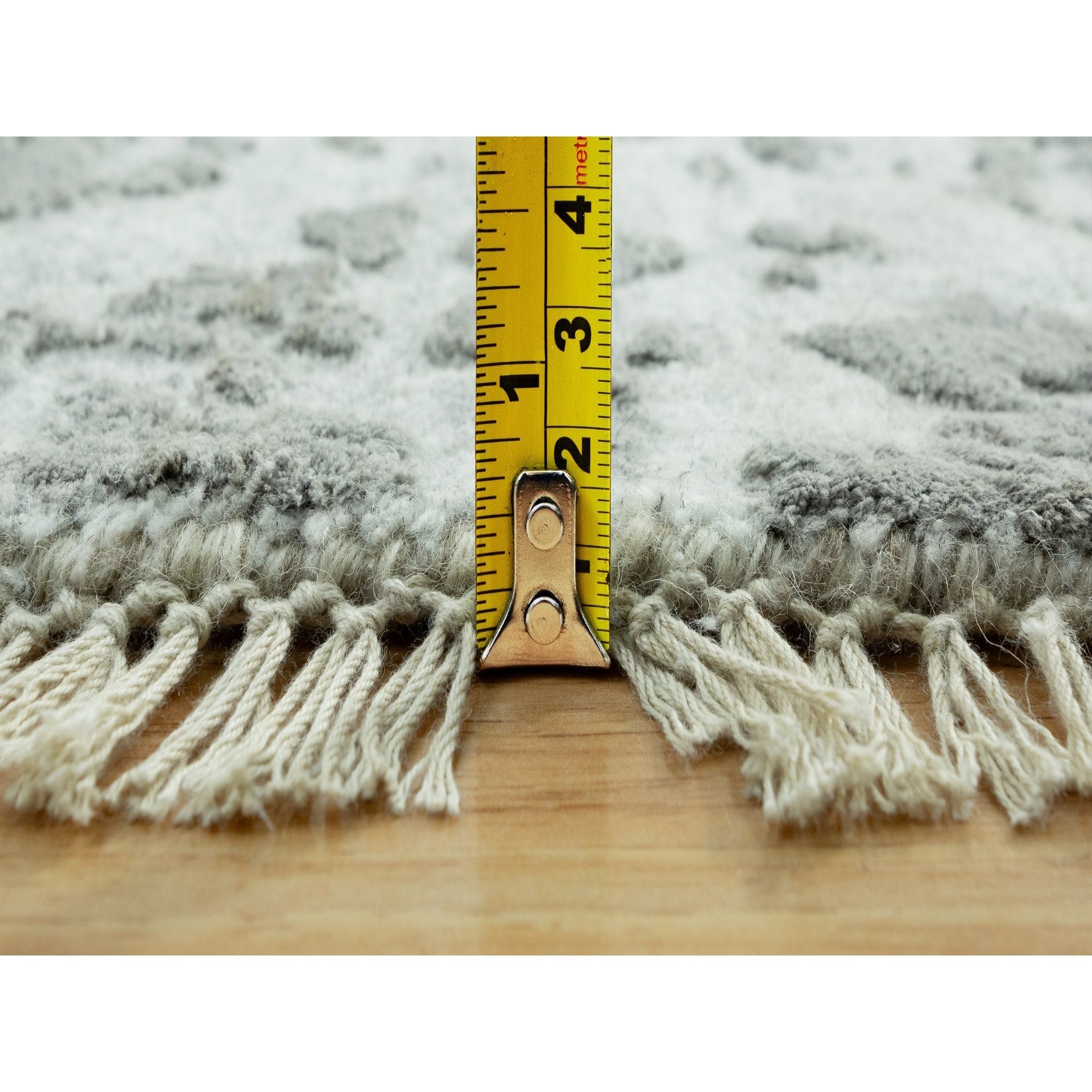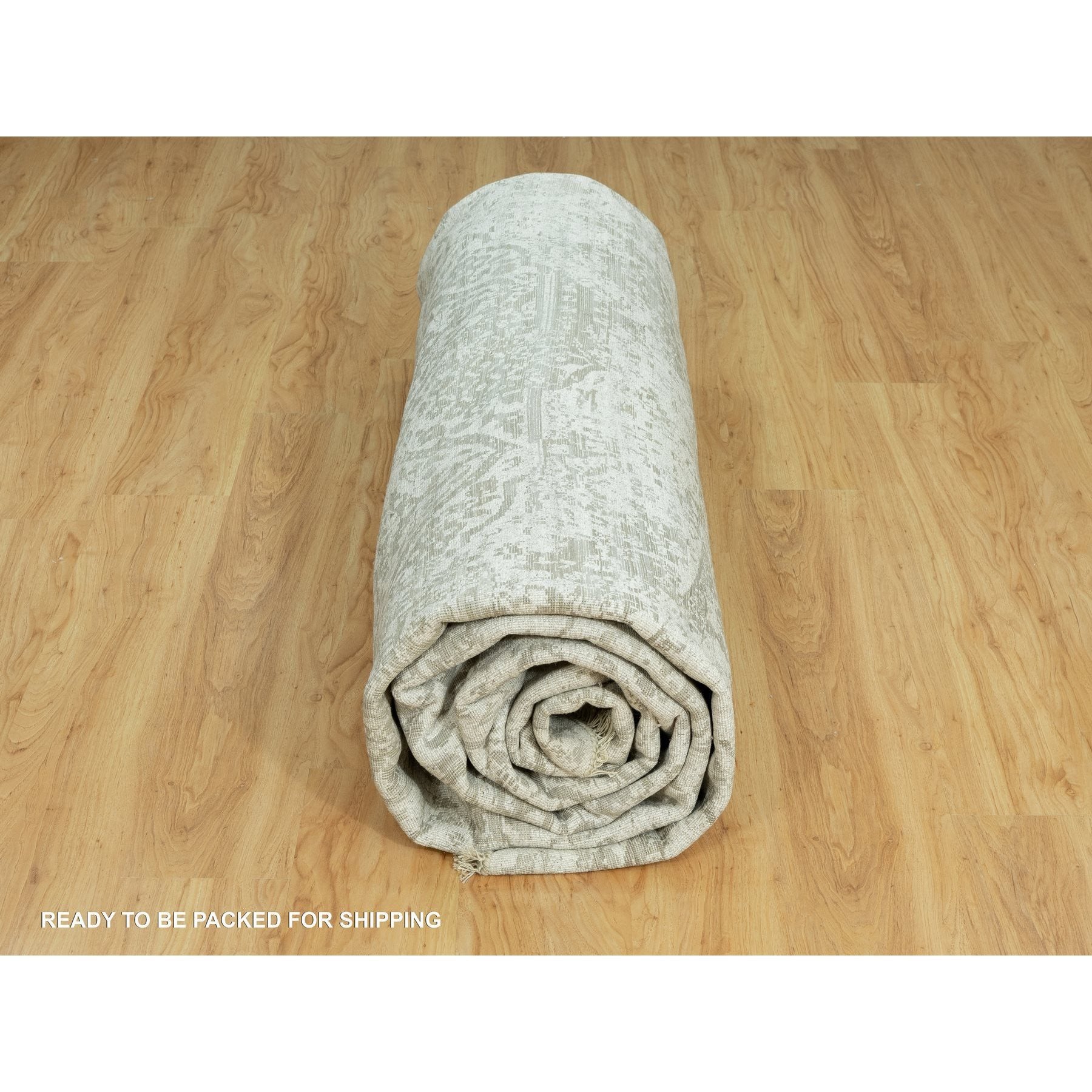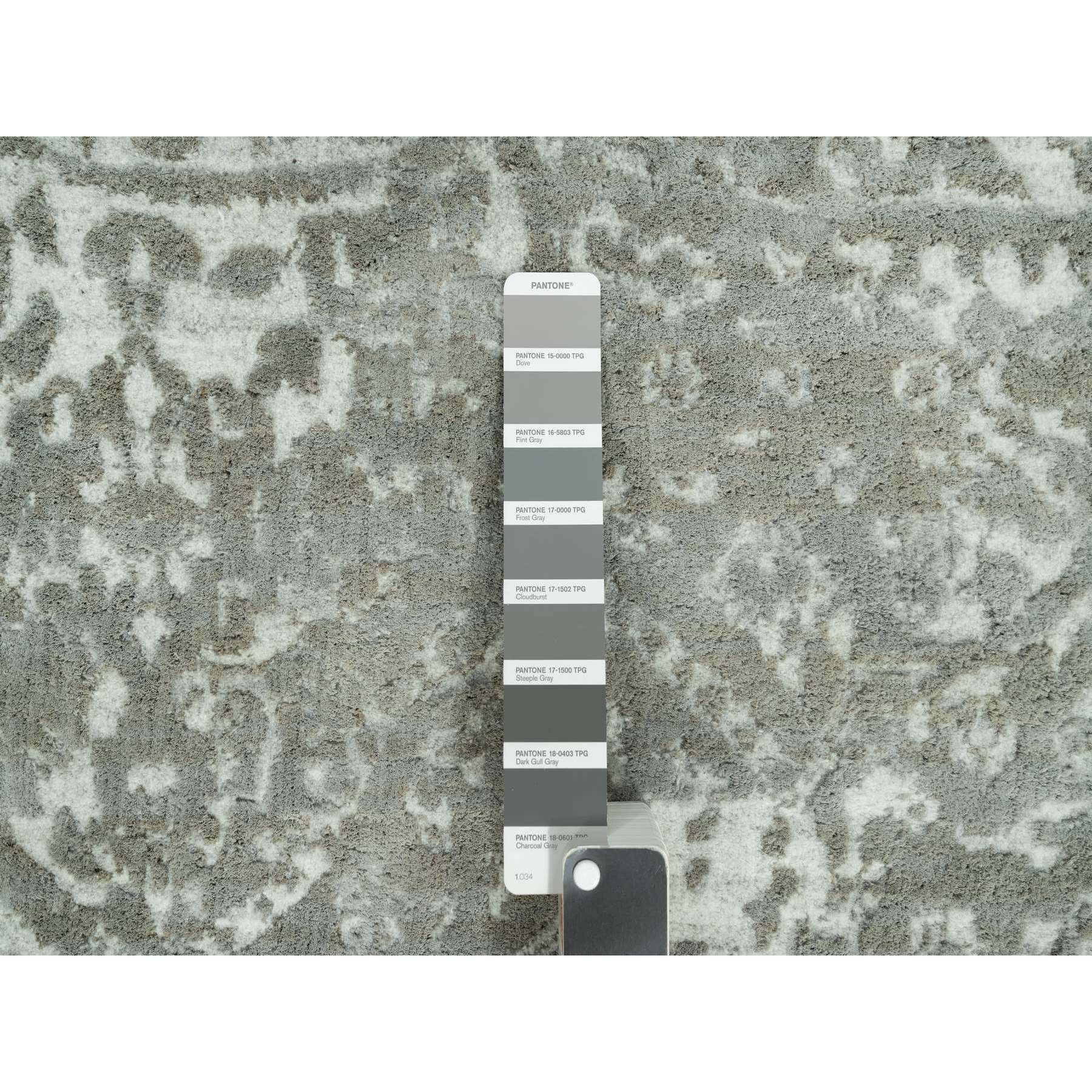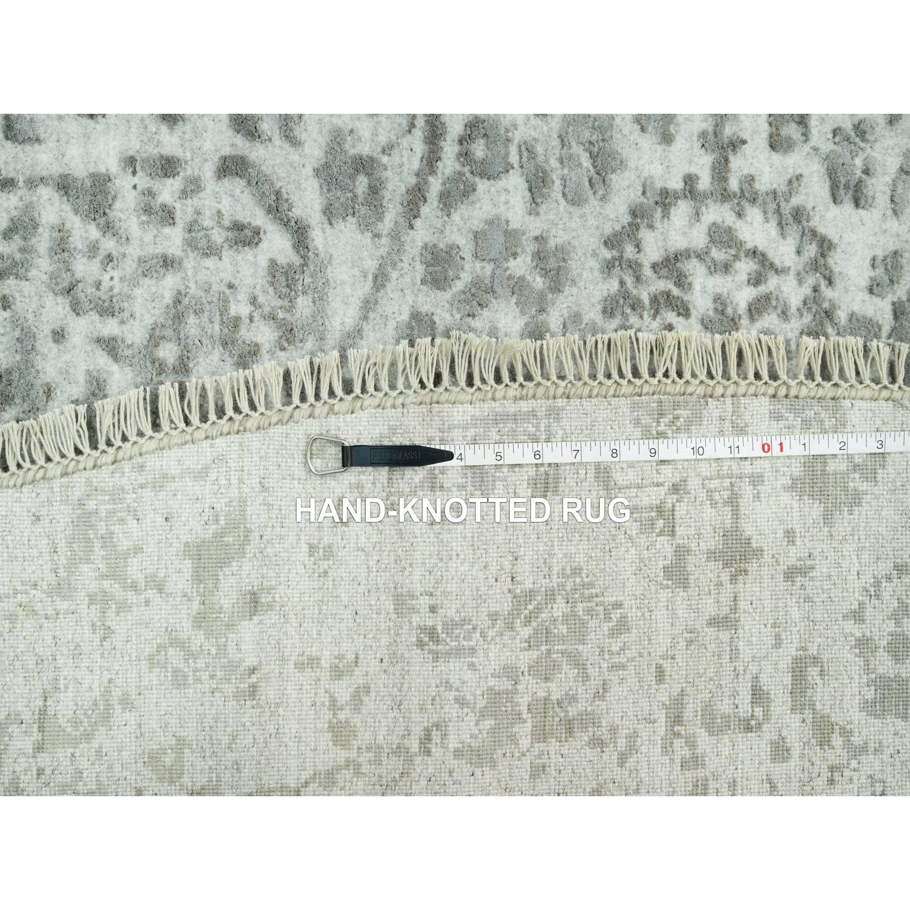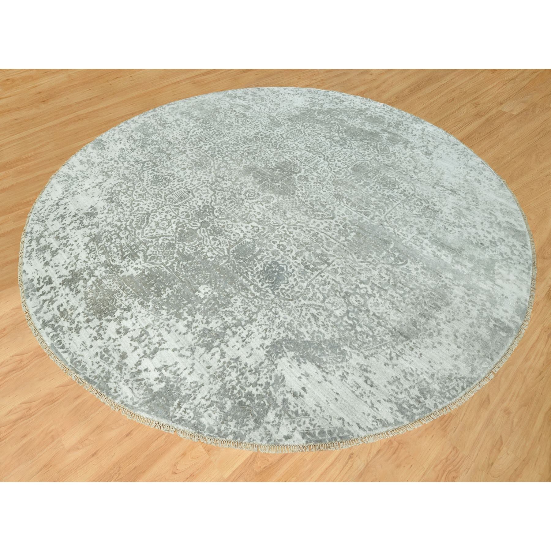 13'10"x13'10" Pale Smoke Gray, Persian Design, Soft To Touch, Denser Weave, Hand Knotted, Wool And Silk, Round Oriental Rug FWR542898