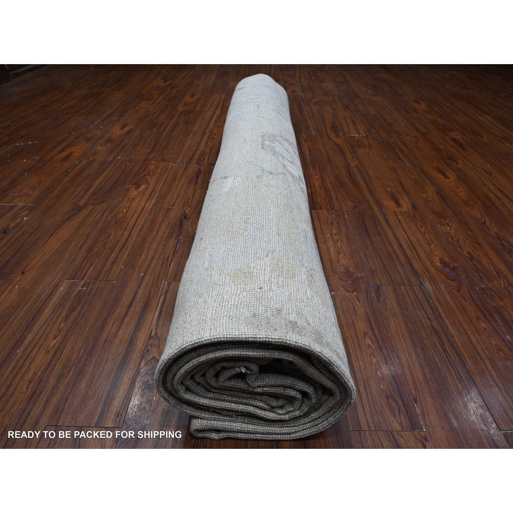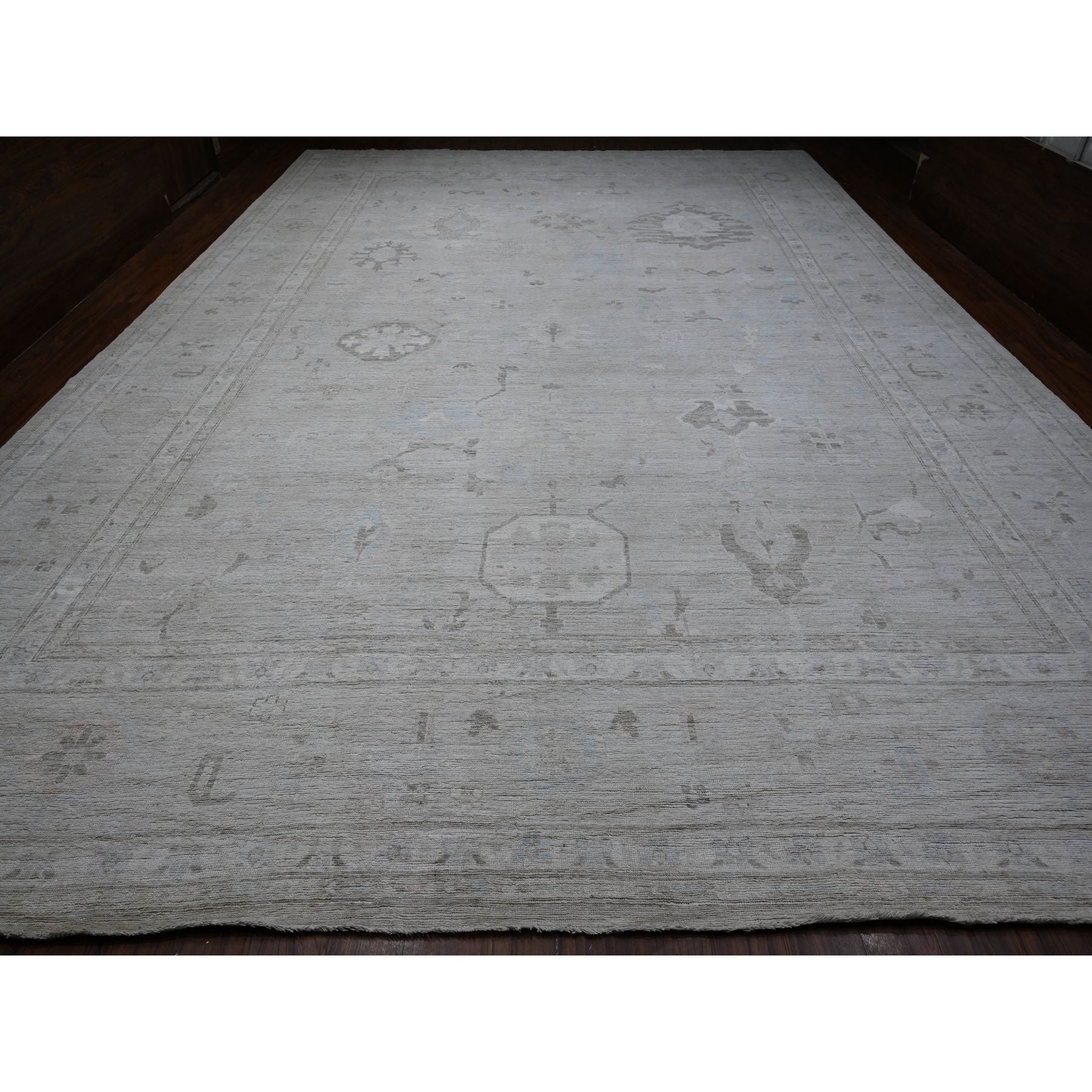 13'10"x19'5" Cloud Gray, Wool Foundation, Vegetable Dyes, Hand Knotted, Tribal Motifs All Over Design, Oversized Angora Oushak, Oriental Rug FWR532206
