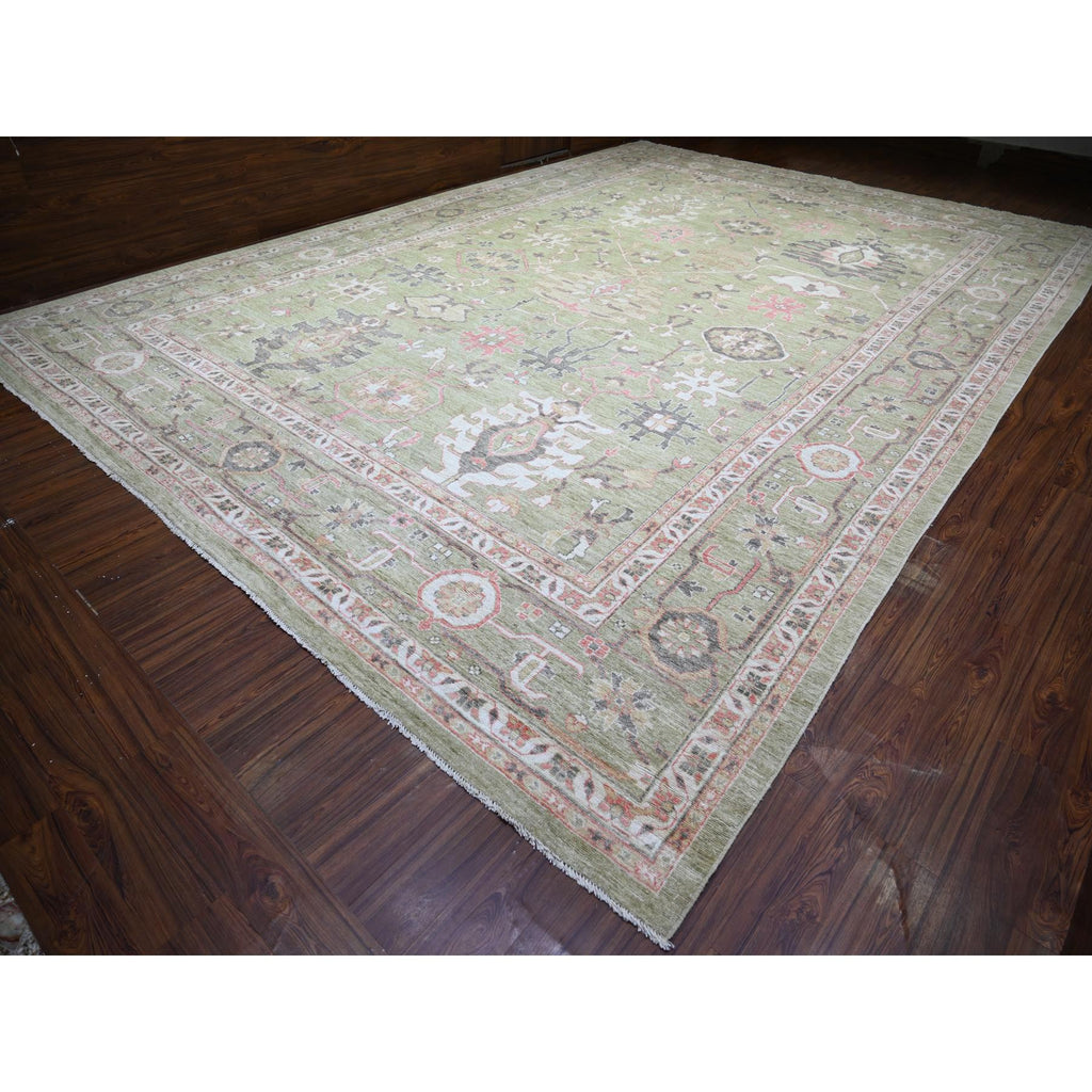 13'10"x19'8" Gin Green, Afghan Angora Oushak Natural Dyes, Extra Soft Wool Hand Knotted, Oversized Oriental Rug FWR440688