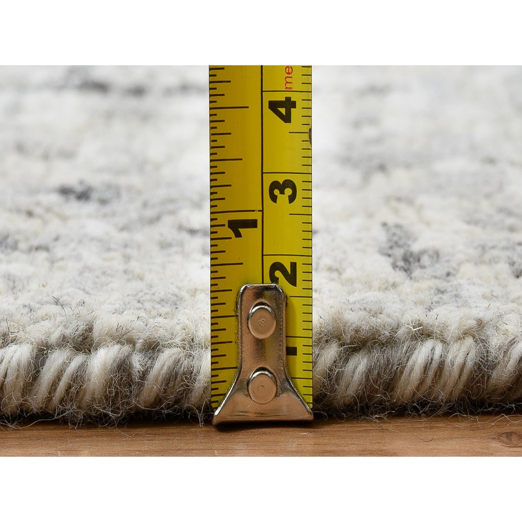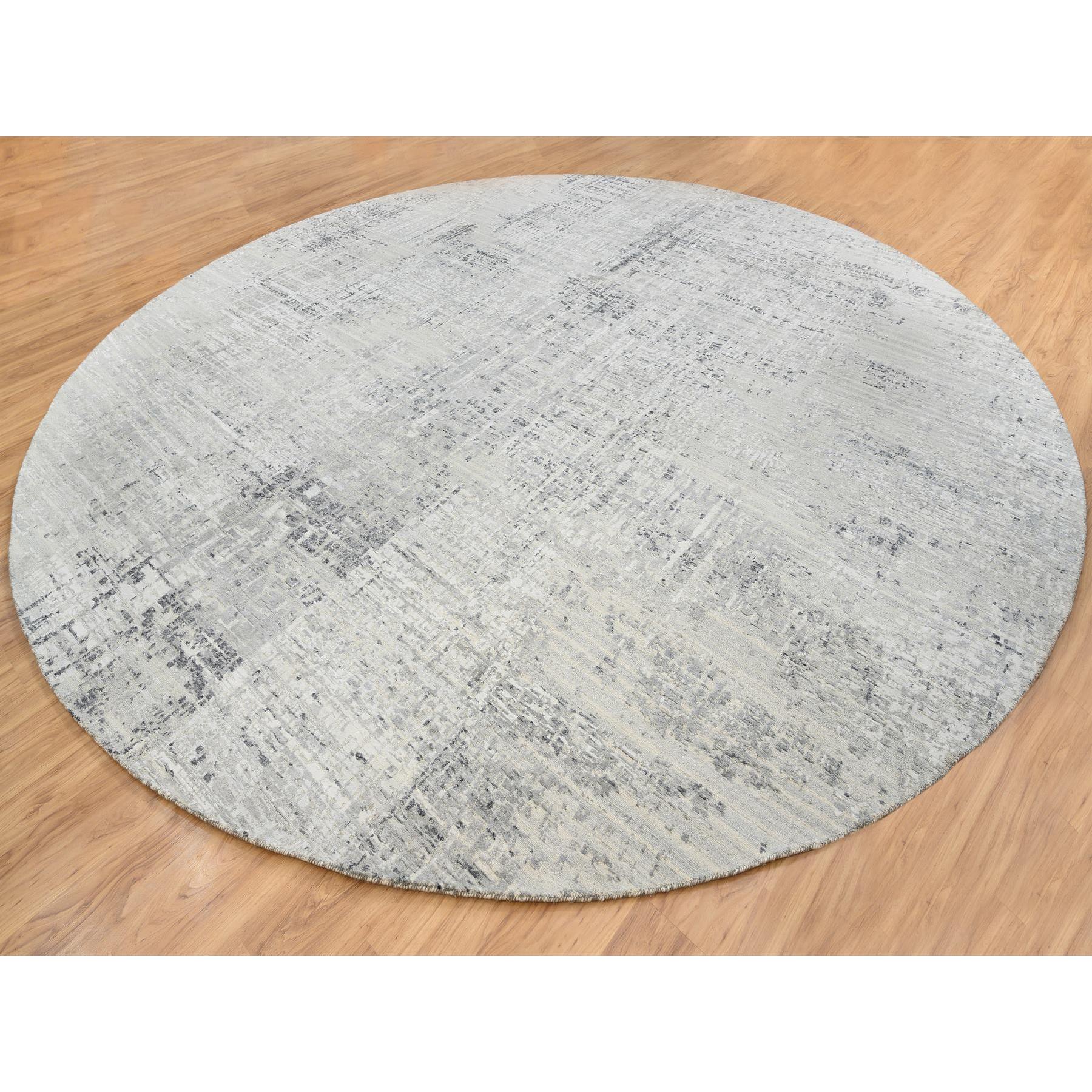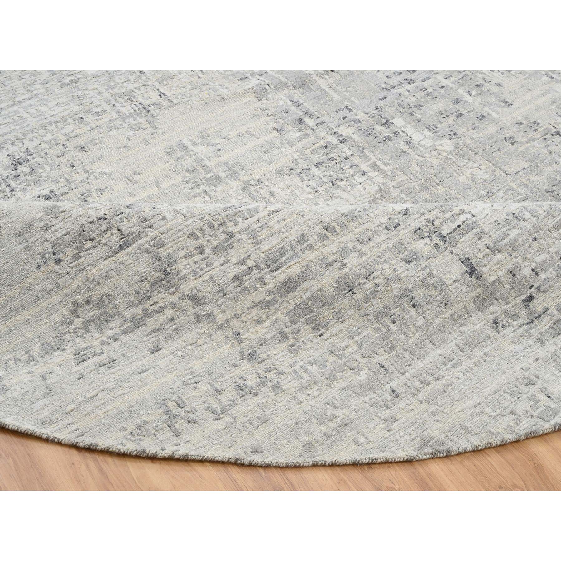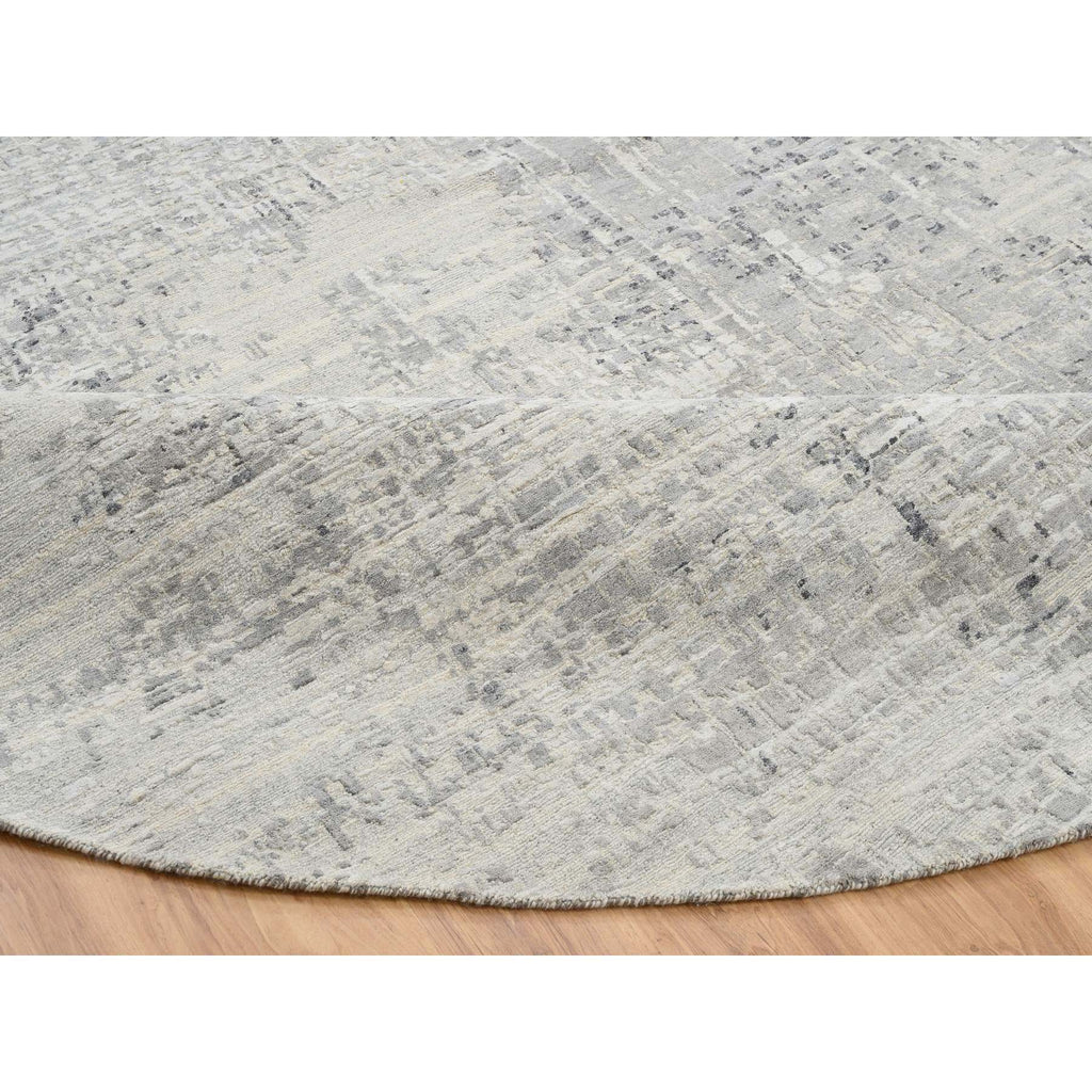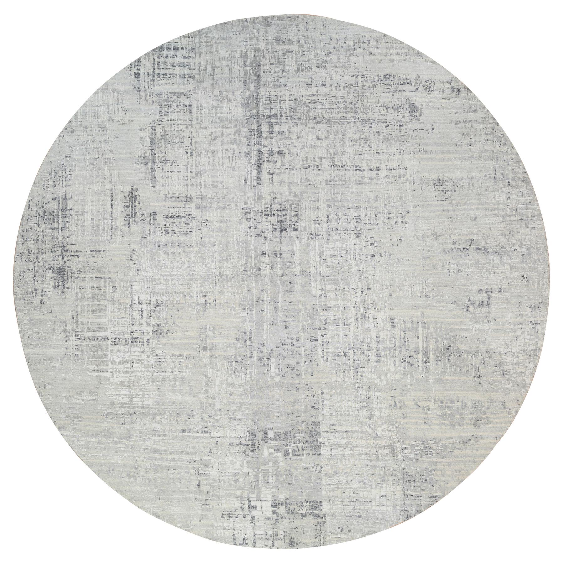 13'9"x13'9" Light Gray Hand Knotted Modern Hand Spun Undyed Natural Wool Round Oriental Rug FWR385392