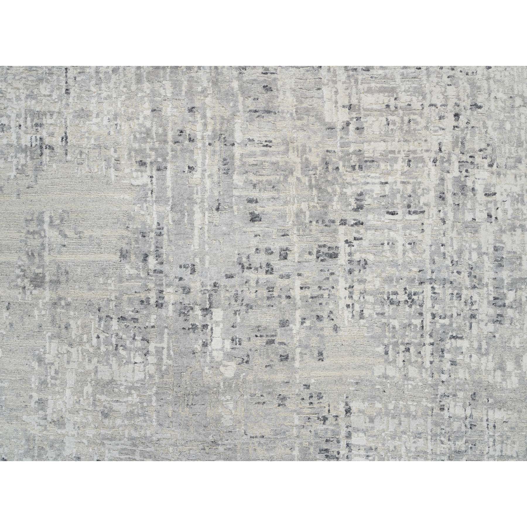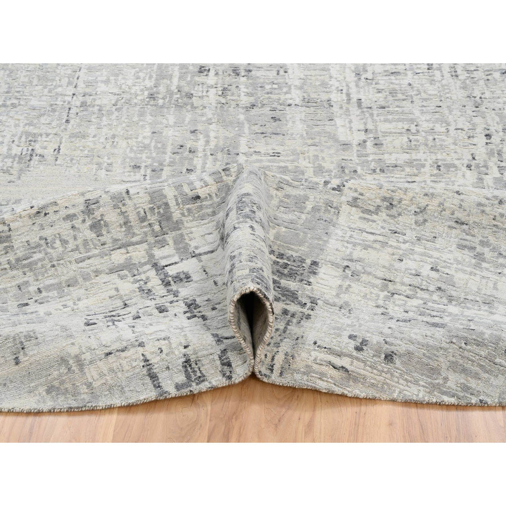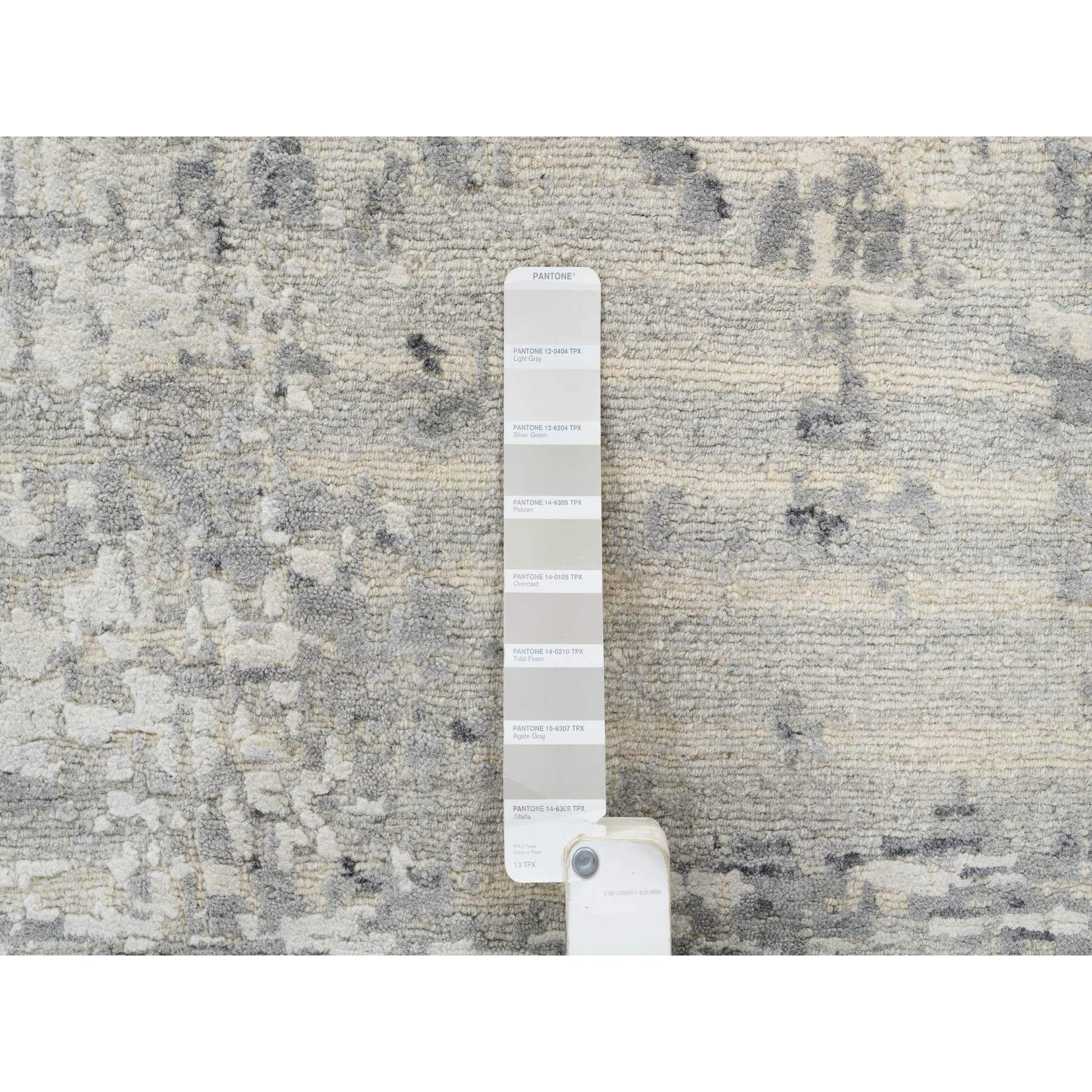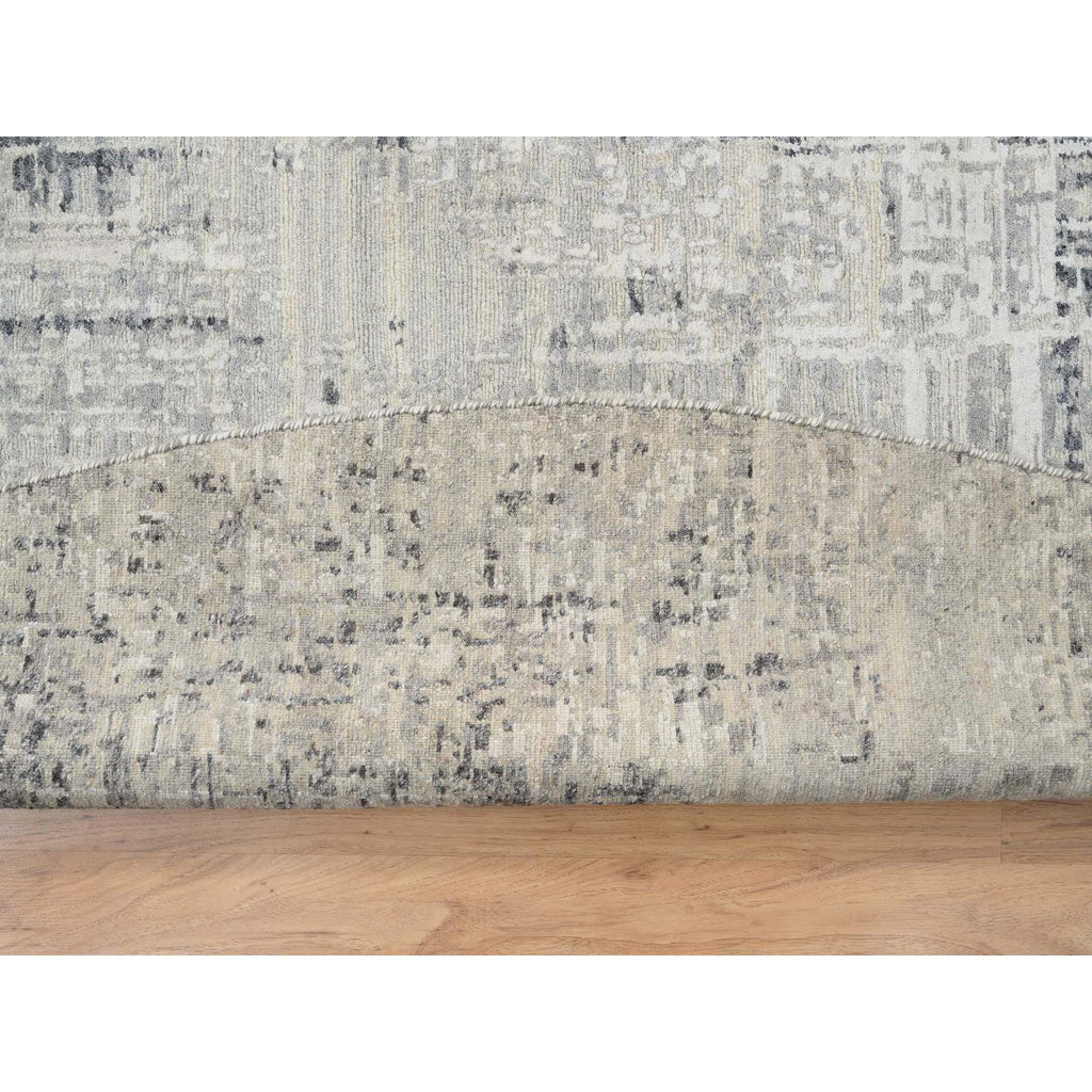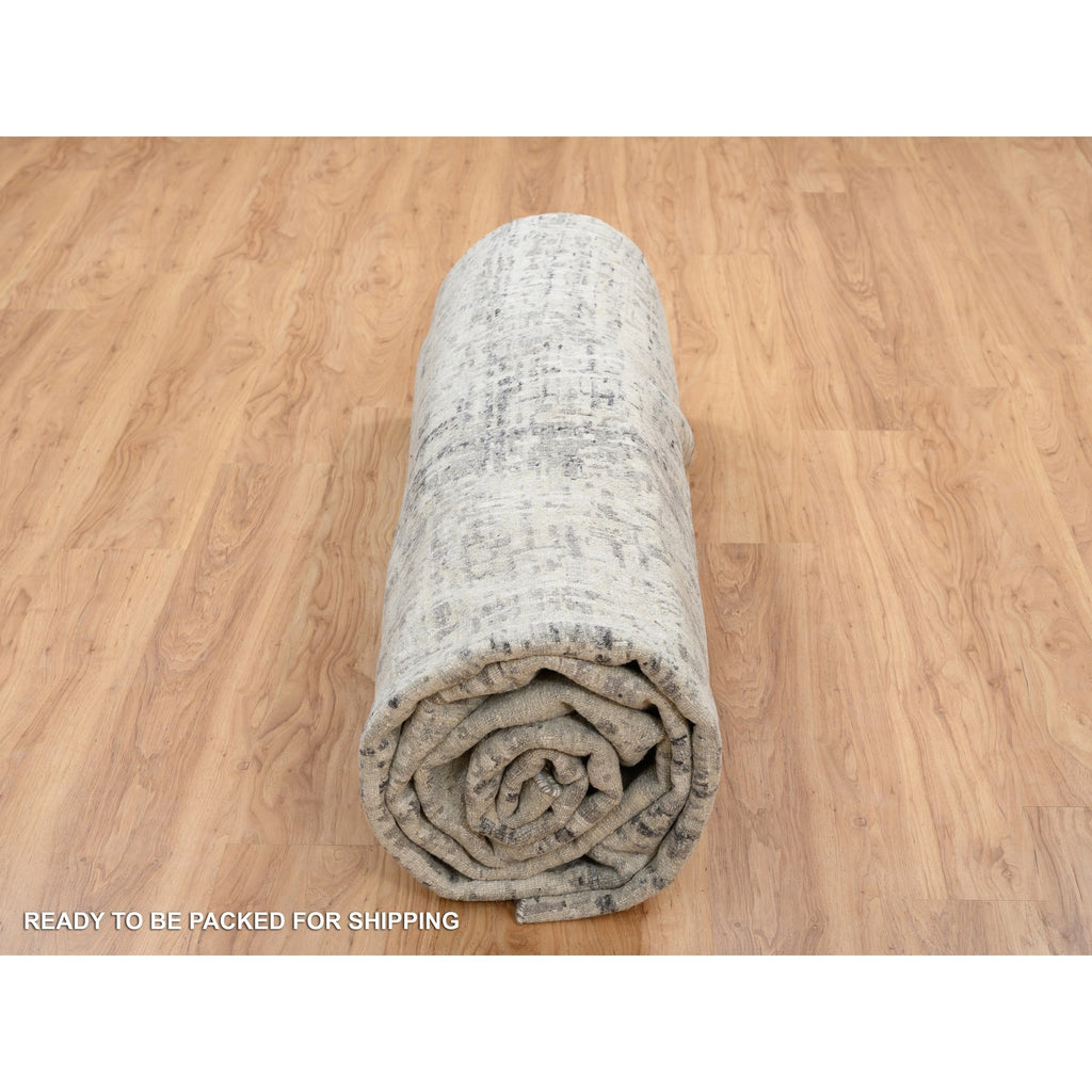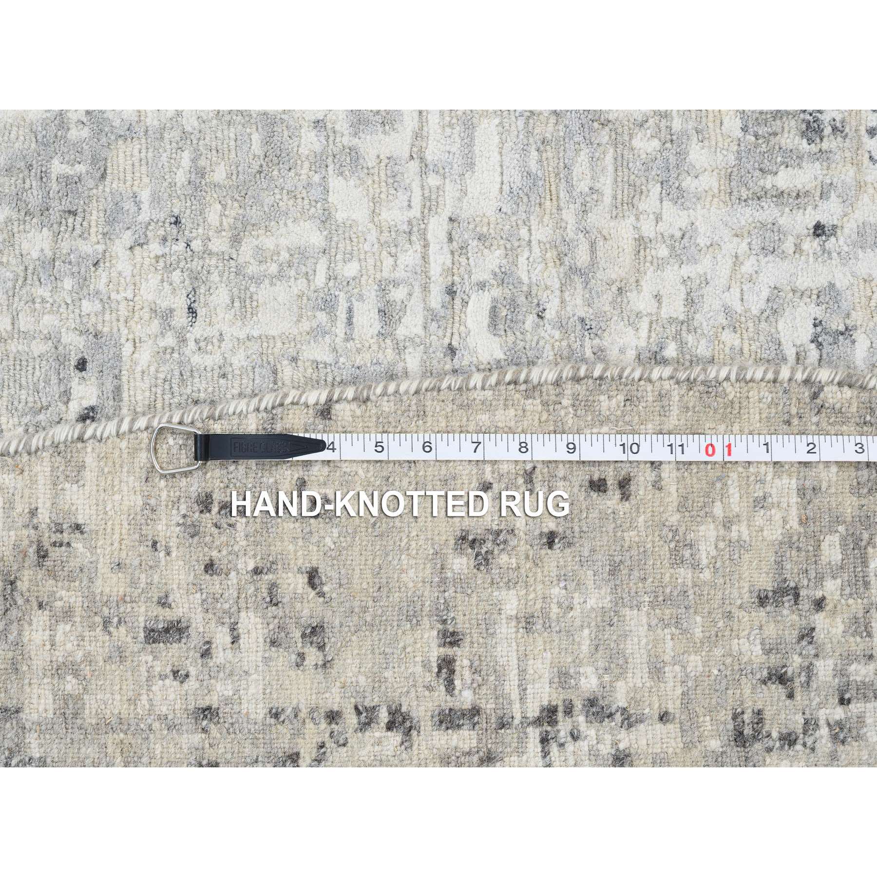 13'9"x13'9" Light Gray Hand Knotted Modern Hand Spun Undyed Natural Wool Round Oriental Rug FWR385392