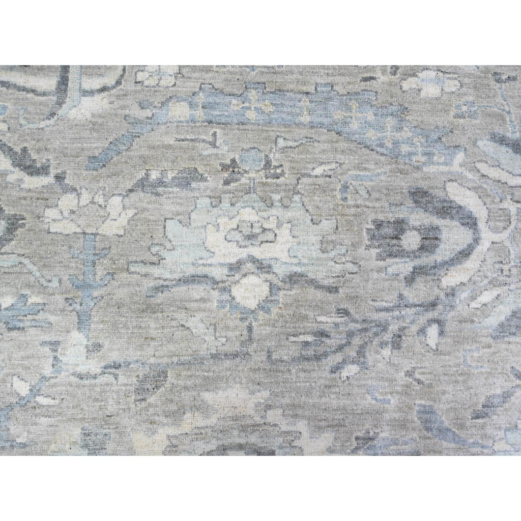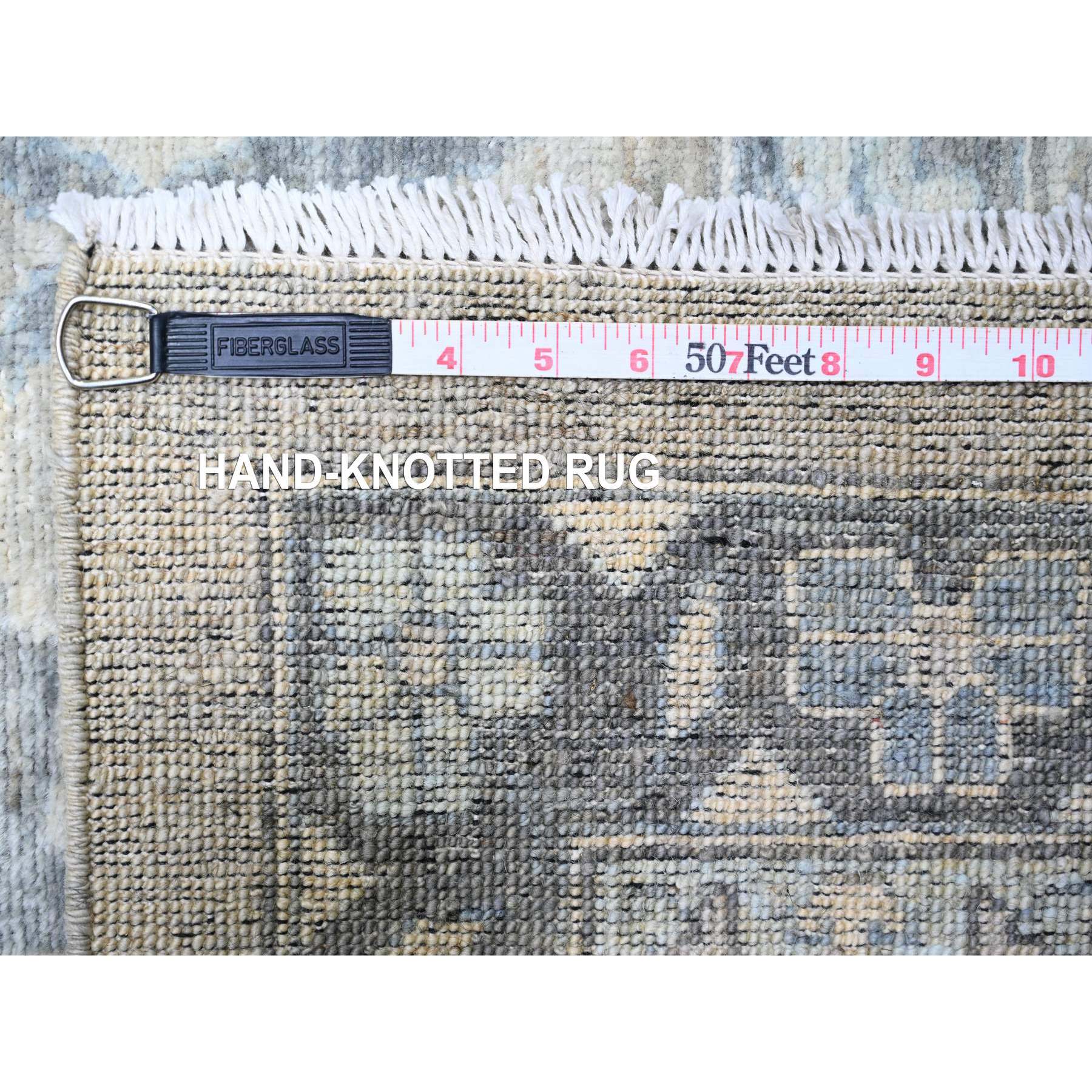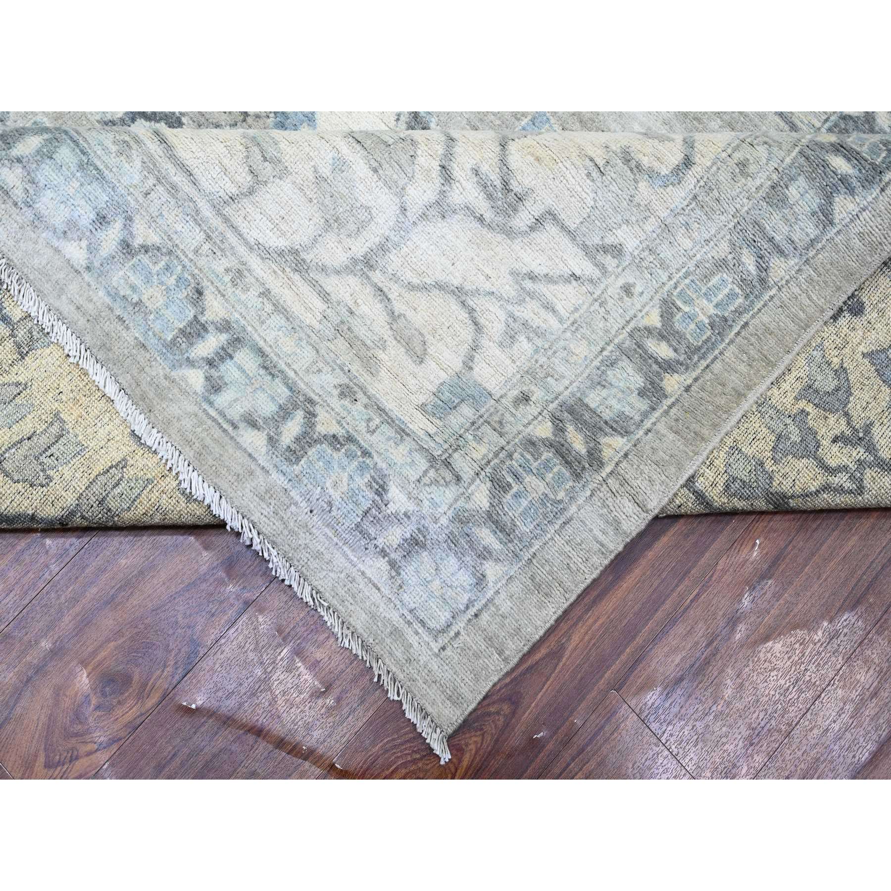 13'9"x17'1" Timberwolf Gray, Fine Peshawar Heriz, Sickle Leaf Design, Hand Knotted, Natural Dyes, Densely Woven, Pure Wool, Oversized Oriental Rug FWR528174