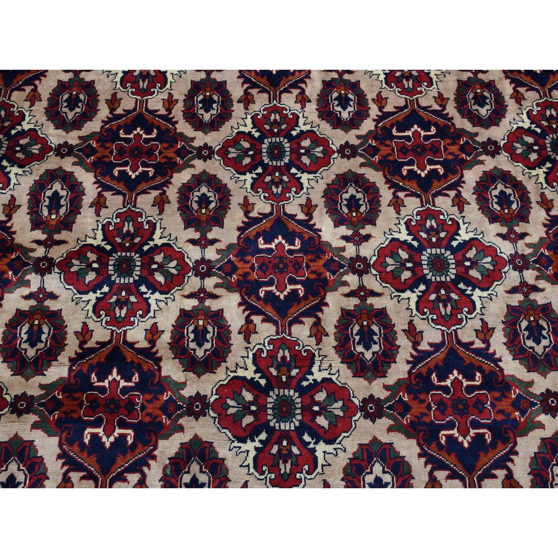 13'x19'4" Bone White, Oversized, Afghan Khamyab, Hand Knotted, Denser Weave With Shiny Wool, Oriental Rug FWR526020
