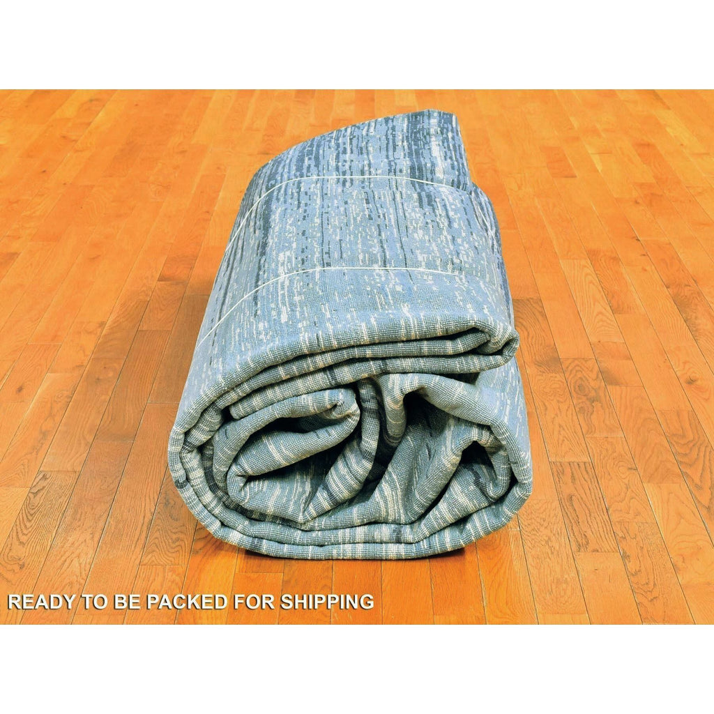 14'1"x18' Oversized Blue Oceanic Pure Wool Horizontal Ombre Design Hand Knotted Oriental Rug FWR401082