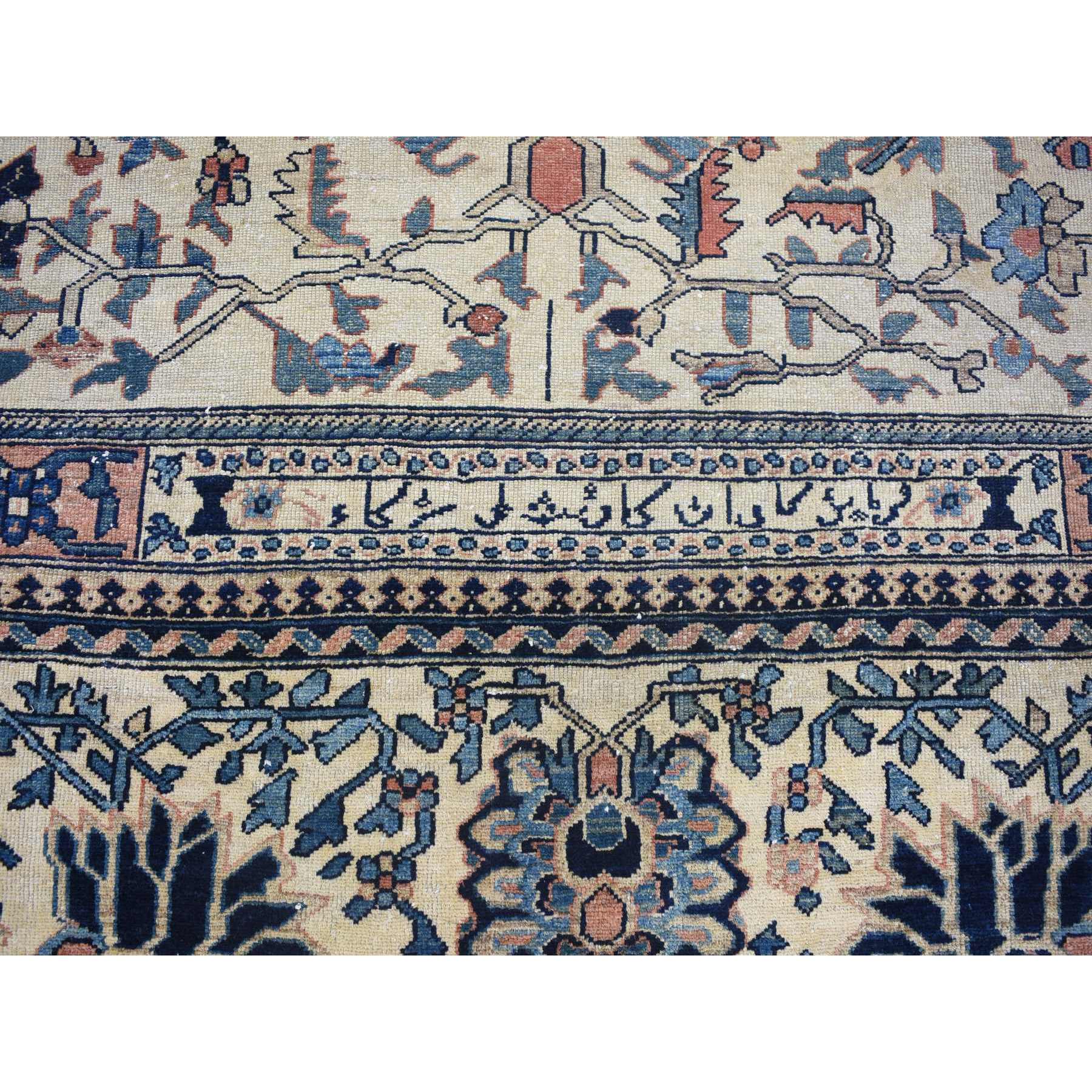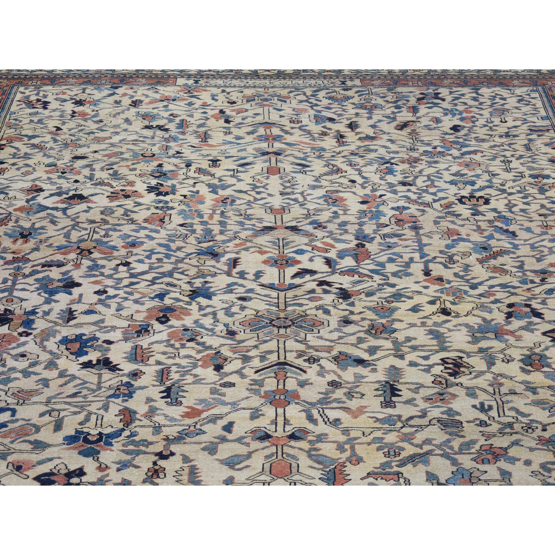 14'3"x15'7" Ivory, Antique Persian Bakhtiar With Rare All Over Design, Excellent Condition Hand Knotted Pure Wool, Signed By Kashan Carpets, Large Squarish Oversized Oriental Rug FWR480330
