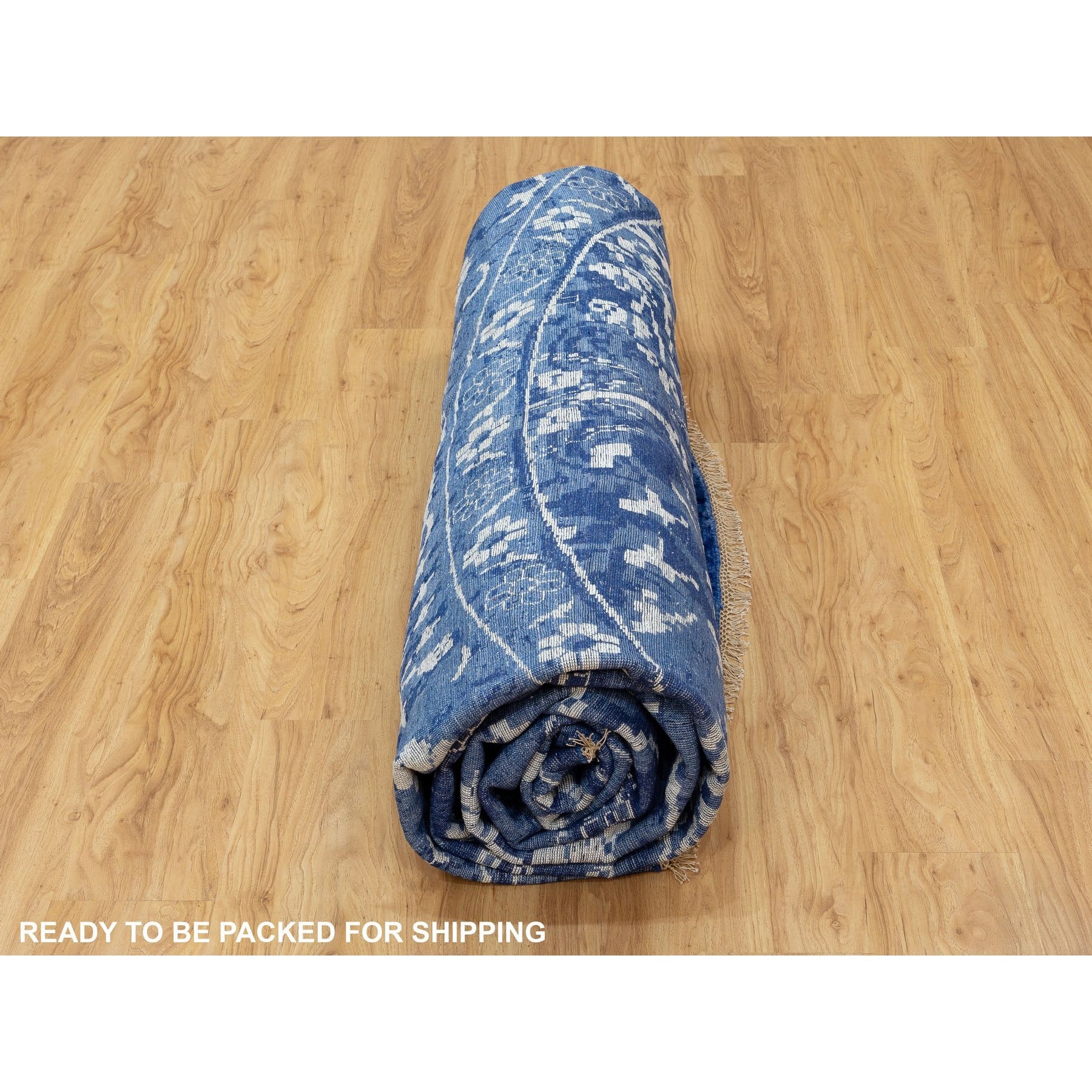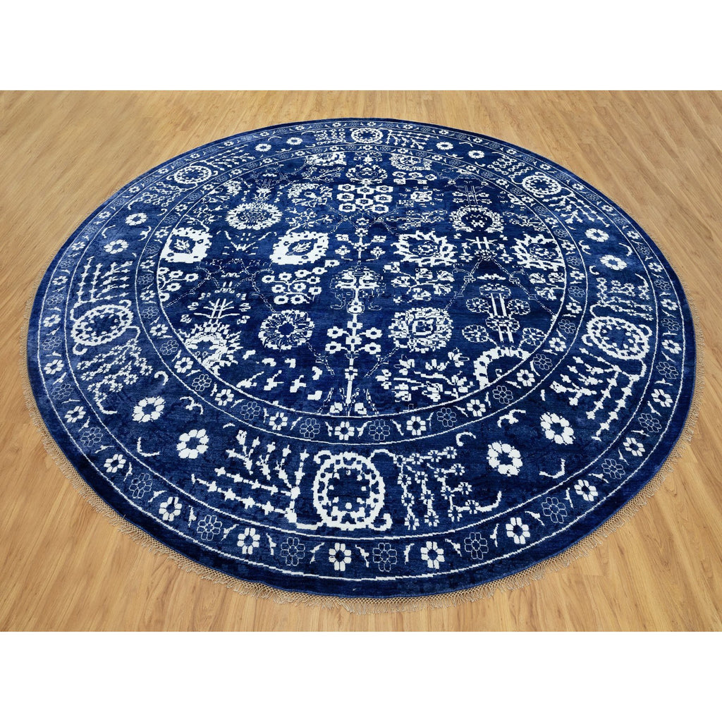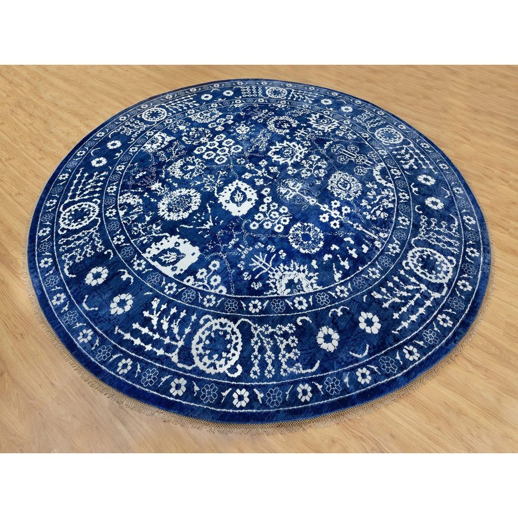 14'x14' Blue Tone On Tone Tabriz Wool And Silk Hand Knotted Round Oriental Rug FWR351372