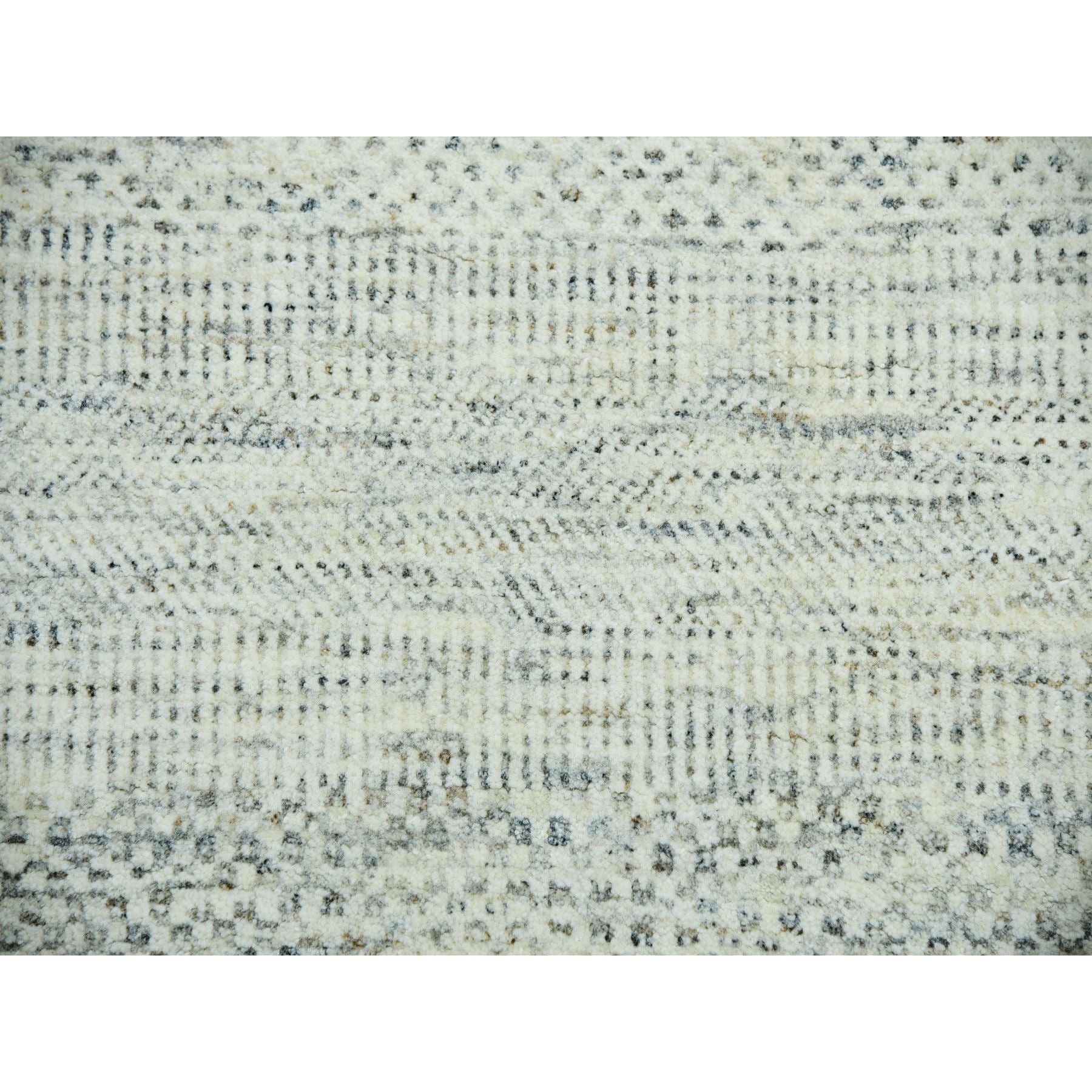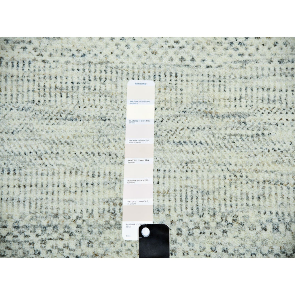 14'x14' Eggnog White, Borderless Modern Grass Design, Hand Knotted Organic Sustainable Textile, Pure Wool, Tone On Tone, Square Oriental Rug FWR479844