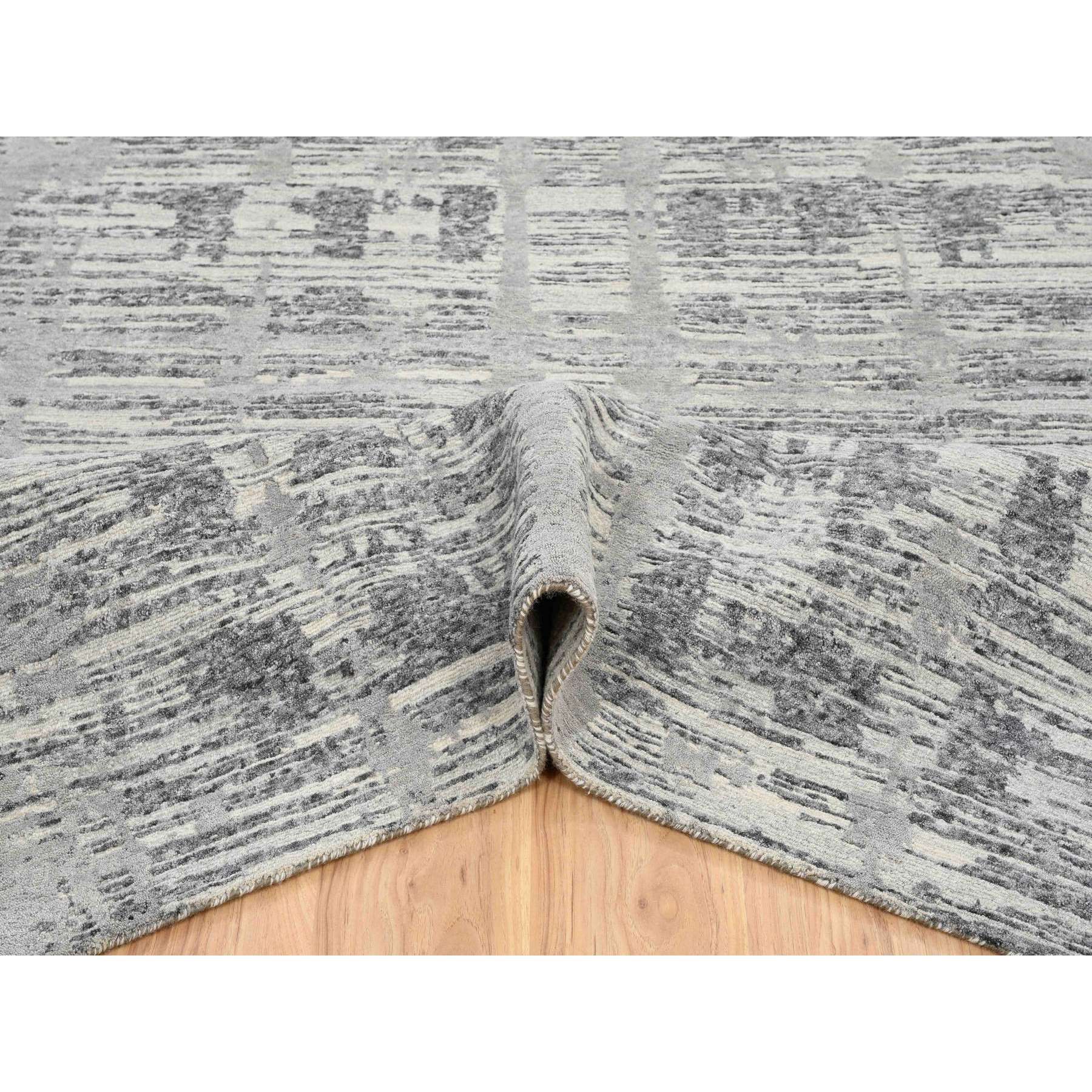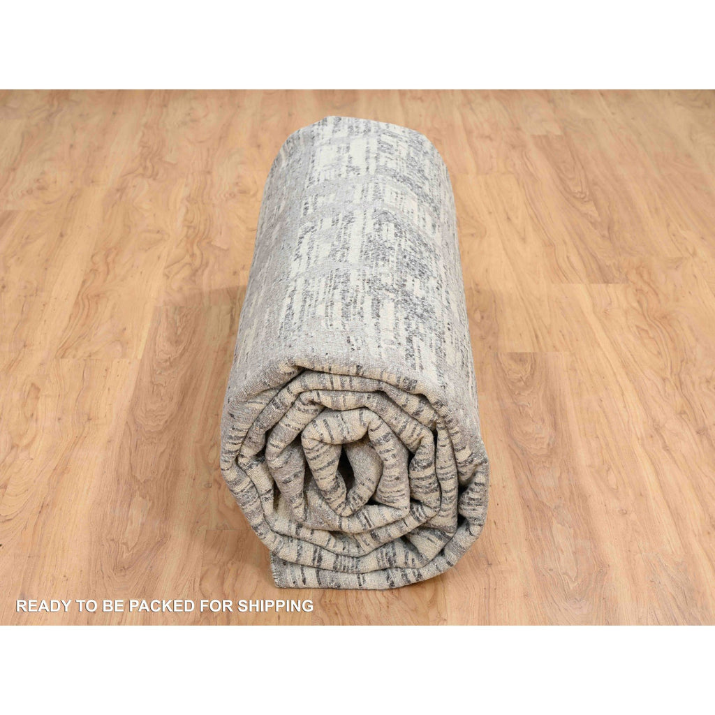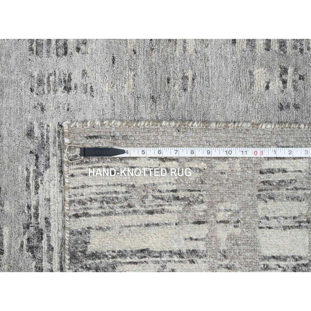 14'x14' Light Gray, Modern Criss Cross Erased Design, Hand Spun Undyed Natural Wool, Hand Knotted, Square Oriental Rug FWR388260