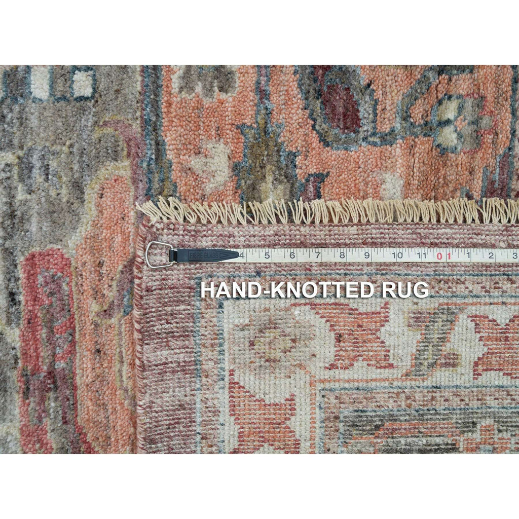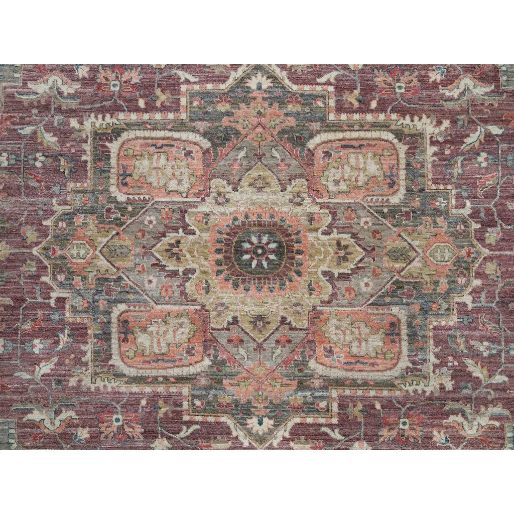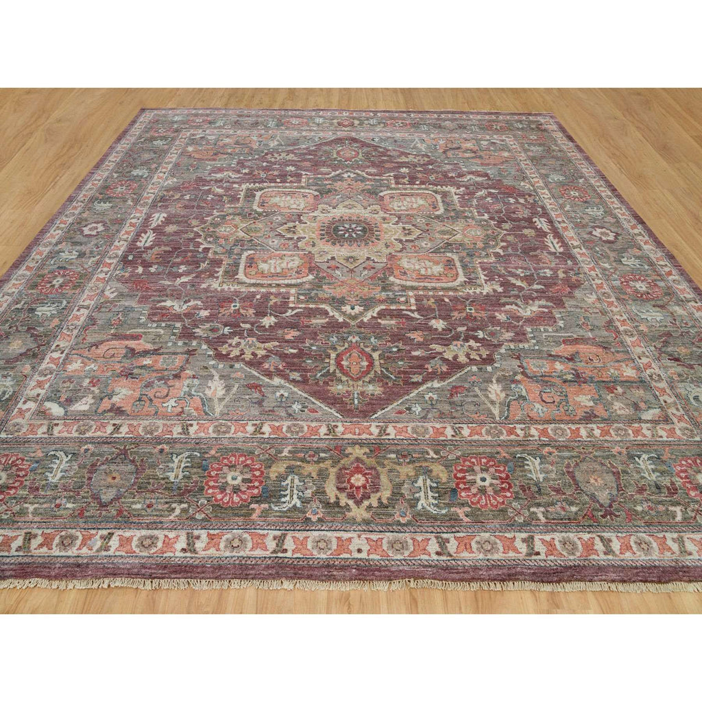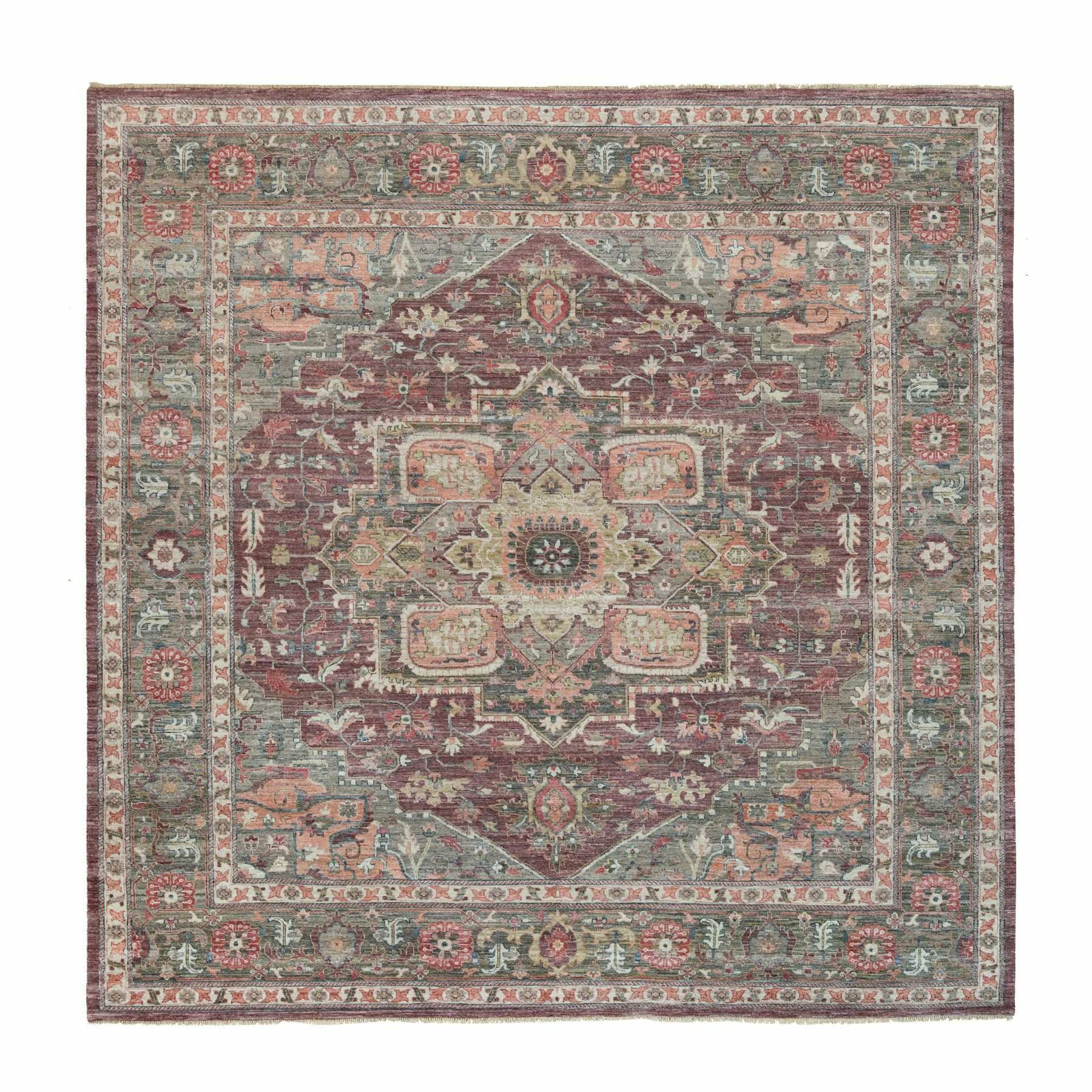 14'x14' Mahogany Red, Vegetable Dyes, Natural Wool, Heriz Revival, Thick And Plush Soft Pile, Hand Knotted,square Oriental Rug FWR540816
