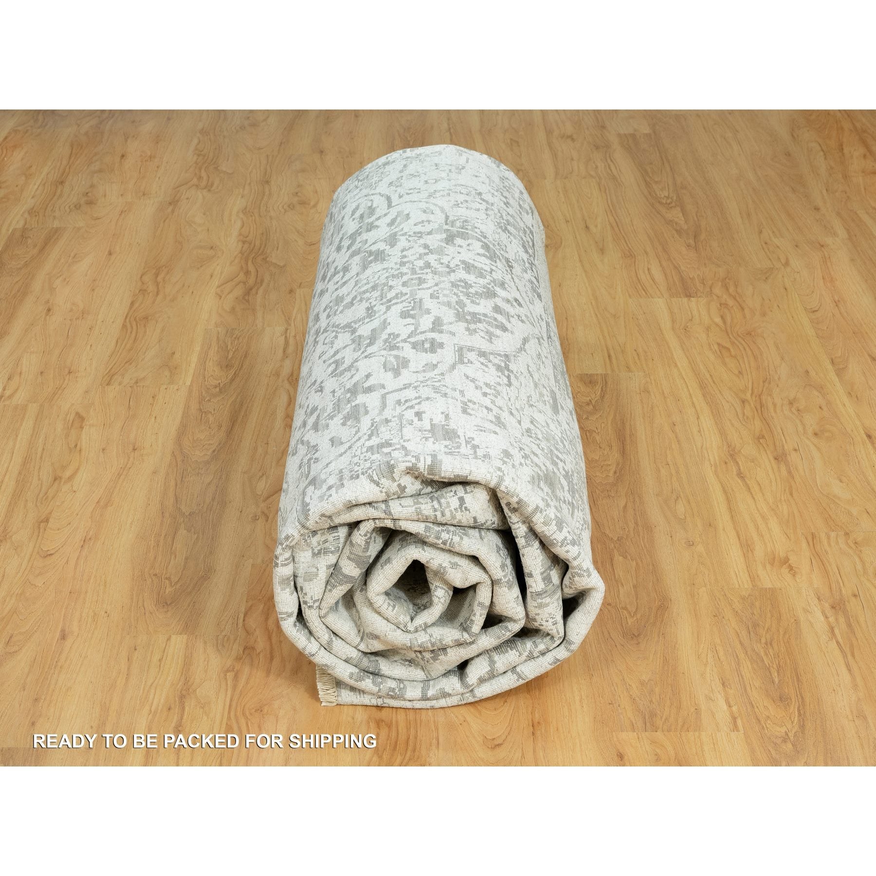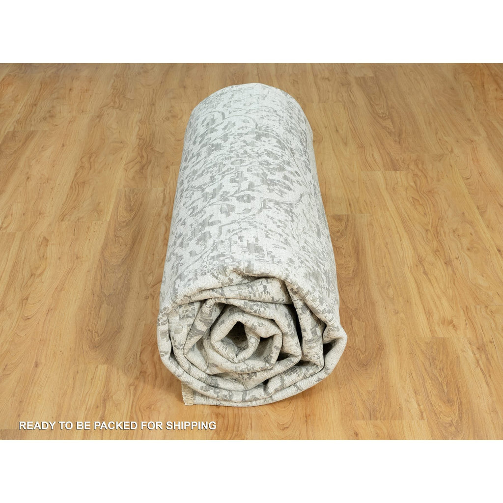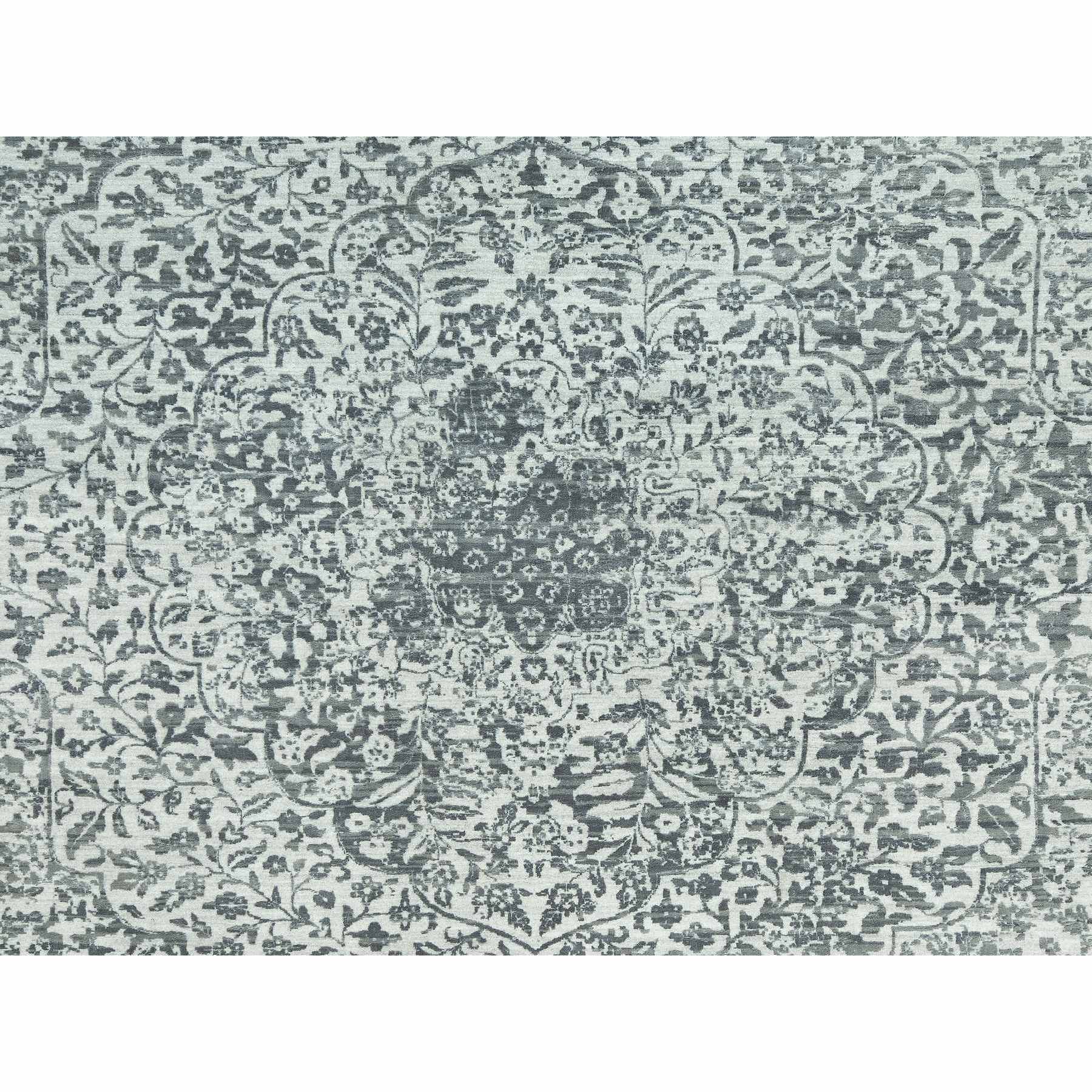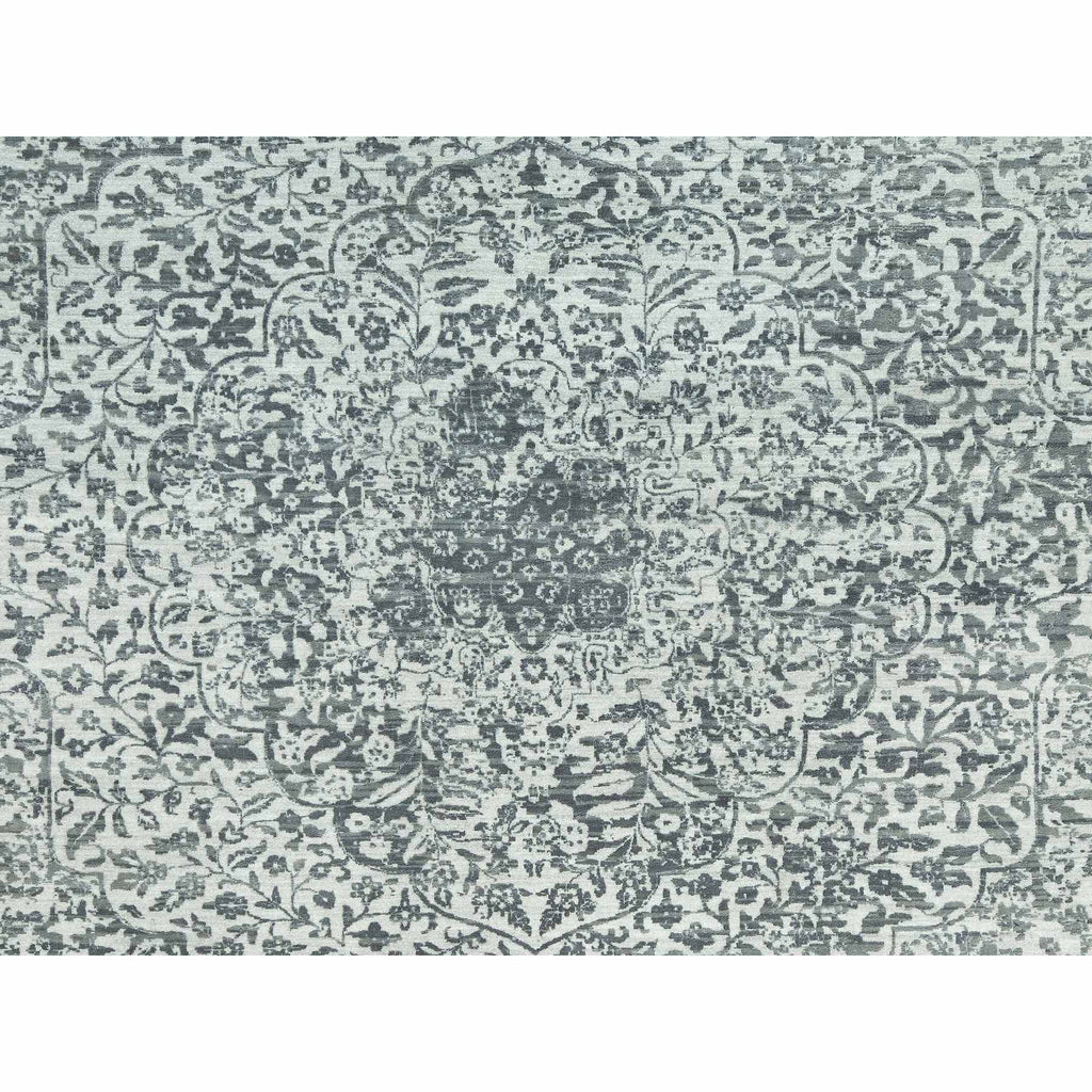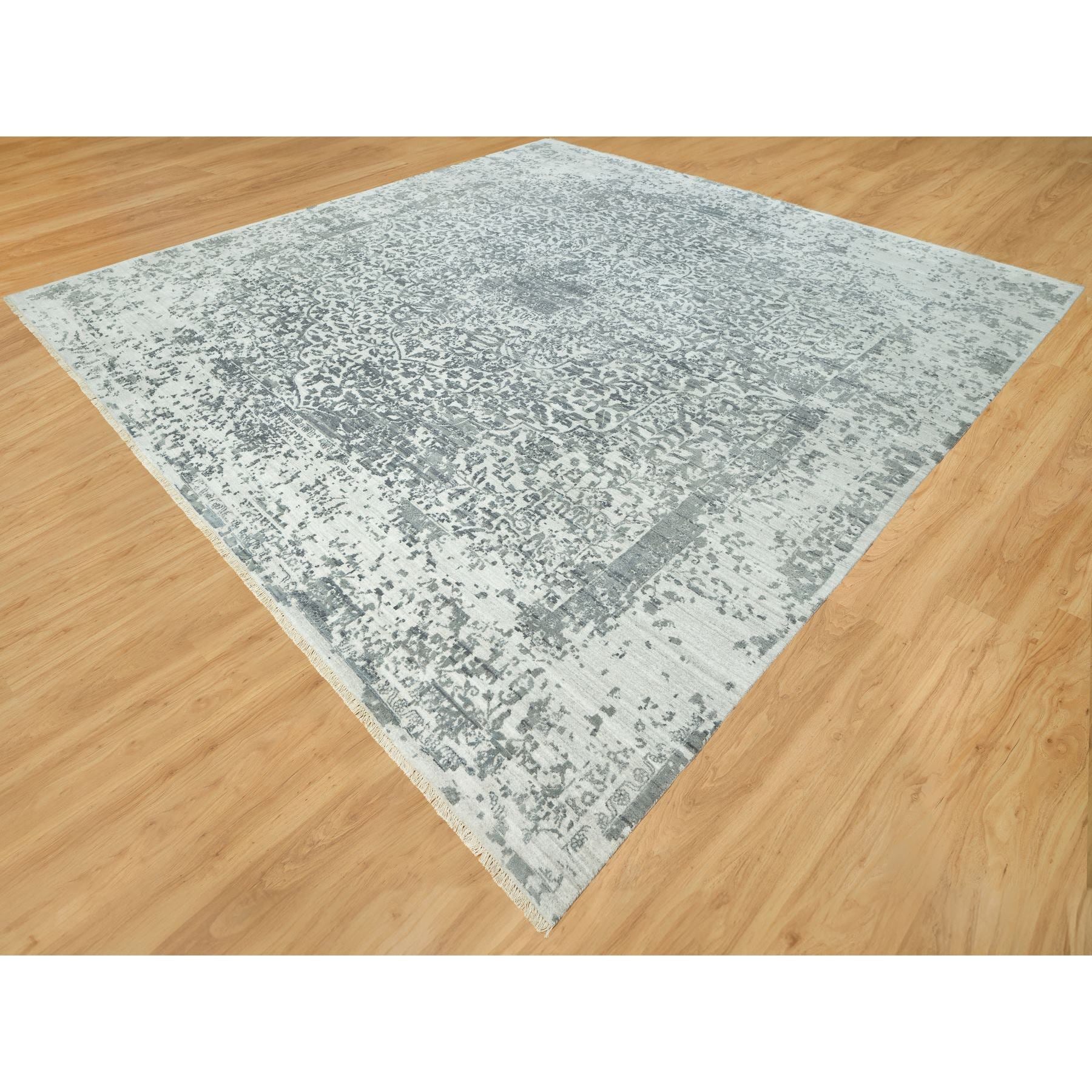 14'x14' Sea Salt Gray With Touches Of Foggy Day Gray, Hand Knotted , Broken And Erased Wool And Silk Persian Design, Oriental Square Rug FWR542862