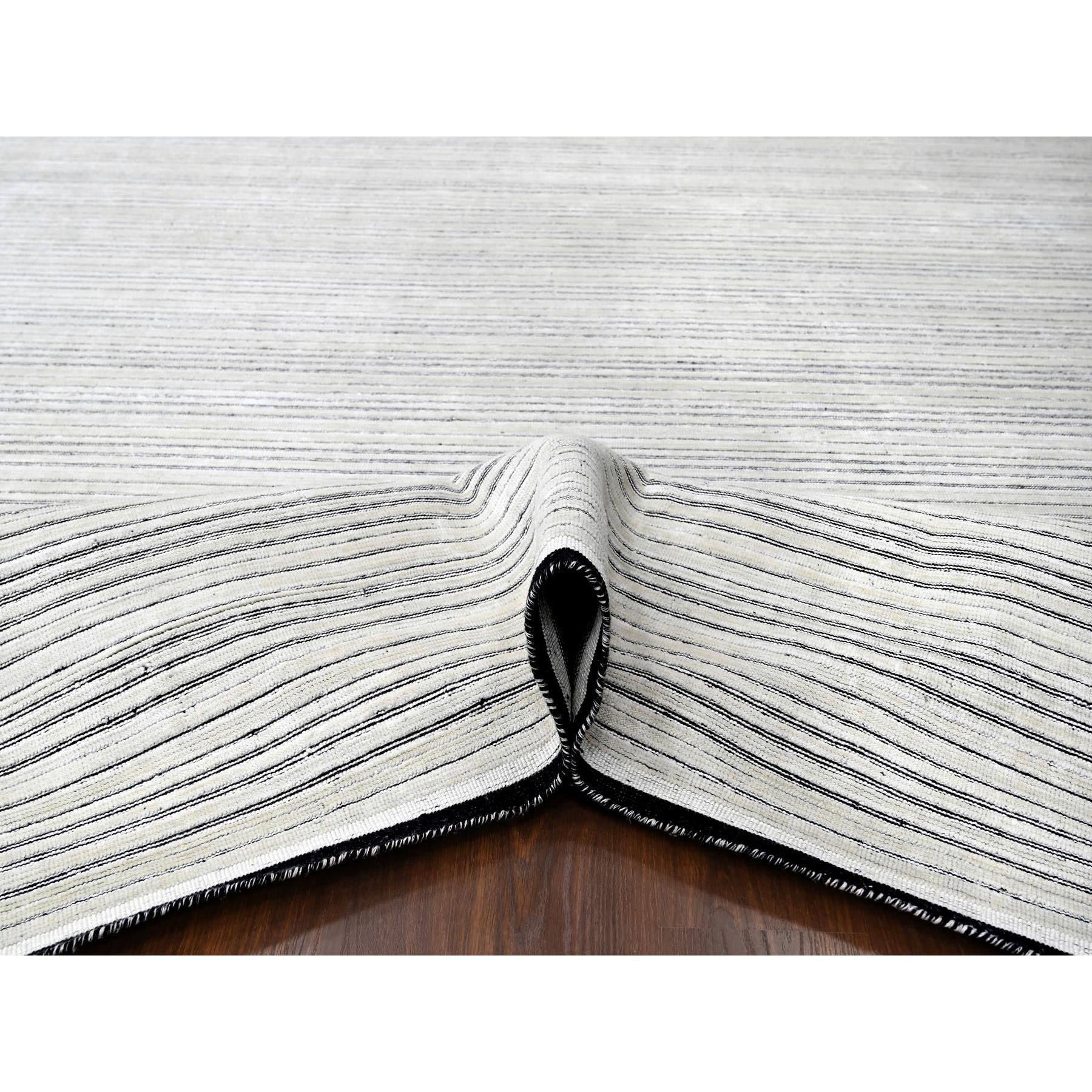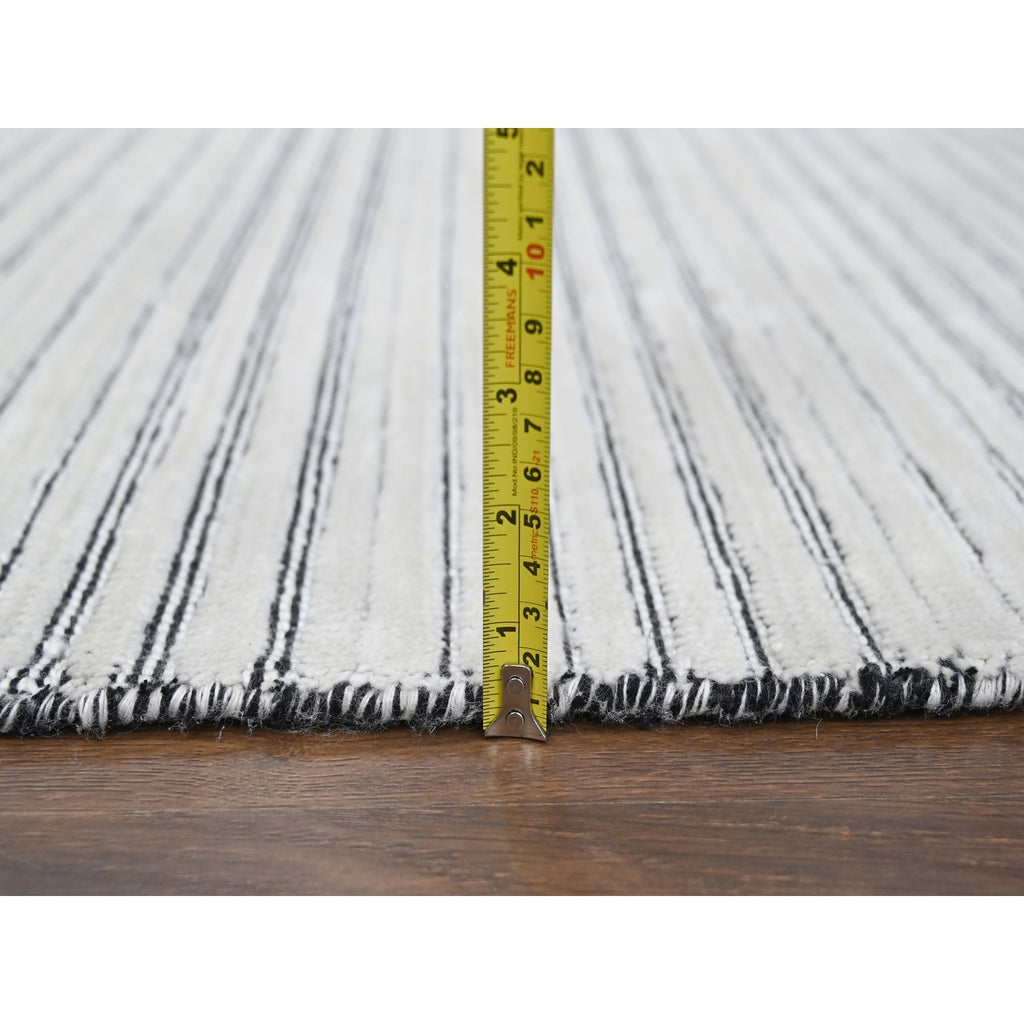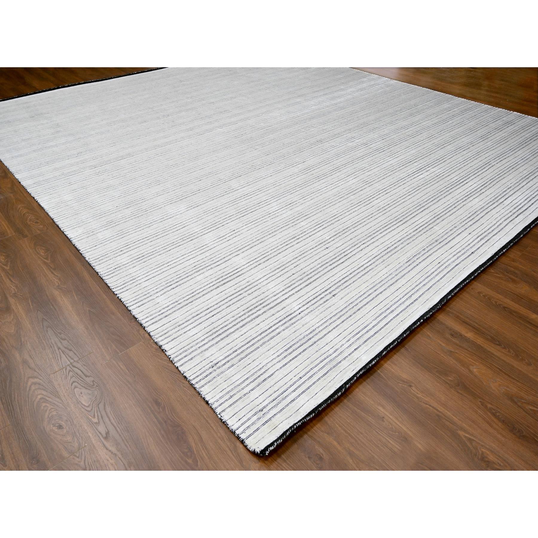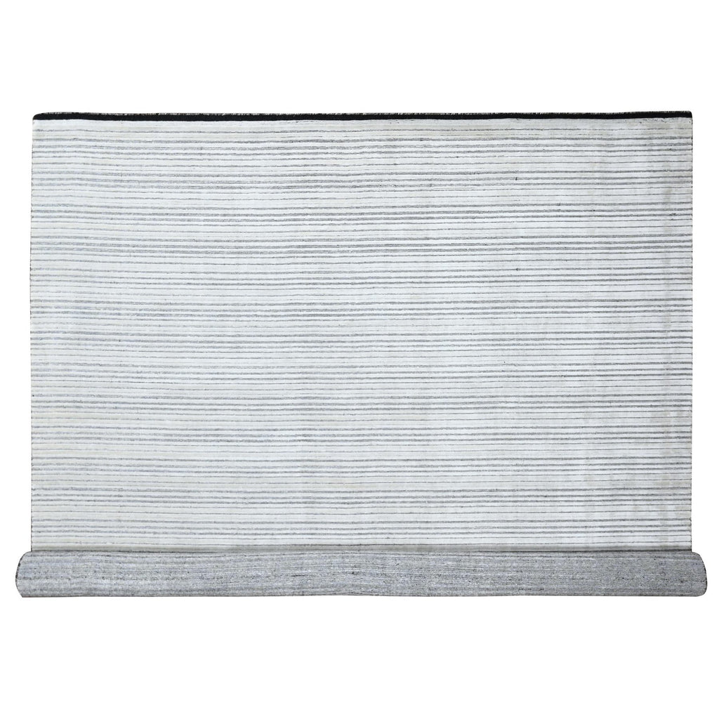 14'x16' Anti-flash White And Black, Wool And Plant Based Silk, Modern Textured And Variegated Line Design, Hand Loomed, Oversized Oriental Rug FWR506736