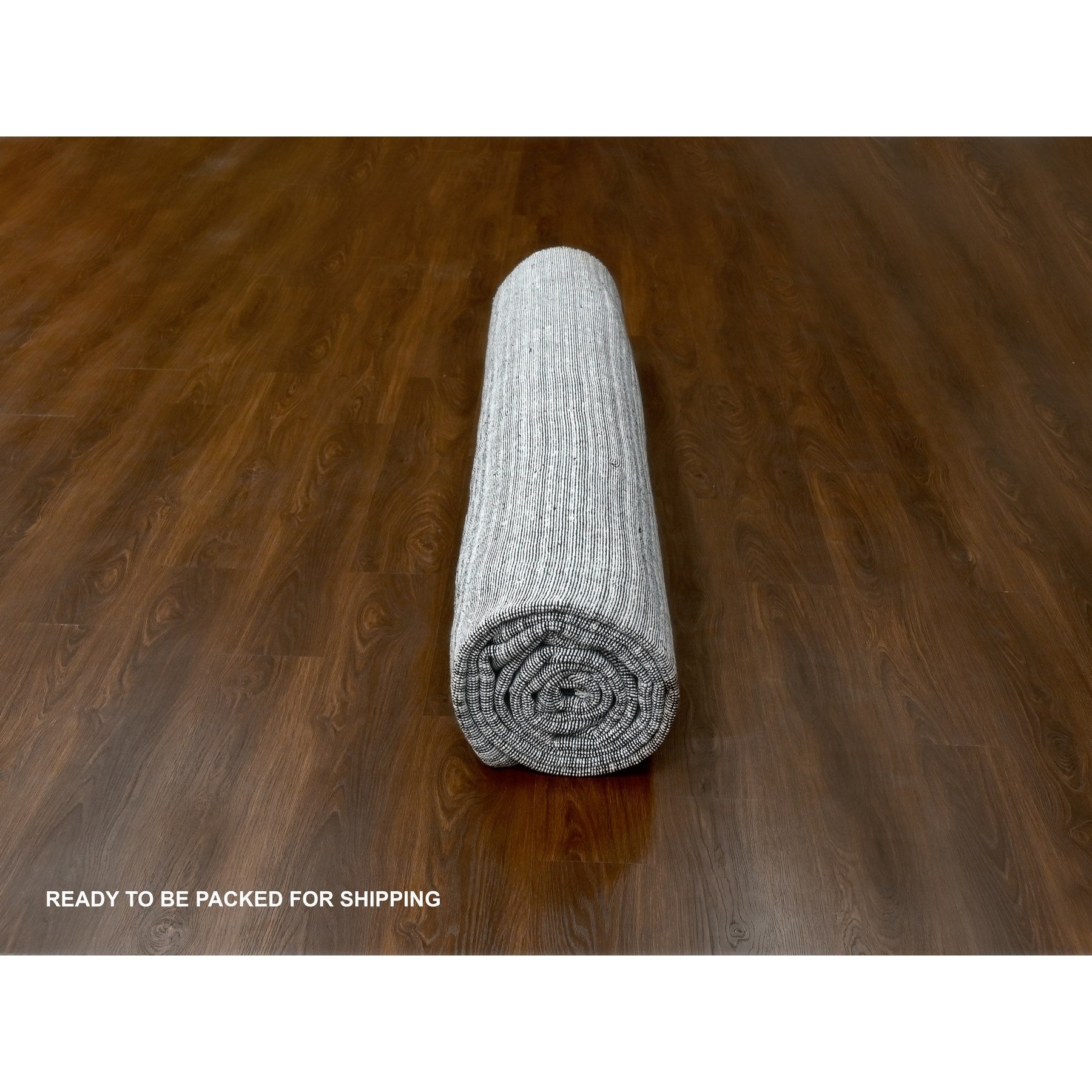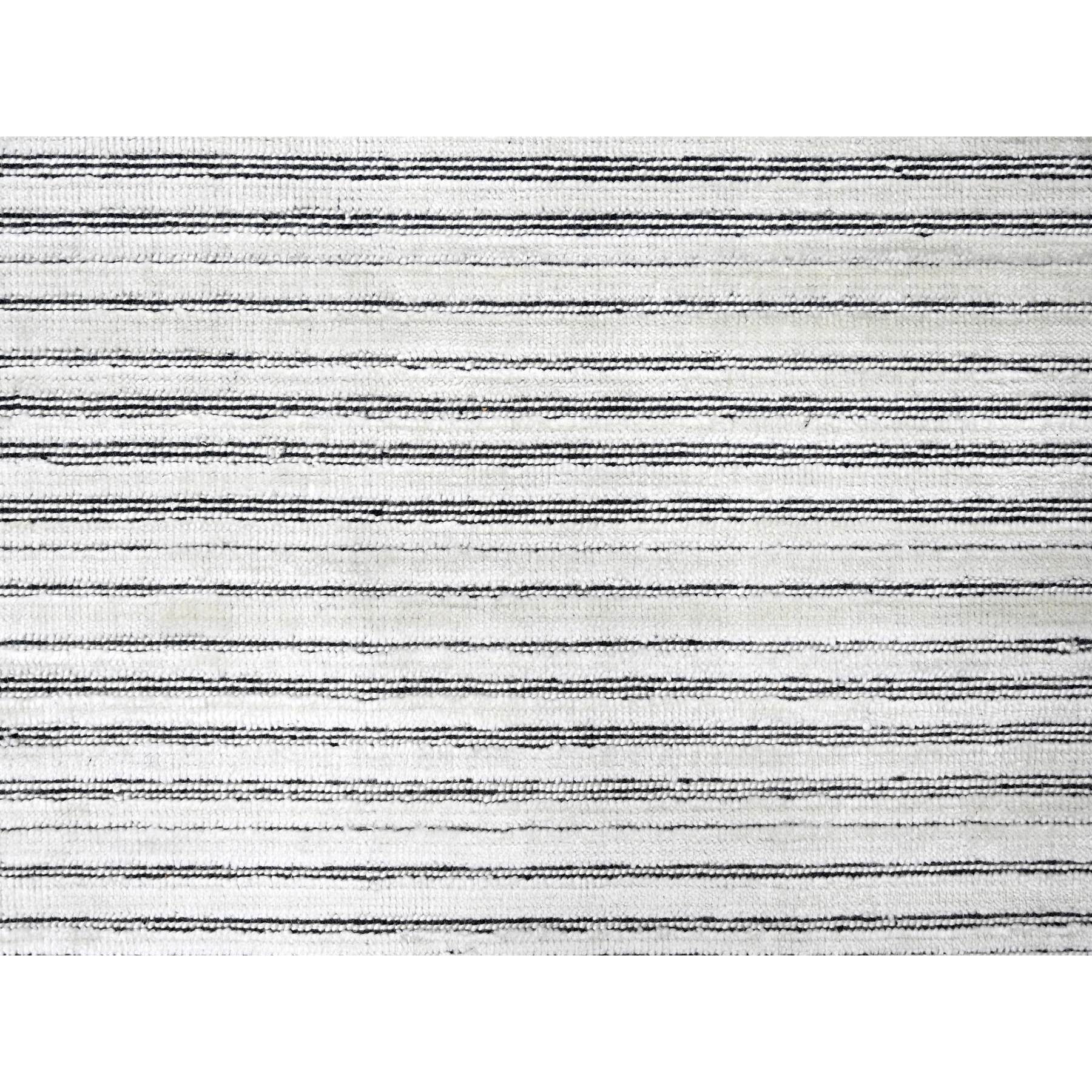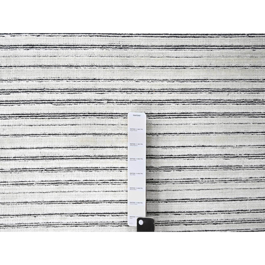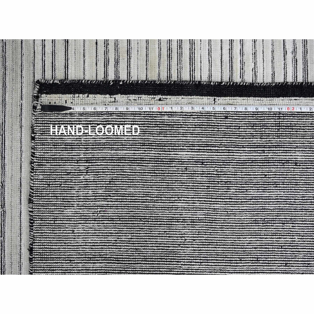 14'x16' Anti-flash White And Black, Wool And Plant Based Silk, Modern Textured And Variegated Line Design, Hand Loomed, Oversized Oriental Rug FWR506736