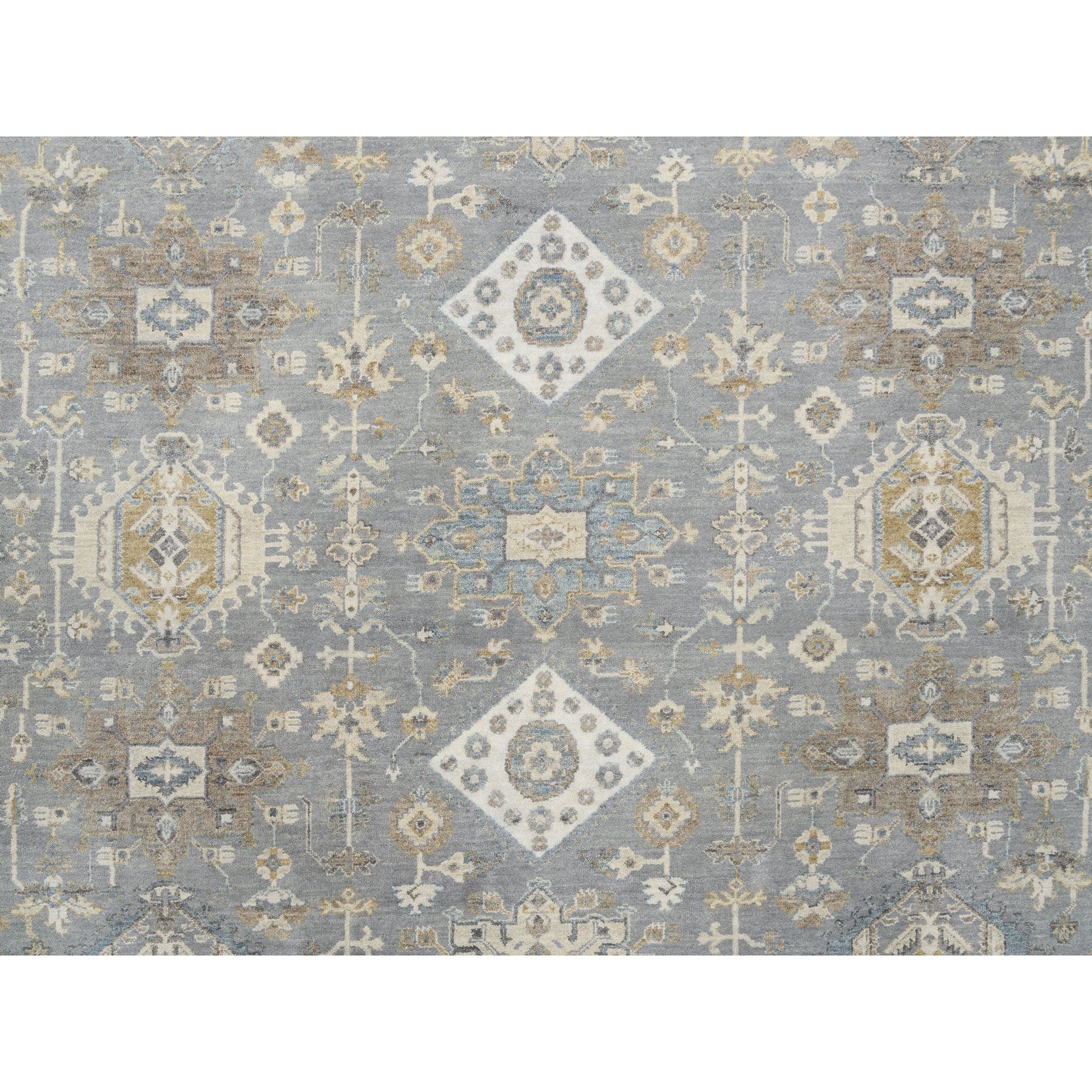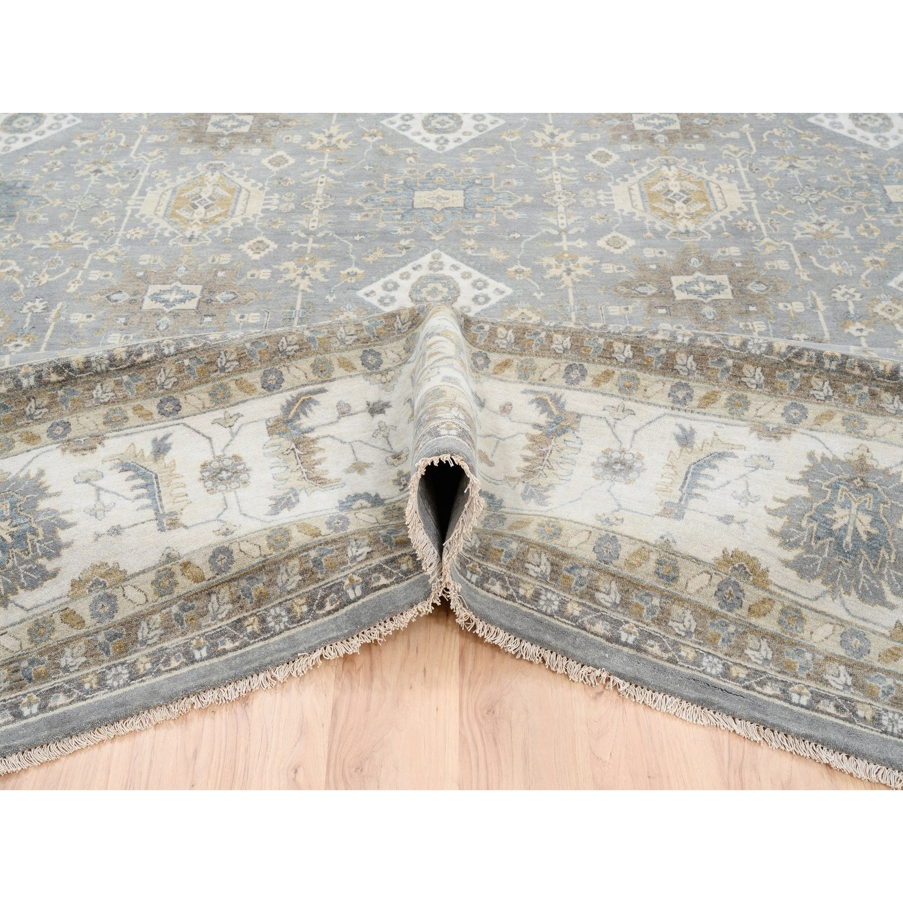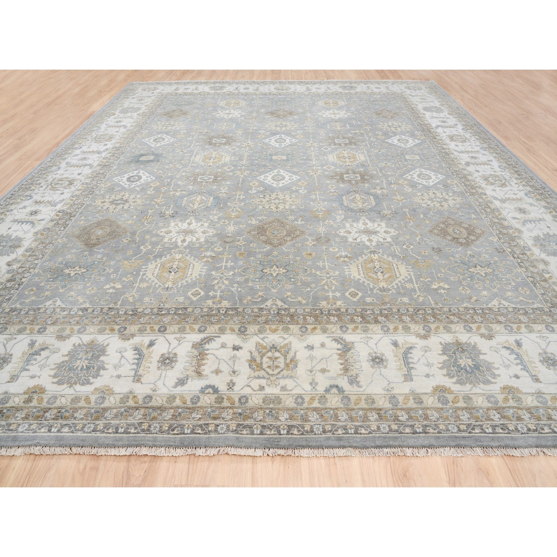 14'x16' Organic Wool Karajeh And Geometric Design Frost Gray Hand Knotted Oriental Oversized Squarish Rug FWR378408