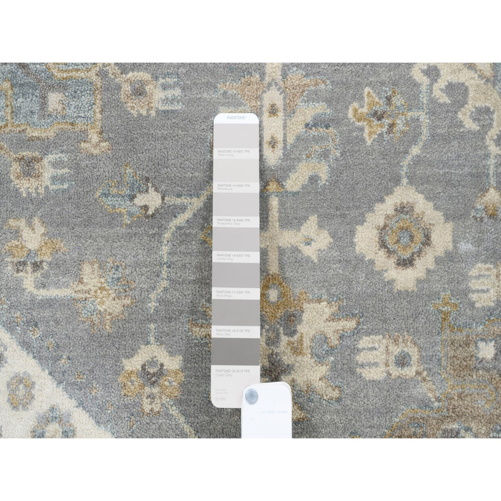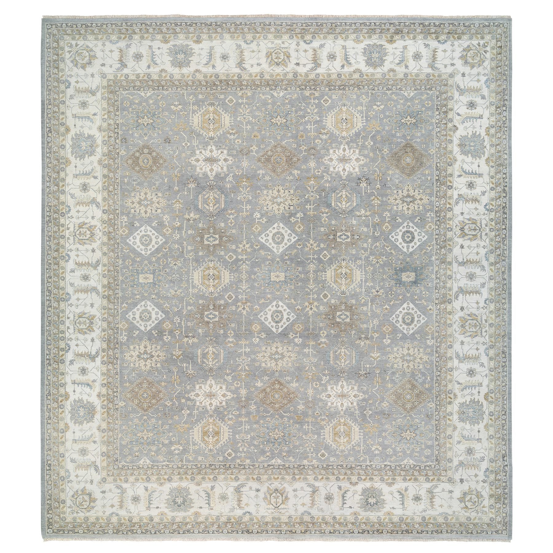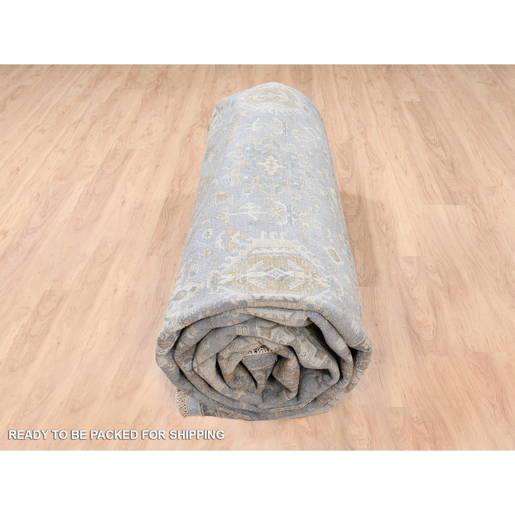 14'x16' Organic Wool Karajeh And Geometric Design Frost Gray Hand Knotted Oriental Oversized Squarish Rug FWR378408